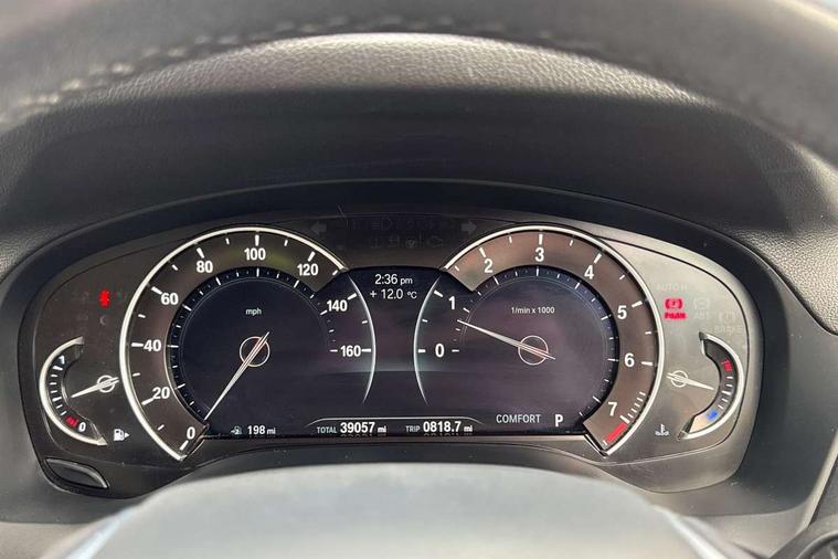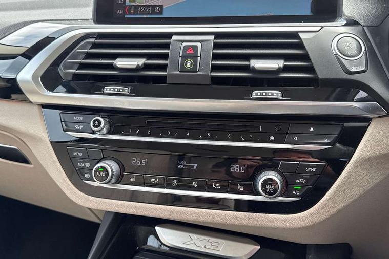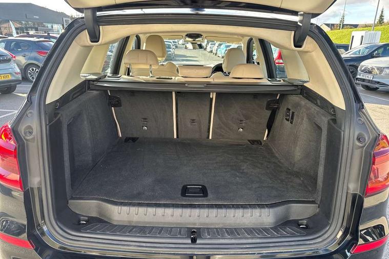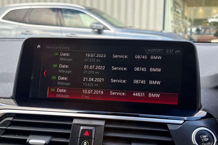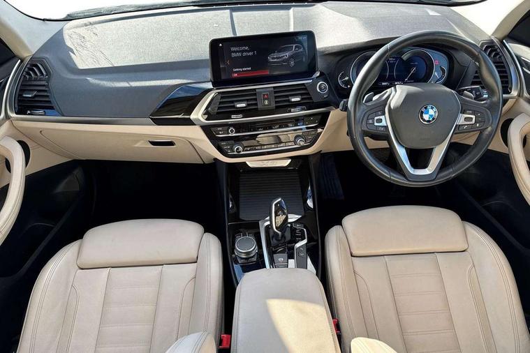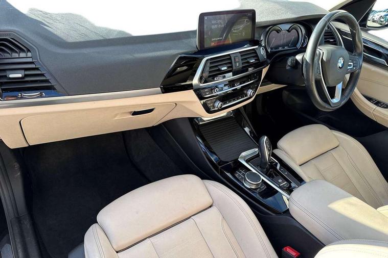 Active Guard incl speed limiting and lane departure functions with auto steering, and front collision warning with brake intervention, Attentiveness assist, Automatic tailgate operation, BMW Live Cockpit Plus with 8.8" central information display + nav function, BMW Online services, BMW Teleservices, Brake pad wear indicator in front and rear, Check Control warning system for monitoring of lights and door/luggage compartment open warning, Control display - 6.5" colour display screen, Electric Power Steering (EPS) with Servotronic, Front/rear Parking distance control, iDrive Controller with 8 favourite buttons, Instrument cluster with speedometer with mph readout, tachometer, fuel gauge and oil temperature gauge, Lights on warning by audio warning signal when ignition is switched off, Oil sensor for level and grade, warning by check control system, On board computer - average speed+fuel consumption, service interval, clock/date, odometer/trip meter, outside temperature display and ice warning, Optimum shift indicator, Personal Profile - automatic lock when driving away selectable, Stop/start system, Automatic transmission with gearshift paddles, Drive performance control with ECO PRO comfort + sport mode, Incorrect fuelling protection, Multi-link rear suspension, Auxiliary socket for external MP3 player, BMW professional radio/CD/MP3, DAB Digital radio, Acoustic glazing, Black finish on B pillars, Body colour door handles, Body colour electric adjust heated aspherical door mirrors, Body colour roof mouldings, Body coloured bumpers, Chrome kidney grille with matt aluminium vertical slats, Direction indicator, side repeaters, integrated in exterior mirrors, Dual chrome exhaust, Dynamic brake lights, Exterior mirrors - electrically folding with anti-dazzle, Fingertip control / anti-trap function on electric window, Follow me home headlights, Front and rear bumper system with replaceable deformation elements, Front and rear electric windows, Glacier silver metallic matt in side sills, Green tinted heat insulating glass, Heated windscreen washer jets, Height adjustable headlamps, High level 3rd brake light incorporating LED Technology, Interior rear view electrochromatic mirror with automatic anti dazzle function, LED front fog lights, LED tail lights, Lightweight engineering, Matt aluminium roof rails, Model designation, Rain sensor including auto headlights activation, Rear wiper, Shark fin antenna, Visible VIN plate, Welcome lighting, Windscreen wipers with adjustable interval, xLine exterior styling with underbody protection, 12V socket in centre console and luggage area, 3 rear headrests, 3 spoke sports leather multi-function steering wheel, 3 zone automatic air conditioning, 4 lashing points to secure luggage, Ambient lighting, Anthracite Velour floor mats, Driver/passenger sunvisors with ticket holders + illuminated vanity mirrors, Foldable boot floor with storage compartment, Four grab handles integrated in roof lining, Front and rear bottle holders integrated into door trim storage compartments, Front and rear side armrests integrated into door trim, Front centre armrest with storage compartment, Front door sill finishers with BMW X-line designation, Front footwell lights, Front sports seats, Front/rear courtesy lights with soft on/off dimming, Front/rear reading lights, Height adjustable front/rear head restraints, Isofix rear child seat preparation, Leather gear knob, Luggage area underfloor compartment, Luggage compartment lighting, Parcel shelf removeable and storable under boot floor, Reach and rake adjustable steering column, Rear centre armrest with 2 cupholders, Rear seat centre armrest with two cupholders, Removable / retractable luggage cover, Slope adjustable rear seats, Stainless steel load sill protection, Storage compartment in rear centre console and front/rear door trims, Through loading system with 40/20/40 split folding rear seat, Toolkit located in luggage compartment, Two front cupholders with removable oddments tray/lid, Vernasca leather upholstery, Connected pack plus - X3, Media pack - Business - X3, ABS/EBD, ADB - Automatic Differential Brake, Automatic Stability Control (ASC), Battery safety cut-off, BMW emergency call, Brake assist, Brake assist function, Brake drying, Brake energy regeneration, Braking pre-tensioning, Child locks on rear doors, Cornering brake control (CBC), Crash Sensor - activation of central locking release, hazard warning light and interior lighting, Deactivation of fuel pump in the event of a crash, Driver and front passenger front and side airbags with passenger deactivation and ITS front and rear head airbags, DSC+, Dynamic brake control, Dynamic Traction Control - DTC, Electromechanical parking brake, Front seat belts warning, Hill descent control, Hill start assist, Seatbelt security check for front seats, Side impact protection, Three point seatbelts to all seats with front and outer rear pyrotechnic belt tensioners and seat belt force limiters, Two tone horn, Tyre pressure monitoring system, Ventilated front and rear disc brakes, Warning triangle and first aid kit, Central locking switch for all doors, fuel filler cap and luggage compartment, Electronic engine immobiliser, Locking wheel nuts, Remote control including two integrated key - one button for open/close all lockable content, windows and separate button for open luggage compartment, Remote control Thatcham category 1 alarm, Start/stop button with Comfort Go keyless engine start and auto Start/stop deactivation button, Low rolling resistance tyres,
