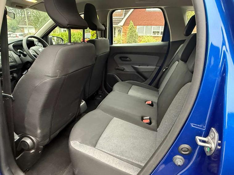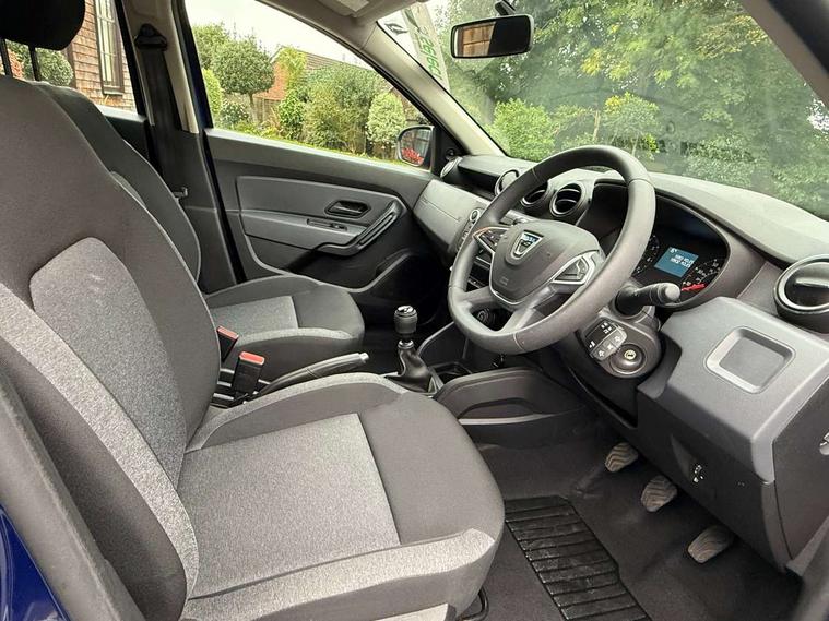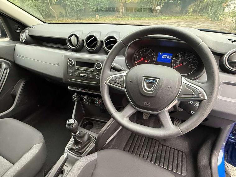 4x4 monitor with altimeter, Compass functional at 0km/h, Cruise control and speed limiter, Dacia instrument cluster, eCall emergency system, Eco mode, Electric power assisted steering, On board computer, odometer, trip computer, average fuel consumption, average speed, service indicator, outside temperature gauge, Rev counter, Stop/start system, Dacia plug and radio/MP3/USB/bluetooth/DAB/steering wheel control, 3 speed windscreen wipers, Black door handles, Black door mirrors, Black longitudinal roof bars with Duster inscription, Black side sills, Black/satin chrome tailgate trim with Duster inscription in black background and lettering, Dusk sensor, Electric front windows, Front and rear body coloured bumpers, Heated rear window, High level third rear brake light, LED automatically switched on - In main headlights, LED daytime running lights, Manual rear windows, Manually adjustable door mirrors, Rain sensor, Rear side wing doors, Rear spoiler, Rear wash/wipe, Tinted windows, Underbody protection skid plates, Y shaped LED headlights with rear LED lights, 3 rear height adjustable headrests, 3 seat bench in 2nd row, Backlighted steering wheel buttons, Boot light, Charcoal grey interior door handles, Fabric upholstery, Front head restraints, Gear shift indicator, Height adjustable front and rear headrests, Height and depth adjustable steering wheel, Isofix points for child seats in both outer rear seats, Manual air conditioning, One split folding complete rear seatback bench, Single front passenger seat, 3x3 point rear seatbelts, ABS and Emergency brake assist, ASR traction control with Electronic stability control, Child locks on rear doors, Door open visual and audible warning, Driver airbag, Driver and passenger seatbelt not fastened - visual and audible warning, Front passenger airbag, Front passenger airbag deactivation, Front seatbelt pretensioners, Front side airbags, Height adjustable front seatbelts, Hill start assist, Tyre pressure monitor, Remote central locking, Thatcham approved engine immobiliser, Dark carbon central console surround, Matt black central console fascia, Satin chrome air vent surround, 16" steel wheels,