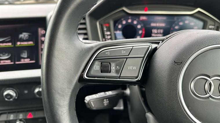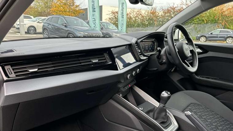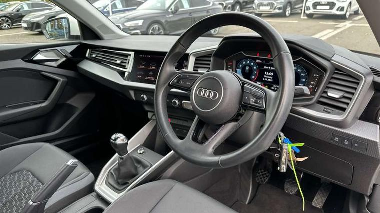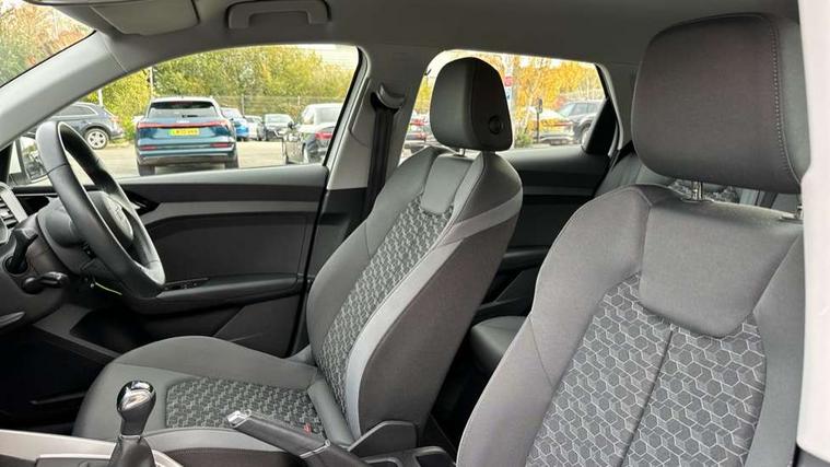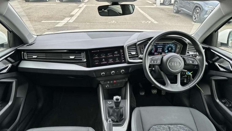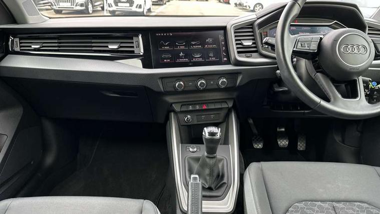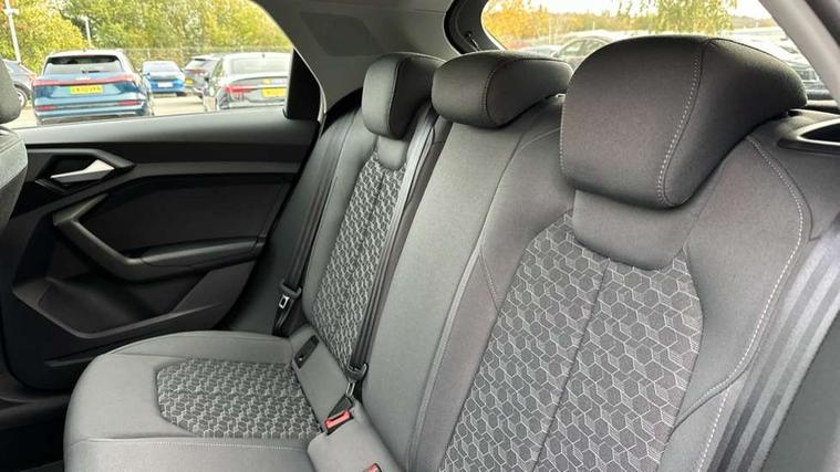 10.25" Digital instrument cluster display classis style instrument dials + speed, odometer, time, outside temperature, telephone menu + fuel level warning, Audi smartphone interface with connect compatible smartphone via USB directly MMI display + Nav, music, third party apps controlled via MMI controller, Automatic start/stop system, Bluetooth interface, Cruise control, Driver's information system, Electromechanical power steering, Emergency e-call, Lane departure warning system, Rear parking sensor, Service interval indicator, Speed limiter, Voice control system, Washer fluid level indicator, Dynamic suspension, 2 x USB type C connection points, 6 passive loudspeakers, DAB Digital radio, MMI radio plus with 10.1" colour MMI display screen and MMI touch, Auto dimming rear view mirror, Body coloured bumpers, Body coloured door mirrors, Electric front and rear windows, Electrically adjustable, heated, folding door mirrors with integrated LED side indicator, Front side air inlets in grained matt black and C frame in anthracite black, Heat insulating glass windscreen and side windows, Heated rear windscreen, High level LED brake light, LED headlights with LED rear lights + dynamic rear indicators + headlight adjustment and high beam, turning light + LED daytime running lights, Radiator grille and rear diffuser in matt anthracite black, Radiator protective grille frame in matt aluminium silver, Rain and light sensors, Rear fog lights, Rear side wing doors, Rear wiper, Side front spoiler lips in grained matt black, 12V socket in centre console with two cup holders, 3 rear seats with headrests, 3 seat bench in 2nd row, 3 spoke leather multifunction plus steering wheel, 40:60 Split folding rear seat or folded fully, Black front and rear floor mats, Door sill trims with aluminium inlay, Driver and passenger seat with manual height adjust with forward and backwards adjustment, Front head restraints, Front passenger seat, Grey cloth headlining, Height and reach adjustable steering wheel, ISOFIX child seat mounting for front passenger and outer rear seats including top tether attachment point of outer rear seats, Leather gear knob with aluminium trim, Leather handbrake grip, Luggage compartment light with front and rear reading lights, Manual air conditioning, Manually adjustable lumbar support in front seats, Novum cloth upholstery with front sport seats, Luggage compartment pack - A1, 3x3 point rear seatbelts, Audi pre-sense front with pedestrain and cyclist recognition, Brake assist function, Driver and front passenger airbag with front side and head airbags, Electronic Stability Control including ABS, EBD, ASR and EDL, Front passenger airbag deactivation switch, Hill hold assist, Manual rear child locks, Seatbelt height adjustment for front seats, Seatbelt monitoring, Tyre pressure warning light, Warning triangle and first aid kit, Anti theft alarm, Anti theft wheel bolts and loose wheel warning, Immobiliser, Remote central locking with 2 foldaway keys, Aluminium trim for control switches, air vents and digital instrument cluster, Black dashboard, Silver grey accent areas including air vents, door handle recesses and centre console in diamond paint finish, Slate grey inlays polygon structure in fine paint finish,