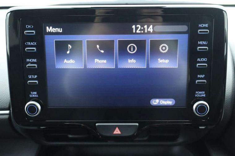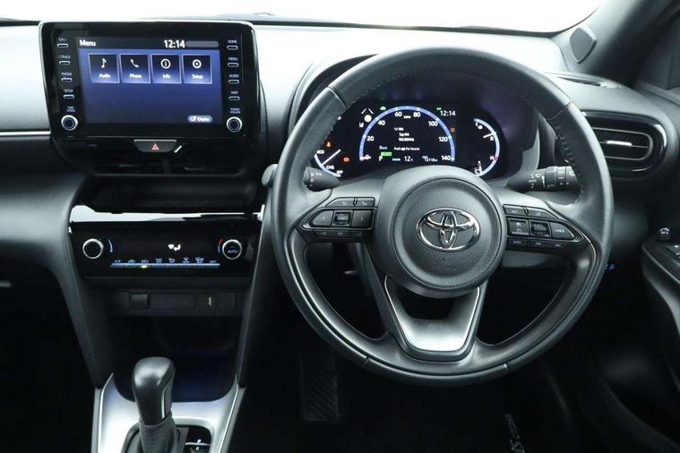 7" Multi information display screen, 8" Toyota touch 2 multimedia system with Smartphone integration with Apple CarPlay and Android auto, Adjustable speed limiter, Bluetooth connectivity, Driver attention alert system, eCall emergency system, Electric power steering, Full range intelligent adaptive cruise control, Hybrid system indicator, Key reminder warning, Lane trace assist, Multimedia, audio, telephone and voice recognition switches on steering wheel, My T Connected services, Pre-collision system enhanced with emergency steering assist, Reversing camera, Road sign assist - RSA, Steering assisted vehicle stability control, 6 speakers, DAB Digital radio, USB connection, 3rd brake light, Acoustic windscreen glass, Aluminium roof rails, Anti-jam protection on power windows, Auto high beam [AHB] with on/off switch, Automatic headlights, Black lower front grille, Black Shark-fin antenna, Black upper front grille, Black wheel arch mouldings, Body colour door handles, Body colour front bumper, Body colour rear bumper, Electric adjustable heated door mirrors, Follow me home headlights, Front and rear electric windows with auto up/down function, Front intermittent wipers, Headlight cut off reminder, Indicators integrated on door mirrors, Intermittent rear wiper, LED daytime running lights guide, LED front fog lights, LED front light guide, LED Indicators, LED projector headlights, LED rear light guide, Manual headlight levelling, Manually retractable door mirrors, Noise reduction layer on windscreen, Privacy glass, Rain sensor, Rear LED lights with sequential indicators, Rear side wing doors, Rear spoiler, Rear window defogger, 12v power outlet - front, 2x Rear coat hooks, 3 seat bench in 2nd row, 3 spoke leather steering wheel, 40:20:40 split folding rear bench seat, Adjustable speed limiter switch on steering wheel, Auto air conditioning, Black roof lining, Boot light, Central armrest, Centre console in light blue ambent lighting, Driver and front passenger personal lights, Fabric door trim, Fabric upholstery, Footwell in light blue ambient lighting, Front console box, Front cup holders, Front head restraints, Glovebox, Height adjustable driver's seat, Height adjustable front passenger seat, Hooks for luggage holding belts, ISOFIX child restraint system, Lane departure alert switch on steering control, Leather gearshift, Light blue ambient lighting on front doors, Manual telescopic and tilting steering wheel, Mirror on driver and passenger sun visor, Pollen air filter, Rear cup holders, Rear head restraints, Single front passenger seat, Soft tonneau cover, 3x3 point rear seat belts, ABS+EBD+Brake assist, Driver and passenger central airbags, Driver and passenger front airbags, Driver and passenger side airbags, Electronic parking brake, Emergency brake light system (EBS), Front seat belt reminder, Hill start assist control (HAC), Passenger airbag on/off switch, Pre-collision system with pedestrian and cyclist detection, Rear door child safety locks, Rear passenger side airbags, Rear seat belt reminder, Traction control, Tyre pressure warning system, Immobiliser, Intrusion alarm, Keyless smart entry with push button start, Power door locks, Power passenger window lock, Remote door lock, Tyre repair kit,