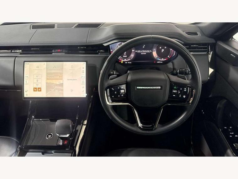 13.1" Touchscreen, 3D 360 degree surround camera with wade sensing, Adaptive cruise control with steering assist, Android Auto, Apple car play, Blind spot assist, Bluetooth connectivity streaming, Driver condition response, Eco mode, Front and rear parking aid, Interactive Driver display instrument cluster, Lane departure warning system, Lane keep assist, Push button start, Rear collision monitor, Rear traffic monitor, Remote, Traffic sign recognition with adaptive speed limiter, Trip computer, Wireless device charging, 8 speed automatic transmission, Adaptive dynamics, All wheel drive system, Automatic access height, Terrain Response 2, DAB Radio (Digital Audio Broadcasting), Incontrol protect - SOS emergency call with automatic collision detection, optimised assistance call and Incontrol remote app essential, Pivi pro connected, USB/aux input socket, Adaptive brake lights, Automatic headlight levelling, Automatic headlights, Centre high mounted stop light, Electric heated/power fold memory door mirrors with approach lights and auto dimming driver side, Electric windows with one touch open/close and anti trap, Flush deployable exterior door handles, Follow me home lighting, Front and rear recovery eyes, Headlight power wash, Heated rear window, Heated washer jets, Heated windscreen, Illuminated aluminium treadplates with Range Rover script, LED tail lights, Metal load space scuff plates, No badges, Rain sensing windscreen wipers, Rear animated directional indicators, Rear fog lights, Rear side wing doors, Rear wash/wipe, Remote window closing, Side repeater indicators in mirror, Trailer stability assist, Winter wiper park position, 3 seat bench in 2nd row, 60:40 seats with power recline and loadthrough, Air quality sensor, Auto air recirculation, Bright metal foot pedals, Centre console with armrest, Customer configurable single point entry, Driver's footrest, Easy boot loading, Ebony console door armrests and seatbelts, Electric adjustable steering column, Front and rear cupholders, Front door storage space, Front head restraints, Front map lights, Front seat back map pockets, Front stowage pocket, Front/rear passenger grab handles, Gearshift paddles, Heated steering wheel, Isofix child seat preparation, Loadspace cover, Loadspace Hook, Loadspace light, Loadspace mounting provisions, Lockable glovebox, Luggage tie-downs in loadspace, Multifunction steering wheel, Pollen filter, Power socket, Rear centre armrest, Rear head restraints, Rear ISOFIX, Single front passenger seat, Three 12V accessory power outlets, Upper secondary glovebox, Online pack with data plan - Range Rover Sport, 3 point seatbelts on all seats, Anti-lock braking system (ABS), Brake pre-fill technology, Configurable autolock, Cornering brake control (CBC), DSC - Dynamic Stability Control, EBD - Electronic brakeforce distribution, Electric parking brake, Electronic traction control, Emergency braking, Front seatbelt pretensioners, Front side airbags, Height adjustable front seatbelts, Hill descent control, Hill launch assist, Low traction launch, Occupant protection assist, Passenger seat occupant detector with front airbags, Power operated child locks, Roll stability control, Seatbelt warning, TPMS (Tyre pressure monitoring system), Immobiliser, Intrusion sensor, Keyless entry, Locking wheel nuts, Perimetric and volumetric anti theft alarm, Remote locking, Moonlight noble chrome interior finishers,