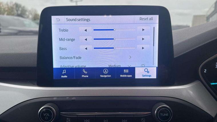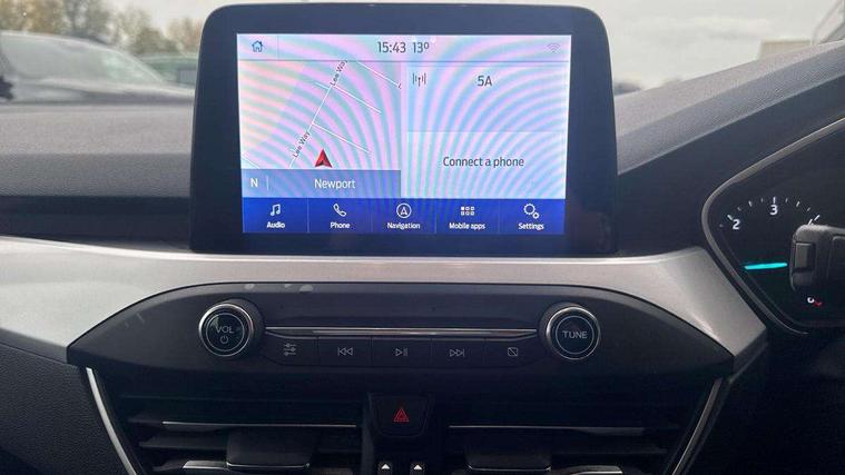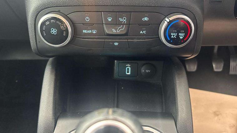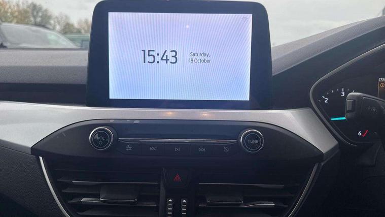 Bluetooth system, Cruise control + speed limiter, Digital clock, Easy fuel capless refuelling system, Eco mode, Ford pass connect, Ford SYNC 3 with 8" TFT touchscreen, and app link Android auto/Apple carplay, Intelligent speed assist, Lane keeping aid with lane departure warning, PAS, Selectable drive mode, Trip computer, Diesel particulate filter, 6 speakers, Aux input, 'Quickclear' heated windscreen/heated washer jets, Auto headlamps (on/off), Body coloured bumpers, Body coloured door handles, Body coloured electrically operated and heated door mirrors with side indicators, Electrically operated front and rear windows with one touch opening and closing, Front fog lamps with cornering function, Front variable intermittent wipers with electric wash, Halogen reflector headlamps, Heated rear window, LED daytime running lamp, Tailgate wash/wipe, 3 spoke leather trimmed steering wheel with integrated audio controls, 60/40 split back and cushion rear seats with 2 height adjustable headrests, Centre console with armrest, Cloth upholstery, Driver's lumbar support, Front floor mats, Height adjustable front headrests, Isofix child seat preparation, Leather gear knob, Manual air conditioning, Reach + rake adjustable steering column, Rear centre headrest, ABS+Electronic Brake force Distribution, Auto hold function, Driver airbag, Electronic parking brake, Electronic stability control, Front and rear seatbelt reminder, Front inertia reel height adjustable seatbelts with pre-tensioners, Front passenger airbag, Front side airbags, Hill start assist, Passenger airbag deactivate switch, Post collision braking, Pre collision assist with autonomous emergency braking and pedestrian/cyclist detection, Side curtain airbags, Three rear inertia reel lap/diagonal seatbelts, Tyre pressure monitoring system, MyKey system, Remote central locking & engine immobiliser, Thatcham category 1 alarm, Mini steel spare wheel,