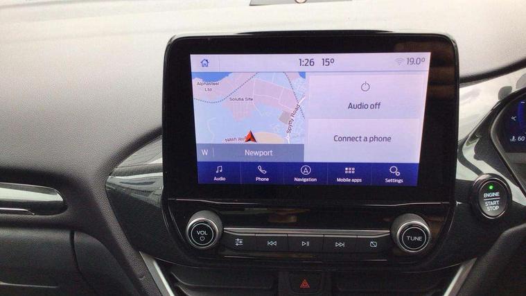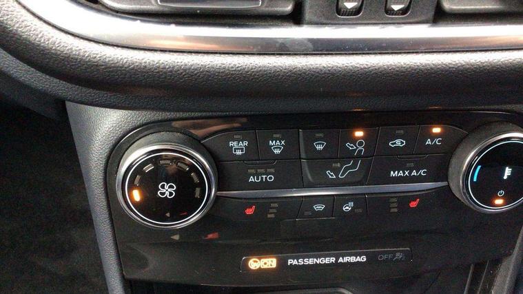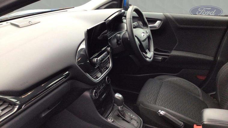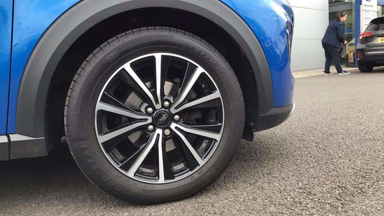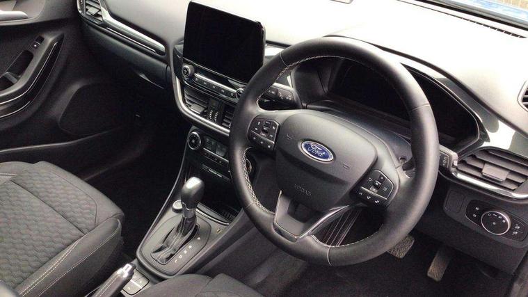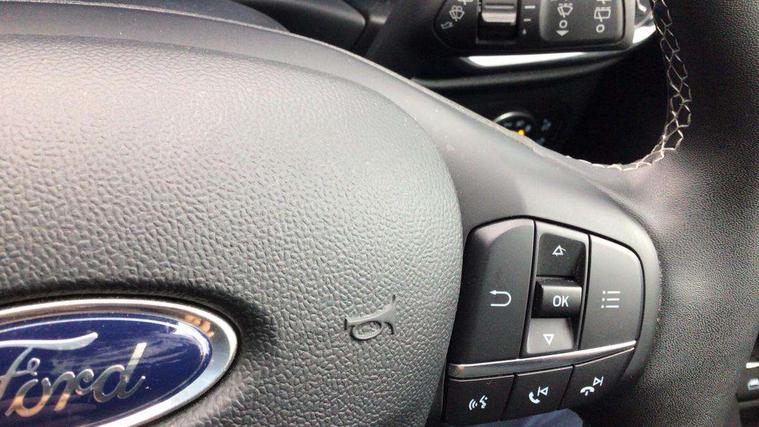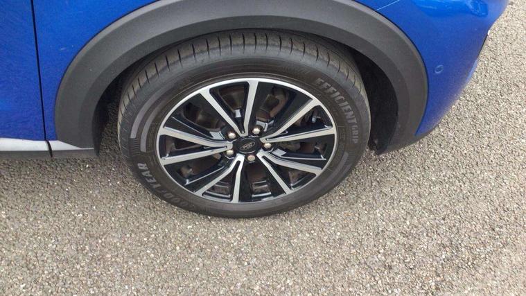 Ford easy fuel, Lane keeping aid with lane departure warning, Power assist steering, Rear parking sensor, Selectable drive modes(Normal, sport, Eco, trail, slippery), Body coloured door mirrors, Front fog lights with cornering lights and LED rear lamps, Power foldable heated door mirrors with puddle lamps, Quickclear heated windscreen, Rear wiper, Centre console with armrest and stowage, Cloth upholstery, EATC - Electronic Auto Temperature control, Ford megabox extended bootspace, Front and rear head restraints, Front floor mats, Leather steering wheel/gear knob/handbrake, 3 rear seatbelts, Electronic stability control (ESC) and hill start assist, Pre-collision assist with autonomous emergency braking, pedestrian/cyclist detection & post-collision braking, Tyre pressure monitoring system (TPMS), Thatcham alarm, 17" 10 spoke absolute black machined finish alloy wheel,