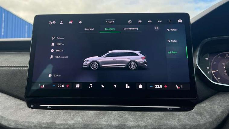 1x USB Typc C port in rear view mirror, 4x USB Type C ports - 2x in front centre console and 2x in rear (45W), Drive mode selection, Driver fatigue sensor, eCall emergency system, Electro-mechanical power steering, Front assist system, Traffic jam assist, Traffic sign recognition, Turn Assist, Virtual Cockpit - 10.25" digital display, Voice control system, Wireless charging (15W) with cooling function, Wireless SmartLink for Apple CarPlay and Android Auto, 13" touchscreen display with navigation, DAB Digital radio, Aero front windscreen wipers with intermittent function, Auto dimming rear view mirror, Body colour bumpers, Body colour door mirrors and handles, Chrome grille surround, Chrome roof rails, Chrome strip in lower front bumper, Chrome window surrounds, Electric front and rear windows, Heated rear windscreen, High level third brake light, Ice scraper in fuel cap, LED daytime running lights, LED Headlights, Logo projection in front doors, Rain and light sensors, Rear fog light on one side, Rear privacy glass, Rear side wing doors, Rear spoiler, Rear window wiper, 12 volt socket in boot, 3 rear headrests, 3 seat bench in 2nd row, 4 foldable roof handles, Electric auxiliary air heater, Front head restraints, Heated front seats, Illuminated glovebox, Interior door handles in dark chrome, Jumbo Box storage, Luggage compartment lighting x2 lights, Mechanical rear seat release from boot, Single front passenger seat, Steering wheel in black leather with black stitching, Storage compartments in left and right of boot, Sun visors with mirrors, Sunglasses storage, Ticket holder, Umbrella in door panel, Unsplit rear bench seat, split folding backrest with centre armrest with cupholder, Comfort package - Octavia Estate, Simply clever package premium with Storage compartment under passenger seat - Octavia, 3x3 point rear seat belts, Alarm with interior monitoring, tilt sensor and back up horn, Curtain airbags and front side airbags, Driver and front passenger airbags, Drivers knee airbag, Electronic parking brake, ESC including ABS, EBV, MSR, ASR, EDS, HBA, DSR, Front central airbag, Hill hold assist, ISOFIX on front passenger seat and outer rear seats, Passenger airbag deactivate switch, Three point seat belts in front and rear, Two tone horn, Tyre pressure monitor, Visual and acoustic seat belt reminder, Warning reflectors in front door, Anti-theft wheel bolts, Keyless start/stop, Remote central locking, Chrome air vent surrounds,