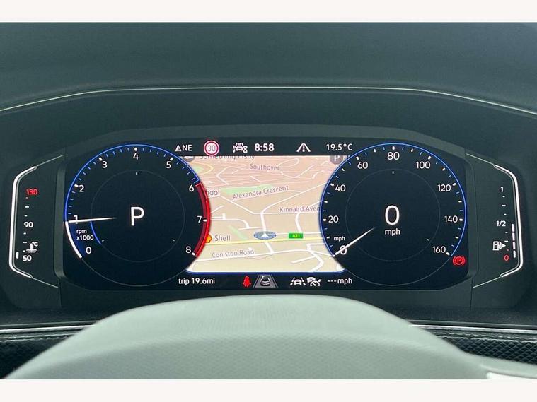 'Lights On' Reminder warning buzzer, 10.25" Digital cockpit pro, Advanced driver attention and drowsiness monitor, Car information display, Driver profile selection including ECO function, Dynamic road sign display, E-Sim card for online connectivity, eCall emergency call system, Front and rear parking sensors, Front assist, forward collision warning, autonomous emergency braking and speed limiter, Low washer fluid warning light, Mobile phone interface with inductive charging, Multifunction computer with visual gear change recommendation for fuel consumption, Multifunction front facing camera for distance control, Operating permit alteration, Power assisted steering, Predictive adaptive cruise control, Preparation for navigation system with media and internet package, Preparation for We connect and We connect plus, Semi-automated driving assistance, travel assist including lane keeping system Lane Assist and emergency assisst, Side assist, Speedo, rev counter, electronic odometer, trip, service interval display, exterior temperature and fuel gauge, Warning sound and light for doors and tailgate open, Warning sound and light for front seatbelts unfastened, Wireless Car net app connect with Apple CarPlay, combined functionality of Apple CarPlay/Android Auto and MirrorLink, Wireless charging, Misfuel prevention device, Start-stop system with battery regeneration (recuperation - energy recovery during braking), 2 USB C ports in front, 2 USB charging sockets on the centre console in the rear charging capacity upto 45W, Diversity antenna for FM reception, Music playback - MP3, WMA and AAC files, Radio, Advanced high beam control dynamic light assist, Automatic dimming interior rear view mirror, Automatic hazard lights activation under emergency braking, Automatic headlight control and coming home and leaving home feature, Black roof rails, Body colour door handles, Body coloured bumpers, Cornering light and poor weather light, Dynamic headlight range control, Electric folding door mirror, adjustable, heated with front passenger exterior mirror lowering function, Exterior mirror housings in black, Exterior mirrors convex on the left and aspherical on the right, Front and rear electric windows, Front door sill protectors with R-Line logo, Galvanised body, Heat insulating and laminated safety glass windshield, Heat insulating darkened glass in side and rear windows, Illuminated molding between headlamps, IQ.Light LED matrix headlamps with LED separate daytime running light, LED rear tail lights with dynamic turn signal, LED third brake light, Lower door sills and door pillars in black, Privacy glass for rear side windows and rear window, Rain sensor, Rear fog light on one side, reversing light on both sides, Rear side wing doors, Rear window aerial, Rear window wiper with intermittent control, Reflectors in all doors, Scuff plates, Tailgate with integrated roof spoiler, 12V Accessory socket in centre console, 2 Front and rear reading lights incorporating LED technology, 3 rear head restraints, 3 seat bench in 2nd row, 60/40 split folding rear seat backrest, Air care climatronic 2 zone air conditioning system, Ambient lighting and logo projection, Brushed stainless steel pedals, Chrome plated radiator grille inserts, air vent surrounds and light switch surrounds, Cloth upholstery, Comfort front sport seats, Door and side trim panel, Driver and front passenger sunvisor with vanity mirror, Dust and pollen filter, Front + rear carpet mats, Front centre armrest, Front centre armrest with storage compartment, Front footwell illumination, Front seat back storage pockets, Glove compartment door with light, Heated front seats, Heating and fresh air system with 4 stage blower, Height/reach adjust steering wheel, Instrument lighting white adjustable panel illumination, Interior light with switch off delay and dimmer, Isofix anchors for child seats on outer rear seats and front passenger seats, Leather gearshift handle, Leather wrapped multifunction steering wheel with paddle shift, Luggage compartment floor, Luggage compartment lighting, Manual front seats with height adjustment, Padded dashboard, Removable luggage compartment cover, Single front passenger seat, Storage compartment in drivers and front passengers door, Titanium black roof lining, Unsplit sliding rear seat bench, Without drawers under front seats, 3 point outer rear seat belts with ECE label, 3 Point seatbelt for centre rear seat, Anti-lock Braking System (ABS) with Hydraulic Brake Assist (HBA), Automatic post collision braking system, Disc brakes in front, Disc brakes in rear, Driver and front passenger safety-optimised head restraints, Drivers and Front Passengers airbags with front passengers airbag deactivation switch, ESC with EDL and ASR (traction control), Extended and predictive pedestrian/cyclist protection, Front and rear passenger curtain airbag system including front side airbags, Height adjustable front 3 point seatbelts + pretensioners, Hill start assist, Pre crash preventive occupant protection, Proactive passenger protection system in combination with front assist, Rear door child safety locks, Rigid safety cell with front and rear crumple zones, Single tone horn, Tyre pressure loss indicator, Volkswagen roadside assistance, Alarm with interior protection, Anti theft alarm system, Anti theft wheel bolts, Electronic engine immobiliser, Remote tailgate unlocking using key fob, Black decorative trims, Titanium Black Decorative inserts - R Line, 18" York alloy wheels in black, Low rolling resistance tyres,