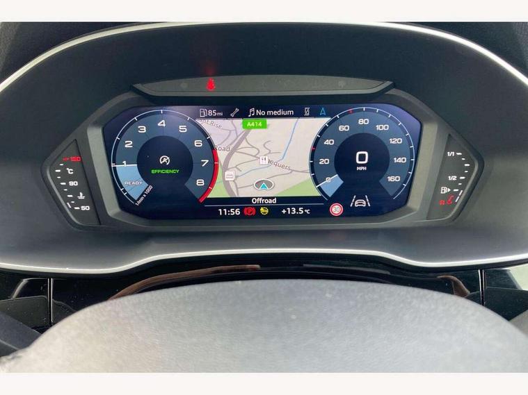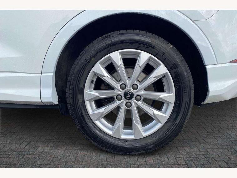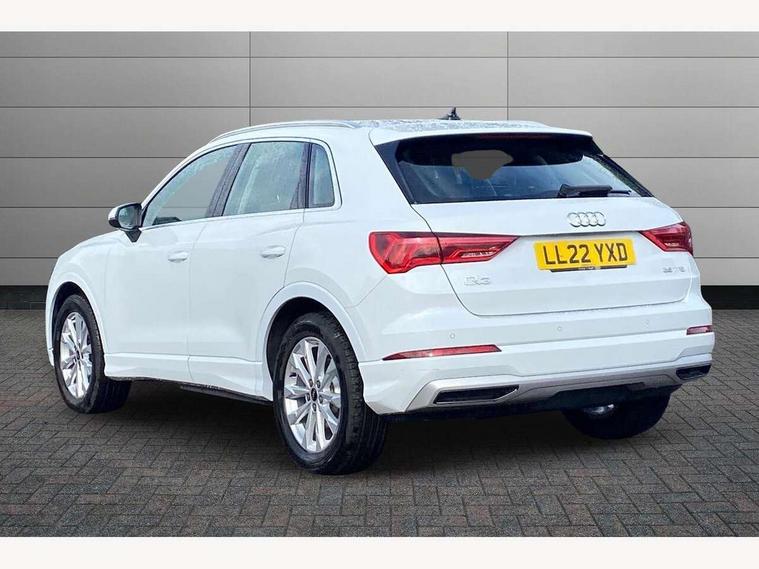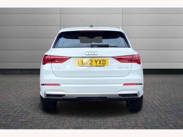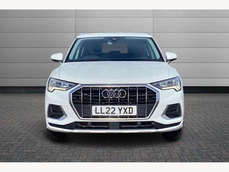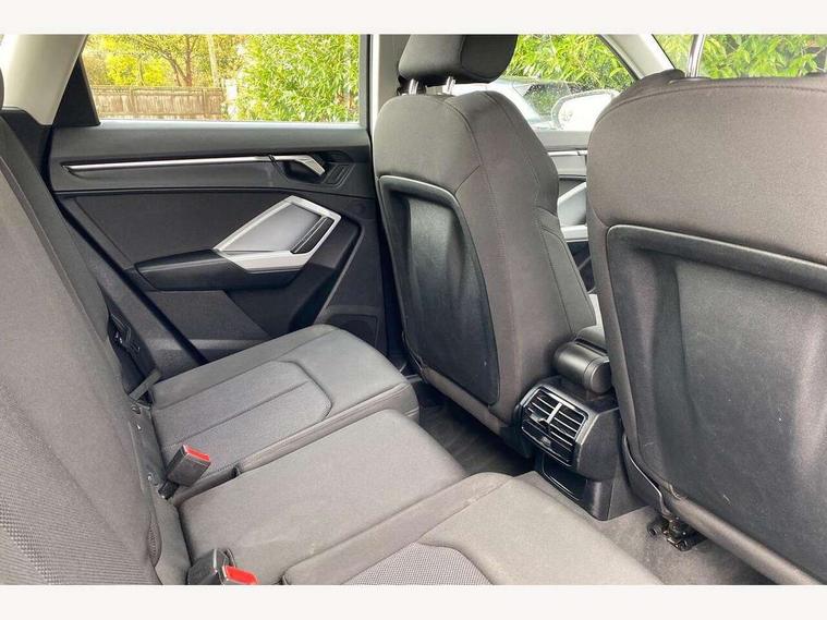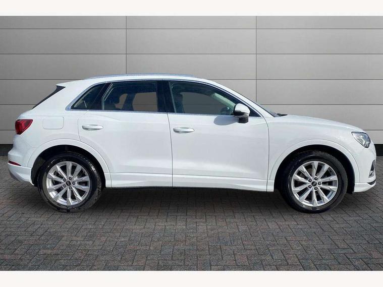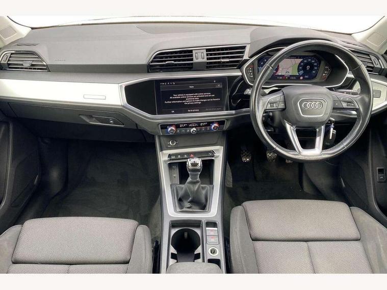 Amazon alexa Integration, Audi drive select, Audi lane departure warning, Audi Virtual Cockpit - 10.25" display, Bluetooth interface, Camera based traffic sign recognition, Cruise control + speed limiter, Legal emergency call, MMI Navigation Plus with high resolution 10.1 inch touchscreen colour display, Power operated tailgate, Progressive steering, Rear parking sensors, Service interval indicator, Smartphone interface includes wireless Apple carplay/Android Auto, Start stop system with recuperation, Voice control system with natural language interaction, Standard suspension, 2 USB-C ports with charge and data functions, 6 passive loudspeakers, DAB digital radio module, Acoustic windscreen, Aluminium roof rails, Aluminium window trim, Auto dimming frameless rear view mirror, Body coloured bumpers, Electrically folding, adjustable and heated door mirrors with integrated LED side indicators and kerb view function for passenger side, Front and rear electric windows, Front fog lights, Front side air inlets in matt selenite silver, Front spoiler in matt selenite silver, Grille vertical bars in aluminium silver/Matt, High gloss black finish B and C pillars, LED headlights with LED daytime running lights, LED rear lights, LED third brake light, Rain and light sensors, Rear diffuser strip in matt selenite silver, Rear side wing doors, Rear wiper, Titanium black radiator grille, Variable front intermittent wipers, 12V socket in rear centre console, 3 seat bench in 2nd row, 3 spoke multi-function leather steering wheel, 40:20:40 folding with manual adjustment for 60:40 forwards/backwards position and backrest angle, Door sill trims with aluminium inlay, Dual zone electronic climate control, Front and rear floor mats, Front and rear headrests, Front and rear roof module including reading lights, Front centre armrest, Glove compartment lighting, Height and reach adjustable steering wheel, ISOFIX child seat mounting for front passenger with airbag deactivation and outer rear seat including top tether attachment point for outer rear seats, Luggage compartment light, Lunar silver cloth headlining, Manual front seats with height adjustment, Single front passenger seat, Stainless steel luggage compartment sill finisher, Non smoking pack - Q3, 3x3 point rear seatbelts, 6 airbags - Driver, front passenger, curtain and side windows, Audi pre-sense front with pedestrain and cyclist recognition, Electromechanical parking brake, Electronic stabilisation control including ABS, ASR and EDL, Front seatbelt reminder, Hill descent control, Hill hold assist, Manual child lock in rear doors, Pre sense basic, Seatbelt monitoring, Tyre pressure warning, Warning triangle and first aid kit, Anti theft alarm, Anti theft wheel bolts, Immobiliser, Remote central locking, Detail dashboard around MMI touch colour display in glass look, black with surround in aluminium look, Micrometallic silver inlay,