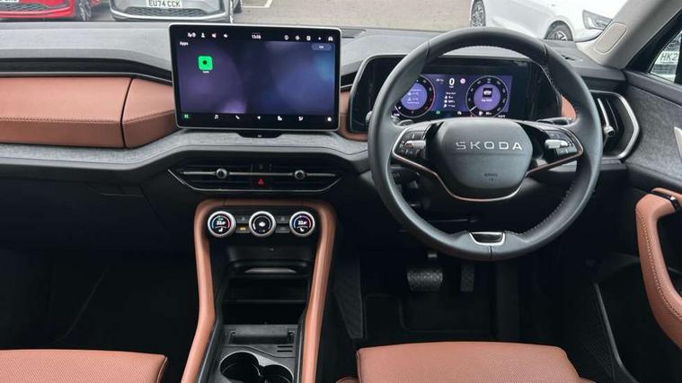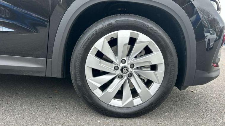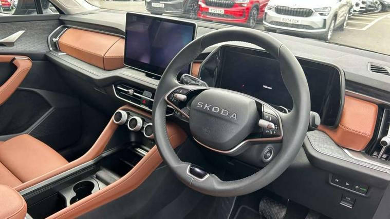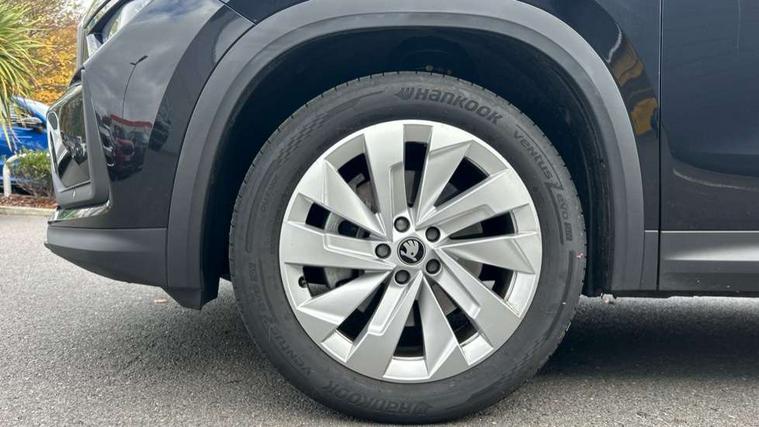 13" satellite navigation touchscreen display, Blind spot detection with door exit warning, Bluetooth system, ChatGPT functionality, Driver alert - Fatigue and drowsiness monitor, Dry display cleaner, Emergency call, Front and rear parking sensors, Front cross traffic assist, Lane assist, PAS, Rear traffic assist, Tailgate unlocking from outside, Traffic sign recognition, USB C Port x 2 in front centre console, Virtual Cockpit - 10.25" digital display, Voice control system, Wireless charging for two smartphones (15W) with cooling function, Wireless SmartLink for Apple CarPlay and Android Auto, Stop/start function, 2x USB-C in the rear, DAB Digital radio, Aero front windscreen wipers with intermittent function, Auto dimming rear view mirror, AWL (all weather lighting) and all weather light with cornering function, Black wheel arch surrounds, Body colour bumpers, Body colour door mirrors and handles, Cornering light and poor weather light, Electric folding /adjustable/separted heated/folding door mirrors, auto dimming with boarding sports and memory function, Electric front and rear windows, Exterior black decorative trims, Heat insulating glass in windshield, Heated rear window, Ice scraper in fuel tank cap, Invisible tailpipe, LED daytime running lights, LED third brake light in rear spoiler, Light assistant with automatic headlight control and coming home feature, Logo projection in door mirrors, Privacy glass, Rear roof spoiler, Rear side wing doors, Rear window wiper, Red decorative strip between rear LED lights, Safety reflectors on front and rear doors, Unique dark chrome design logo on alloy wheels, Window control switches with black trim, Windscreen wipers with rain sensor, Without engine designation, 1.5l bottle holder points in all door, 1x centre rear reading light, 2 seat bench in 3rd row, 3 configurable smart dials with 32mm coloured display, 3 seat bench in 2nd row, 4 foldable roof handles with rear coat hooks, Ambient interior lighting - Dashboard, front-door stowage compartments, front and rear door panels and footwell lighting, Automatic gear selector on steering column, Chrome interior door handles, Driver/front passenger reading lights, Fabric headlining, Fixed bench 40:60:40 split folding backrests, Front and rear floor mats, Front centre armrest with jumbo box storage compartment, cup holder and 12V socket, Height adjustable front headrests, Isofix child seat fittings in outer middle row rear seats and front passenger with top tether, Manually adjustable steering column, Pollen filter, Rear centre armrest with cupholders, Rear seat boot backrest release, Single front passenger seat, Skoda lettering on steering wheel, Storage pocket including mobile phone pockets on the backs of the front seats, Sunvisors with illuminated vanity mirrors, Three rear height adjustable headrests, Ticket holder on A Pillar, Tri zone climate control, Umbrella in door panel x1 made from sustainable materials, Upper and lower glovebox with card holder and coin compartment, USB C port by rear view mirror for charging only (15W), Exterior styling pack - Kodiaq, Auto door release and activation of warning lights in the event of an accident, Driver and front passenger airbag with knee airbag and front passenger airbag deactivation, Electric child locks, Electronic parking brake, ESC (incl. ABS+EMD+MSR+ASR+EDL+HBA+DSR+RBS+ESBS+MCB+TSA+XDS), Front assist with braking reaction to vehicles, pedestrians and cyclists, Front disc brakes, Fuel cut off safety device, Height adjustable front 3 point seatbelts + pretensioners, Hill hold assist, Junction assist with automatic emergency braking, Rear disc brakes, Safety vest holder in door, Seat belt reminder for all seats, Three point rear seat belts, Two tone horn, Tyre pressure monitor, Anti-theft wheel bolts, Immobiliser, Remote central locking with 2 keys,