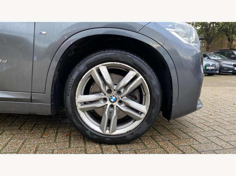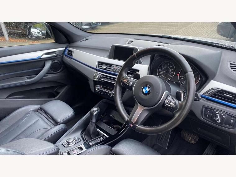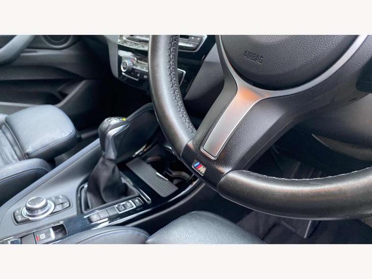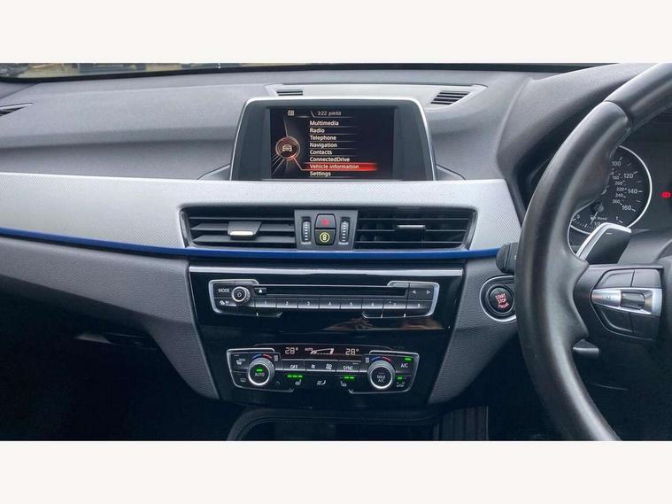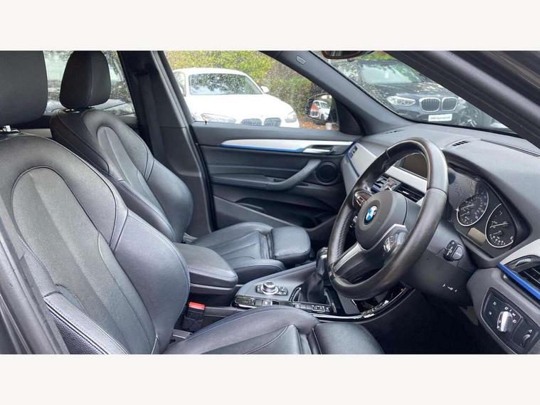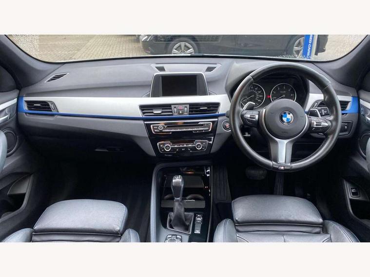 Active Guard incl speed limiting and lane departure functions with auto steering, and front collision warning with brake intervention, Ambient temperature display, Attentiveness assist, Automatic tailgate opening, BMW Online services, BMW Teleservices, Lights on warning, On board computer, Outside temperature gauge, Rear park distance control, Service interval indicator, Speed limiter, Stop/start button, Tyre puncture warning system, Electronic differential lock, Performance Control, Auxiliary socket for external MP3 player, BMW professional radio with CD player, DAB Digital radio, Adaptive LED Headlights, Adjustable headlights, Body colour bumpers, Body colour door handles, Body colour door mirrors, Chrome tailpipe finisher, Electrically adjustable and heated door mirrors, Fingertip control / anti-trap function on electric window, Follow me home headlights, Front and rear electric windows, Front fog lights, Heat insulating tinted glass, Heated windscreen washer jets, kidney grille with high gloss black vertical slats, LED daytime running lights, Rain sensor including auto headlights activation, Welcome home function, 12v power point in centre console, 12V power socket in passenger footwell, 3 spoke sport nappa leather steering wheel, 4 grab handles, Anthracite headlining, Boot light, Centre console with cupholders, Driver/passenger sunvisors with ticket holders, Drivers folding storage compartment, Dual zone automatic air conditioning, Front and rear door armrests, Front centre armrest/sliding cover, Front passenger isofix child seat attachment, Front sports seats, Front/rear adjustable head restraints, Heated front seats, Illuminated glovebox, Isofix rear child seat preparation, Leather gearknob/gaiter/handbrake grip, LED ambient lighting in door trim, Luggage area underfloor compartment, Multifunction steering wheel, Rake/reach adjustable steering wheel, Sliding/split/reclining 40/20/40 rear seat with 60/40 split rear seat base, Extended storage package - X1, 3 rear 3 point seatbelts, ABS/EBD, Audio/visual collision warning system, Automatic Stability Control (ASC), BMW emergency call, Cornering brake control (CBC), Crash Sensor - activates hazard/interior lighting + unlocks doors, Driver/Front Passenger airbags, Driver/front passenger side airbags, DSC - Dynamic Stability Control, Dynamic brake control, Dynamic Traction Control - DTC, Electronic parking brake, Front and rear head airbags, Front passenger airbag deactivation, Front seatbelt force limiters, Hill start assist, Pyrotechnically pre-tensioned front seatbelts, Rear door child safety locks, Seatbelt warning, Tyre pressure monitor, Warning triangle and first aid kit, Auto door lock when driving, Central locking including boot and fuel flap with deadlocks, Engine immobiliser, Locking wheel nuts, Remote control Thatcham category 1 alarm, Low rolling resistance tyres,