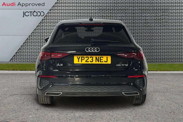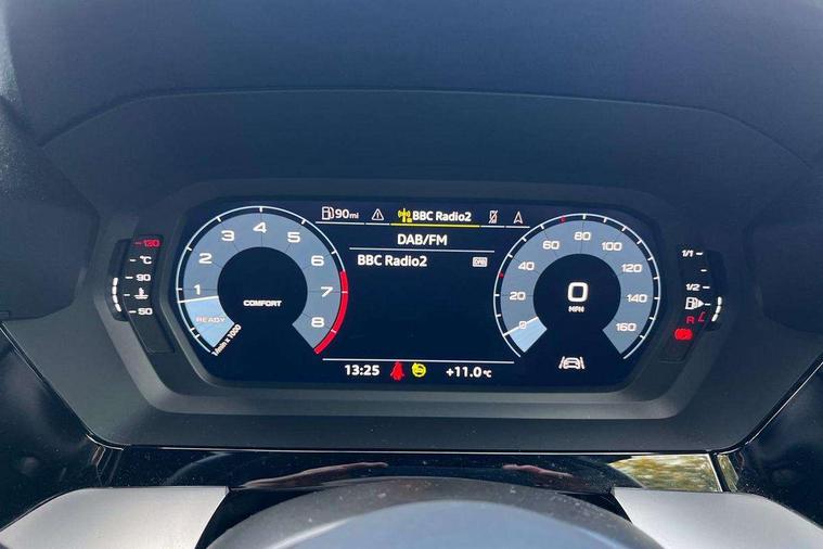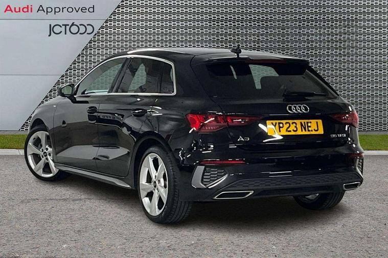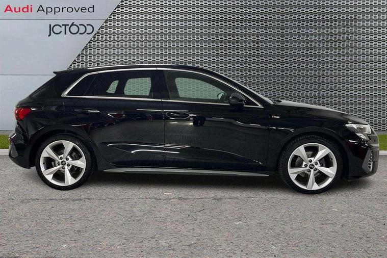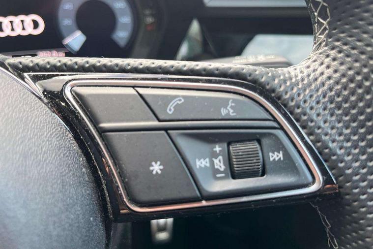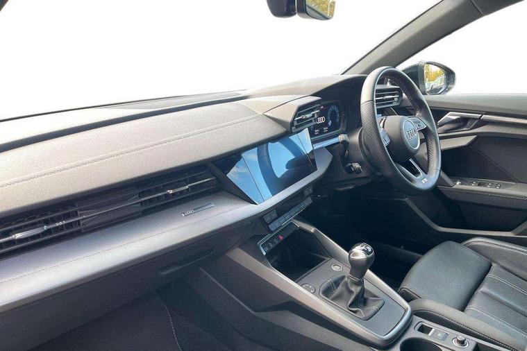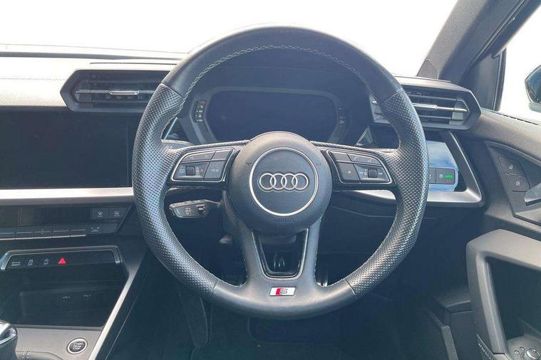 Audi drive select (Auto, Comfort, Dynamic, Efficiency and Individual), Audi smartphone interface, Audi Virtual Cockpit - 10.25" digital and colour instrument cluster, Automatic start/stop system with recuperation, Bluetooth interface, Collision avoidance assistant, Cruise control, e-Call (emergency call), Electromechanical power speed sensitive steering, Lane departure warning system, MMI Navigation Plus with high resolution 10.1" colour touch screen display, Rear parking sensors, Service indicator, Trip computer, Voice control system with natural language interaction, Sports suspension, 2xUSB-C connection with data and charging functions, 6 passive loudspeakers, DAB Digital radio, 3rd brake light, Acoustic glass windscreen, Aluminium window trim, Auto dimming frameless rear view mirror, Body colour exterior mirrors, Electrically adjustable/heated/folding/auto dimming door mirrors with integrated LED indications + kerb view function for passenger side, Front electric windows, Illuminated aluminium inserts front door sills with S logo, LED daytime running lights, LED headlights with LED rear lights and dynamic rear indicators, Light and rain sensors, Privacy glass - dark tinted rear window, rear door and side windows, Rear electric windows, Rear side air outlets in grained matt black, Rear side wing doors, Rear wiper, S line bumpers, S roof spoiler, 12V socket and storage compartment in front centre console, 3 seat bench in 2nd row, 3 spoke leather multifunction steering wheel, 40/20/40 split folding rear seat bench with cupholder, Black cloth headlining, Dual zone electronic climate control, Front and rear centre armrest in leather, Front and rear headrests, Front/rear floor mats, Height and reach adjustable steering wheel, Illuminated vanity mirror, Interior lighting - glove compartment light and right hand side, Luggage compartment floor covering, Manual boot compartment lid, Manually adjustable front seats, Seat side bolsters, Single front passenger seat, Stainless steel pedals and front footrest in black, Twin leather upholstery with front sports seats S embossed logo, Aluminium interior elements pack - A3 Sportback, LED interior lighting pack - A3 Sportback, S line styling pack - A3 Sportback, 3x3 point rear seat belts, Audi pre sense front, Driver and front passenger airbag with passenger airbag deactivation, Electronic Stabilisation Control (ESC) including ABS, ASR and EDL, First aid kit with warning triangle and 2 safety vests, Front side airbags with head airbags and interaction airbag, Pre-sense front with pedestrian and cyclist detection, Seatbelt monitoring, Tyre pressure loss indicator, Anti theft alarm, Anti-theft wheel bolts, Electronically operated child lock, Immobiliser, Remote control central locking, Accent surfaces in the dashboard and centre console in platinum grey silk effect paint finish, Dark spectrum aluminium inlays,