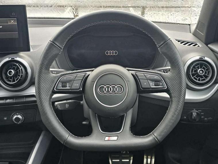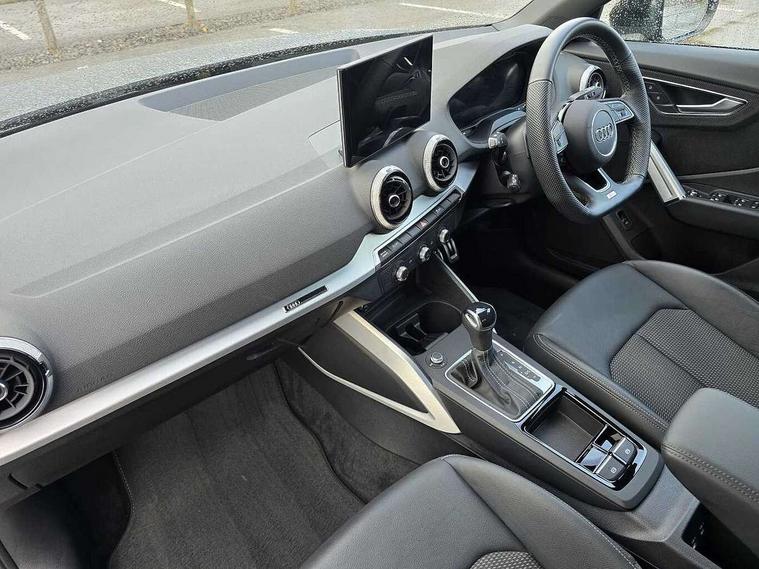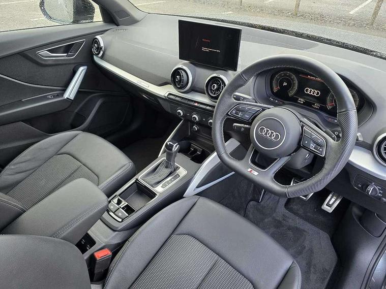 3D map display, Audi connect navigation and infotainment includes innovative services, Audi connect remote and control connects your vehicle to your smartphone, Audi drive select: S tronic - power steering assistance + engine + gearshift (modes: comfort, auto, dynamic, efficiency, individual), Audi smartphone interface - Apple carplay/Android Auto, USB connect, 2xSDXC card readers, voice control for navi, telephone, music and 3rd party apps, Audi virtual cockpit, Automatic start/stop system with recuperation, Bluetooth interface includes bluetooth audio streaming, Camera based traffic sign recognition, Cruise control, Distraction and Fatigue warning, E-call, Jukebox hard drive memory for music (10GB), Lane departure warning, MMI navigation plus with 8.8" touchscreen, Natural voice recognition, Power operated tailgate, Progressive steering, Rear parking sensors, Sport suspension, 6 passive loudspeakers, DAB Digital radio, USB type C port, Audi beam, Auto dimming rear view mirror, Black window trims, Bumper in full body colour paint finish, Electrically adjustable, folding, auto dimming and heated door mirrors with integrated LED side indicators, Front windscreen with grey tinted sunband, LED daytime running lights, LED headlights with dipped beam, high beam, position lights, indicators, LED rear lights, LED third brake light, Privacy glass - dark tinted rear and rear side windows from B-pillar backwards, Rear side wing doors, Rear wiper, Variable front intermittent wipers, Wheel arch trims in manhattan grey, 12v socket in front, 3 seat bench in 2nd row, 3 spoke flat bottomed multi-function leather sport steering wheel with gear shift paddles, 4-way electric lumbar support for front seats including manual seat height adjustment for both front seats, 60/40 split folding rear seat bench, Black carpets, Black cloth headlining, Front and rear head restraints, Front centre armrest, Front sport seats, Front/rear floor mats, Height/reach adjust steering wheel, Illuminated door sill trims with S logo, ISOFIX child seat mounting in front passenger and rear outer seats, Manual air conditioning, Single front passenger seat, Stainless steel pedals, Black styling pack - Q2, 3x3 point rear seatbelts, 6 airbags - Front, curtain and front side airbags, Electromechanical parking brake, Electronic stabilisation control including ABS, ASR and EDL, Front passenger airbag deactivation, Hill hold assist, Pre-sense front with pedestrian recognition, Seatbelt monitoring, Tyre pressure warning light with visual and acoustic warning, Warning triangle and first aid kit, Anti theft alarm, Anti theft wheel bolts, Electronically operated child locks, Remote central door locking, Aluminium interior element, Black dashboard, Gloss black centre console, Matt brushed aluminium trim inlays, Tool kit,