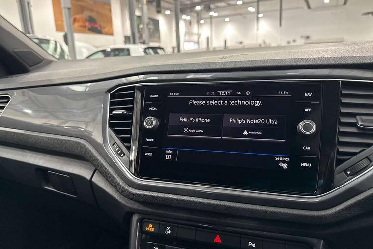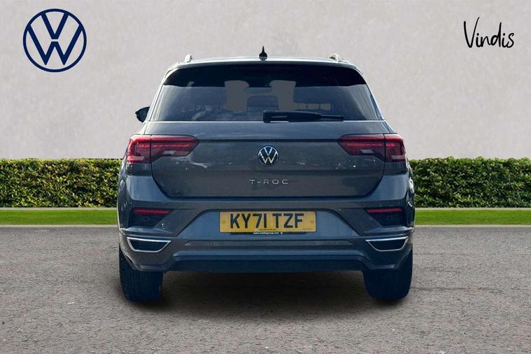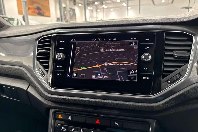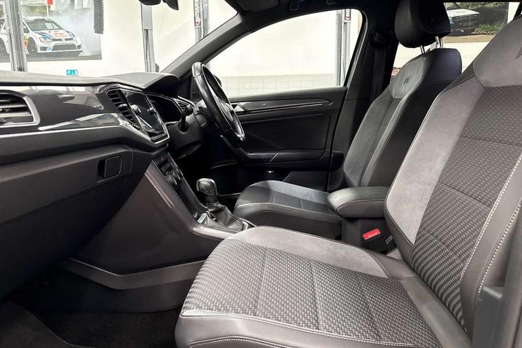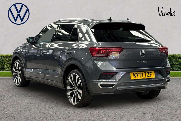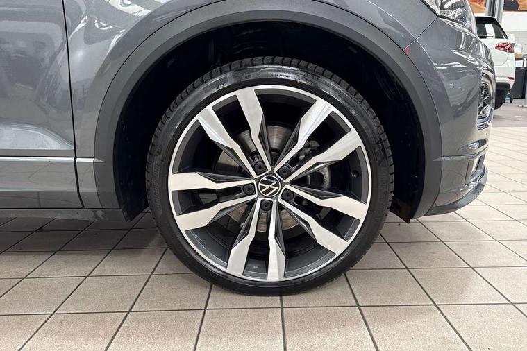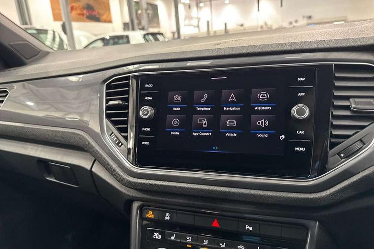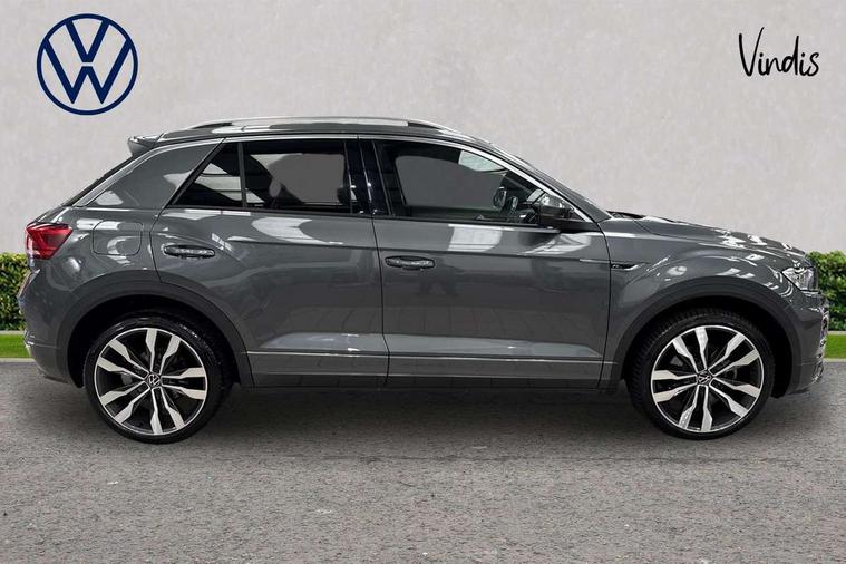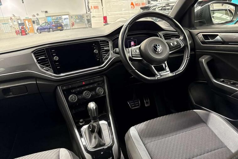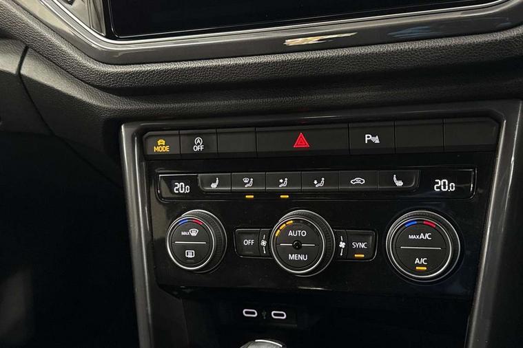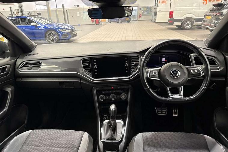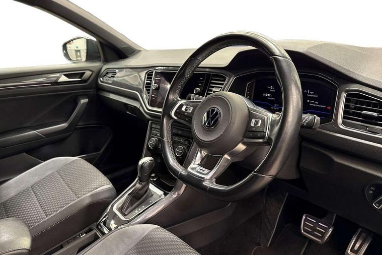 'Lights On' Reminder warning buzzer, Adaptive cruise control, Bluetooth telephone and audio connection for compatible devices, Car information display, Digital Cockpit Pro - Active info display, Driver alert system with audible and visual fatigue detection system, Driver tips and journey analysis, Dusk sensor, Emergency call service, Lane assist with warning text instrument cluster, Modified key software - reduce switch off time for key status change to Long no motion, Multifunction camera, Multifunction computer with visual gear change recommendation for fuel consumption, Navigation system discover media including streaming and internet, Service interval indicator, Think blue trainer driver tips and journey analysis, Traffic sign recognition, Voice activation, Warning sound and light for front seatbelts unfastened, Wireless app connect for apple carPlay, Battery regeneration during braking, Misfuel prevention device for diesel engine, Rear shock absorption for sports version, Start/stop function with battery regeneration, DAB Digital radio, Disk brakes in front, Diversity antenna for FM reception, Music playback - MP3, WMA and AAC files, Premium USB cable in choice of either Apple or Android smartphone compatibility, SD card slot, Simultaneous pairing of 2 compatible mobile devices, SMS functionality - read, compose and send SMS messages using touch-screen display, Storage compartment with longitudinal and height adjustable in armrest and two rear air vents, Three route options - Fast, Short, Eco, Title and cover art display, USB-C Interface and USB charging socket, Auto dimming interior rear view mirror, Automatic coming/leaving home lighting function and daytime running lights, Automatic hazard lights activation under emergency braking, Black grained lower door protectors, Body colored door lower parts, Body colour door handles, Body colour rear roof spoiler, Chrome effect left and right trapezoid exhaust tailpipe fascia surround, Chrome plated moldings, Chrome plated radiator grille inserts, air vent surrounds and light switch surrounds, Chrome trim on upper and lower radiator grille, Dynamic headlight range control with self adjusting whilst driving, Electrically foldable, adjustable and heated door mirrors with puddle lights and reverse activated kerb-view adjustment on passenger's door mirror, External USB type C socket and charging sockets, Front and rear electric windows, Front fog lights with static cornering function, Front windscreen wiper with intermittent wipe and 4 position delay, Fully galvanised body, Heated rear window, Heated windscreen washer jets, High level 3rd brake light, LED darkened rear light clusters, LED headlamps with automatic range adjustment and unique signature LED separate daytime running lights, LED rear number plate lights, LED tail lamp rear comination lamps, Privacy glass, R-Line design body coloured bumpers, Rain sensor, Rear tinted glass from B-pillar backwards approx 65% tinted, Rear wash/wipe with intermittent wipe setting, Silver anodised roof rails, Volkswagen roundel, 12V socket in centre console storage area, 3 rear head restraints, 4 load lashing points in luggage compartment, Aluminium pedals, Black roof lining and sun visors, Branded points of interest, Carbon flag cloth upholstery, Climate control - 2 zone electronic air conditioning with automatic air recirculation and allergy filter, Door and side trim panel, Door and side trim panel in foam film, insert in leatherette, Drawer under drivers seat, Front + rear carpet mats, Front centre armrest, Front cupholders x 2, Front seat back storage pockets, Front sports seats with R-Line logo on seat backrest, Glovebox, Heated front seats, Height adjustable front seats, Height/reach adjust steering wheel, Instrument lighting, white adjustable panel illumination, Interior light delay, Interior light in footwell, Isofix easy fit child seat preparation for 2 outer rear seats, Leather gearshift knob, Leather multi function sport steering wheel with gear change selection via paddle shift on steering wheel, LED interior light with switch off delay/dimmer and 2 front/rear LED reading lights, Load through provision with single cup holder when folded down, Luggage compartment cover, removable, Luggage compartment lighting, R Line badge, Scuff plates in door apertures, Split folding rear seat backrests with centre armrest, Stainless steel pedals, Storage compartment in left and right luggage area, Storage compartment in rear doors, Storage compartments in driver and front passenger doors, Sunvisors with illuminated vanity mirrors, Unique R Line door sill protectors, White ambient lighting, R line styling pack - T-Roc, Winter pack - T-Roc, 3 rear three point seatbelts, ABS, Curtain airbags, Driver and front passenger safety-optimised head restraints, Drivers and front passengers airbags with passengers deactivation switch, Drivers seatbelt reminder, Electronic parking brake with auto hold, Electronic stability control (ESC) includes ASR, EDL, EDTC and trailer stabilisation function, Front assist with city emergency braking and pedestrian monitoring, Front seat side impact airbags, Hill start assist, Predictive pedestrian protection, Rigid safety cell with front and rear crumple zones, Single tone horn, Three point height adjust front seatbelts + pretensioners, Tyre pressure loss indicator, Ventilated front and rear disc brakes, Volkswagen roadside assistance, Alarm with remote central locking and interior protection, Electronic engine immobiliser, Remote central locking with SAFELOCK, radio remote control with 2 remote control folding keys, Shadow grey decorative inserts in dash, centre console and door panel, 19" Suzuka alloy wheels with low rolling resistance tyres and anti wheel bolts,