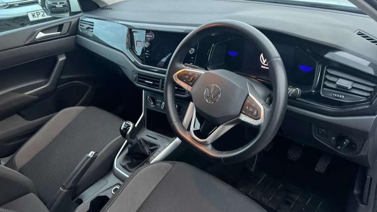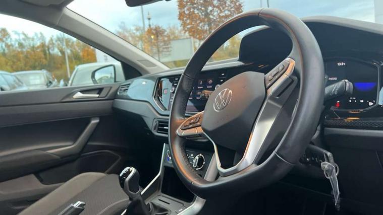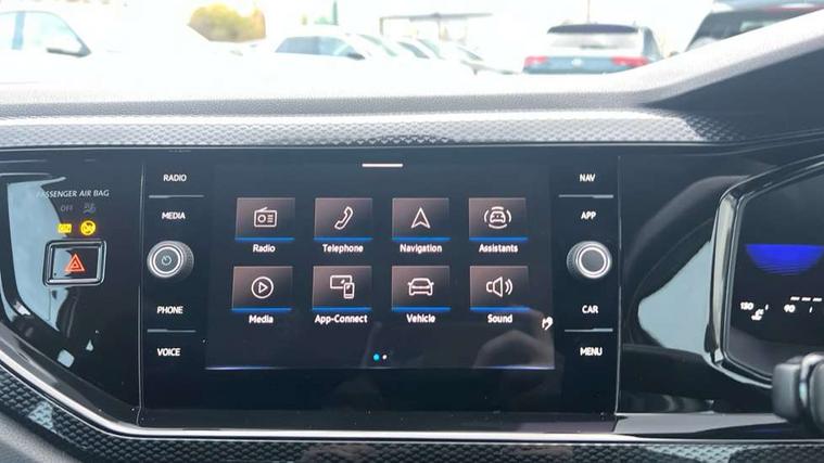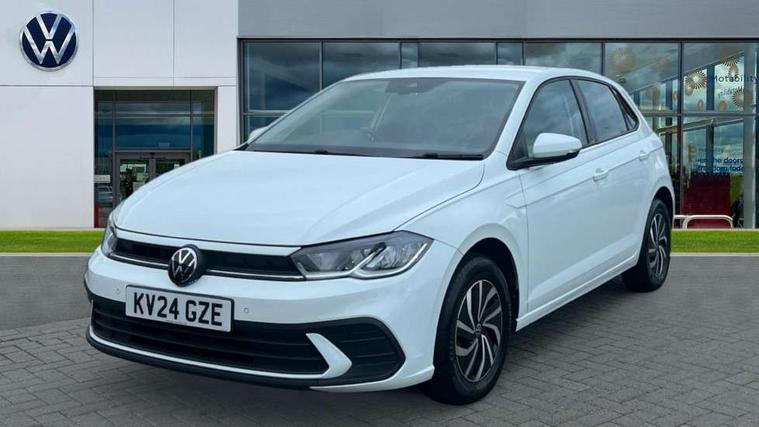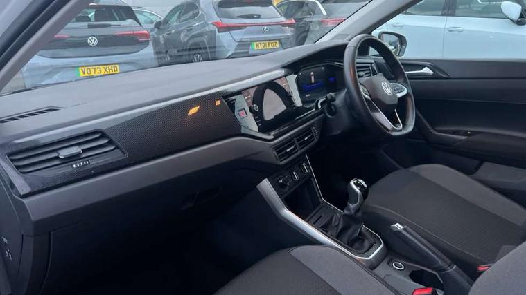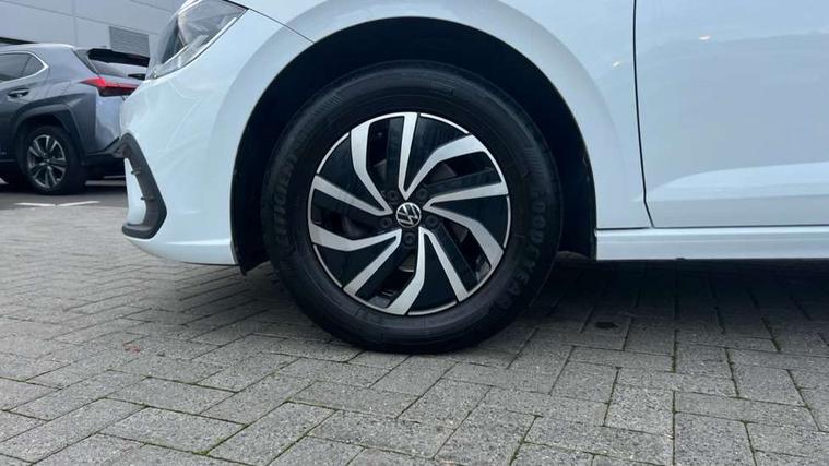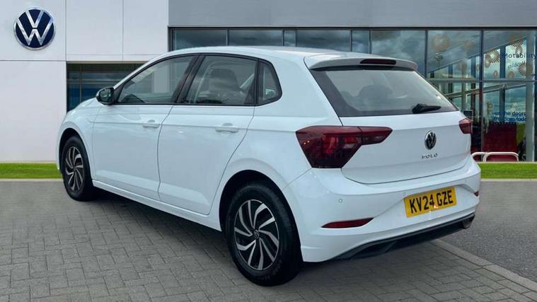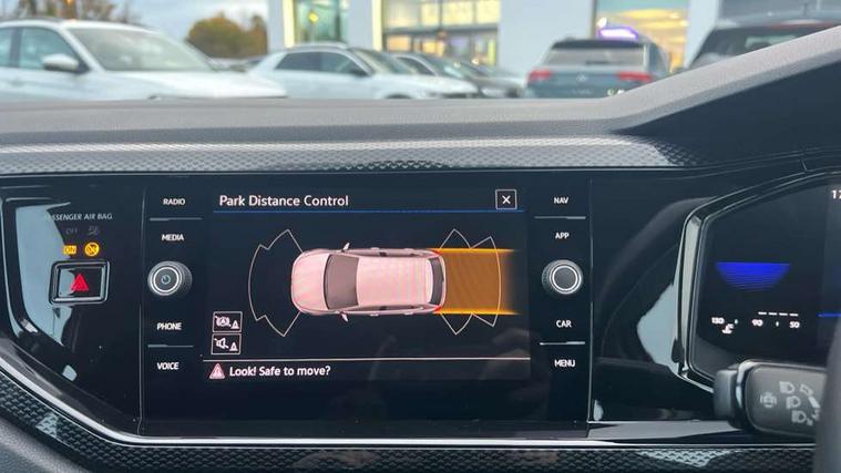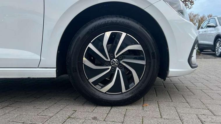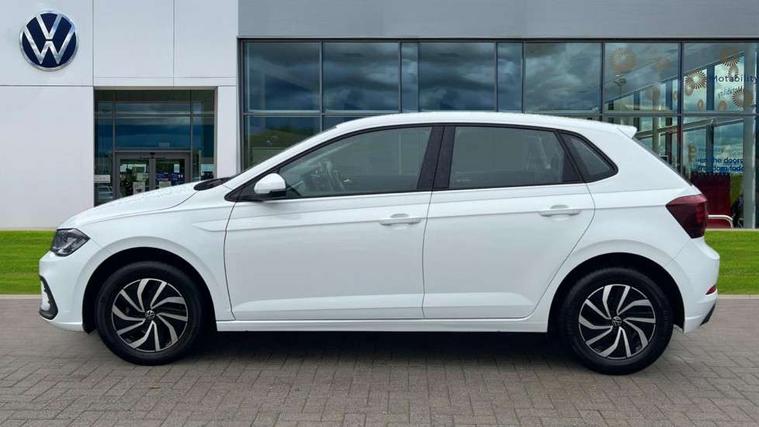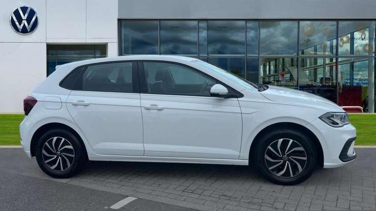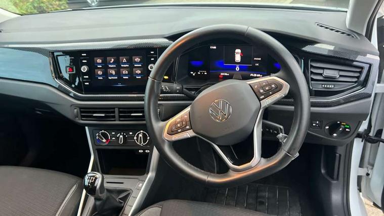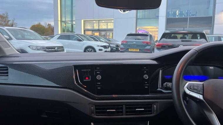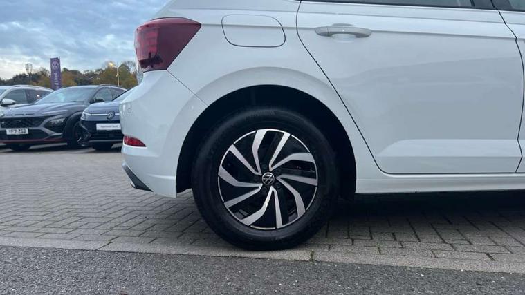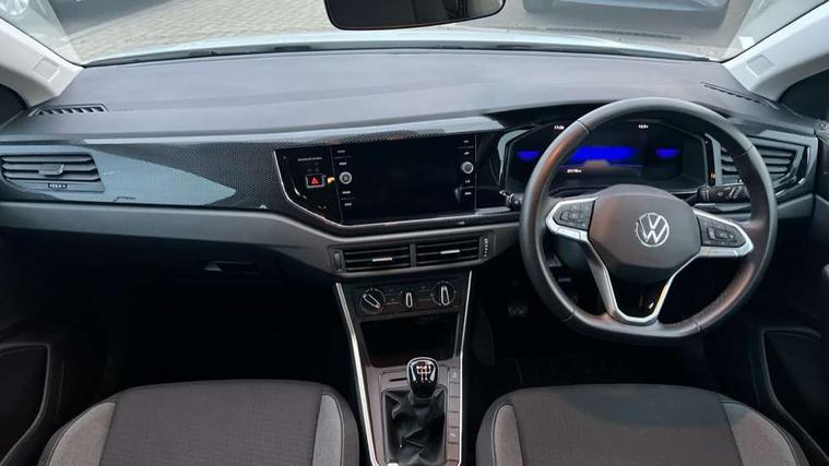 Adaptive cruise control without follow-to-stop and speed limiter, Advanced driver attention and drowsiness monitor, Bluetooth mobile phone interface, Dynamic road sign display, Emergency call service, Power assisted speed sensitive steering, Preparation for navigation system with media and internet package, Preparation for We connect and We connect plus, Speedo and rev counter, electronic odometer, trip, service interval display and exterior temperature gauge, Standard rear axle, Travel Assist - Lane keeping system and traffic jam assist, Travel assist including emergency assist, Trip computer, Warning signal and warning light for front and rear seatbelts not fastened, Washer fluid level indicator, Wireless app connect, Front wheel drive, Rear shock absorpion, Start-stop system with battery regeneration (recuperation - energy recovery during braking), DAB Digital radio, Diversity antenna for FM reception, Front and rear 6 speakers, Automatic dimming interior rear view mirror, Automatic headlight control with LED separate daytime running lights with coming/leaving home function, Body colour bumpers with chrome inserts, Body colour door handles, Body colour door mirrors, Electric front windows, Engine badge deletion, Headlight range adjustment, Heat insulating and laminated safety glass windshield, Heat insulating darkened glass in side and rear windows, Heat insulating glass windscreen, LED Headlights, LED rear combination lamps, Power folding adjustable/heated exterior mirrors and front passenger exterior mirror lowering function, Rain sensor, Rear electric windows, Rear fog light, Rear side wing doors, Rear windscreen washer and wiper with interval delay, Third brake light, 12V power socket in centre console, 2 front and 2 rear reading lights with switch off delay and dimmer, 2 USB-C ports in the front, 2 USB-C charging sockets on the center console in the rear, 3 rear head restraints, 60/40 split folding rear seat and rear seat bench not split, Ceramique roof lining, Chrome plated radiator grille inserts, air vent surrounds and light switch surrounds, Door and side trim panel, Driver and front passenger seat height adjustment, Driver/passenger sunvisors with illuminated vanity mirrors, Front centre armrest, Front seat backrest storage pockets, Front standard seats, Handbrake lever handle in leather, Hartley/Thomas cloth upholstery, Headliner in recycled material, Isofix child seat preparation easy-fit (for two outer rear seats, and front passenger seat) compatible with I-size, Leather trimmed gear knob, Luggage compartment cover, Luggage compartment lighting, Removable luggage compartment floor, Single front passenger seat, Standard climatic zones, Standard pedal cluster, Three spoke leather wrapped multifunction steering wheel, Light and vision pack - Polo, 3 point height adj front seatbelts + pretensioners, 3x3 point rear seatbelts, ABS, Driver and front passenger airbag with front passenger airbag deactivation, Drivers and front passengers safety optimised head restraints, ESC (Electronic stability control) + EDL (Electronic Differntial lock) and ASR (Traction control), Extended and predictive pedestrian/ cyclist protection, Front assist with autonomous emergency braking (for Adaptive Cruise Control ACC up to 130 mph), Front curtain and side airbags with center airbag, Front disc brakes, Hill hold control, Manual child lock in rear doors, Rear drum brakes, Single tone horn, Tyre pressure loss indicator, Alarm with interior protection, Anti-theft alarm system with interior monitoring, backup horn, and towing protection, Anti-theft wheel bolts, Electronic engine immobiliser, Lava stone black gloss/matt decorative inserts in dash and front door panels, Low rolling resistance tyres,