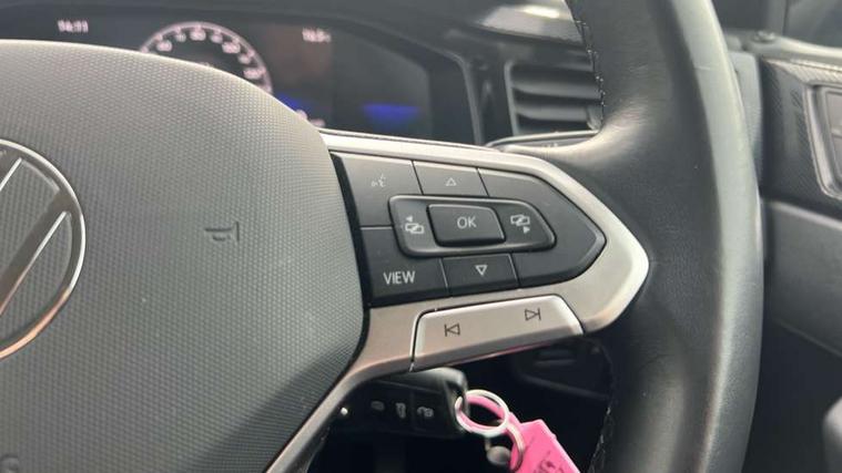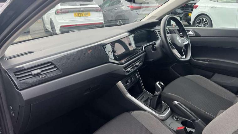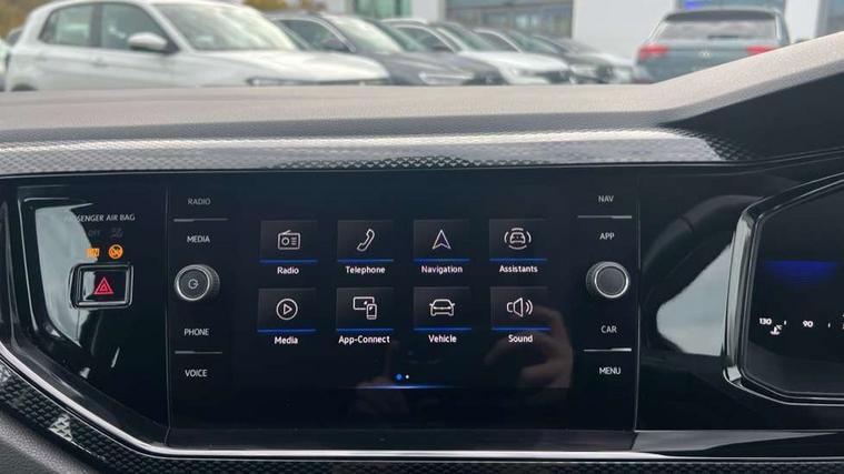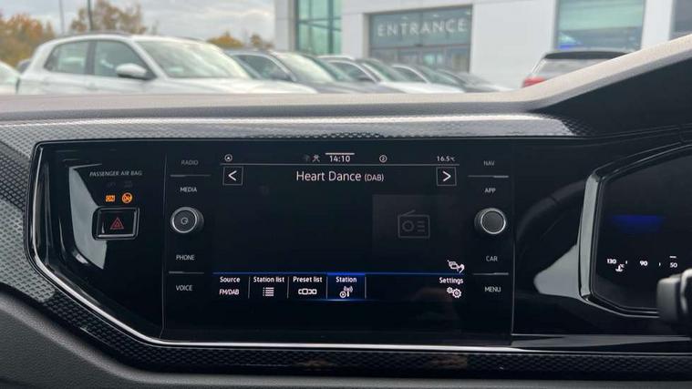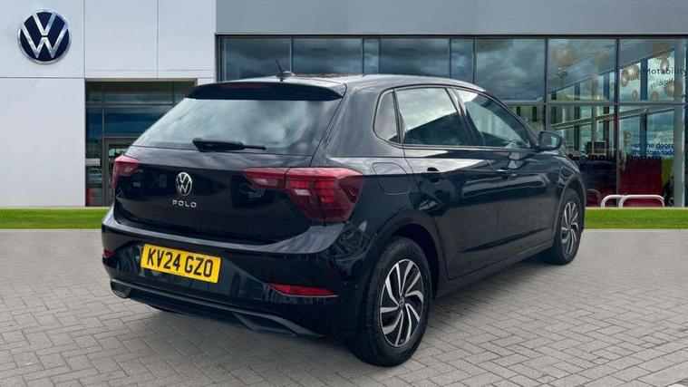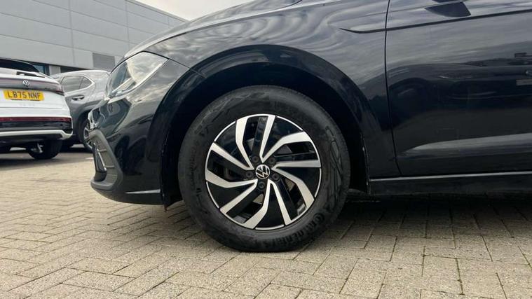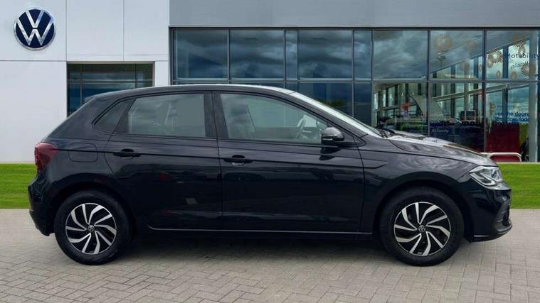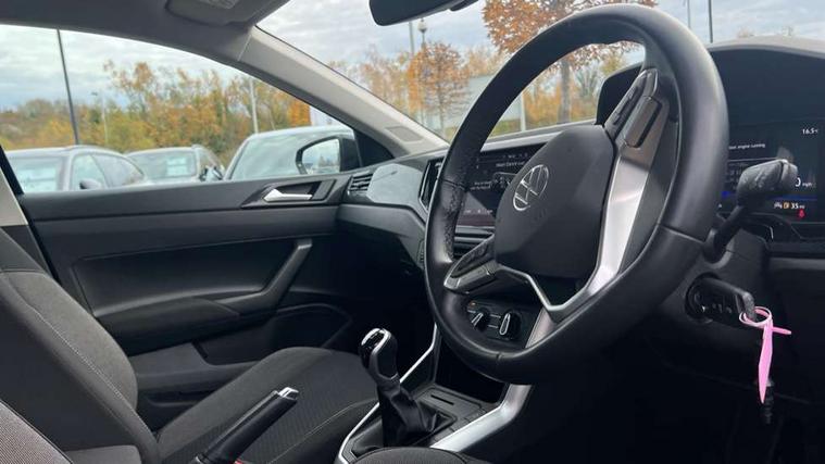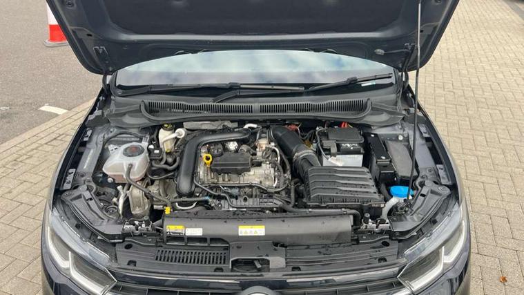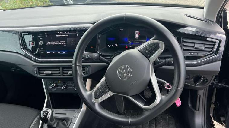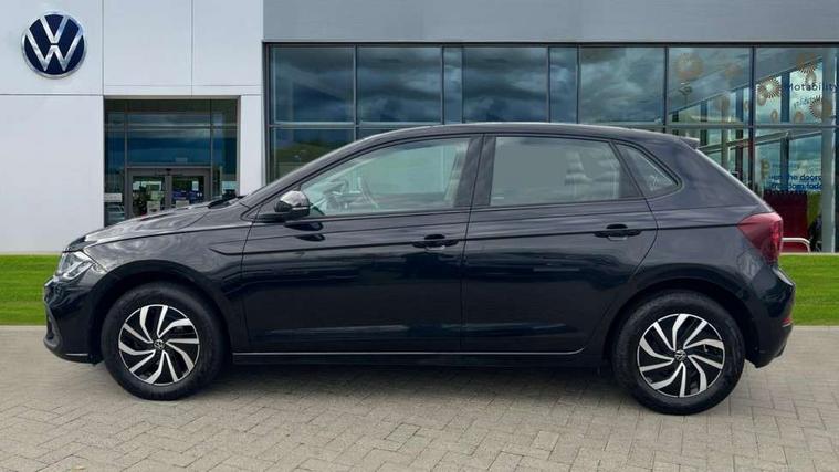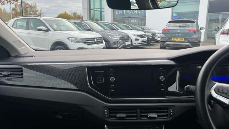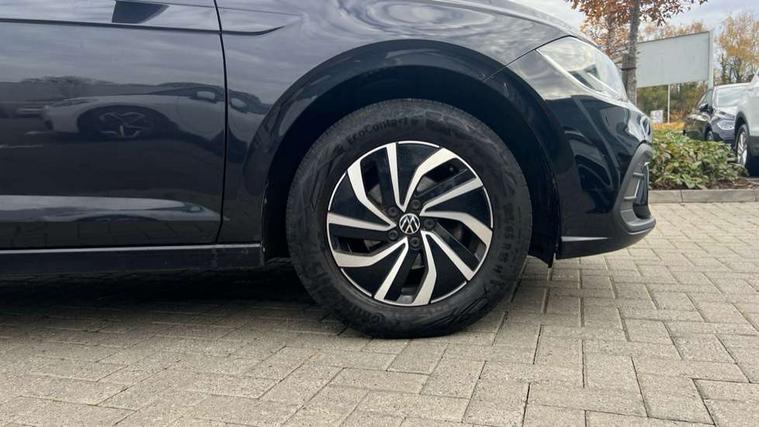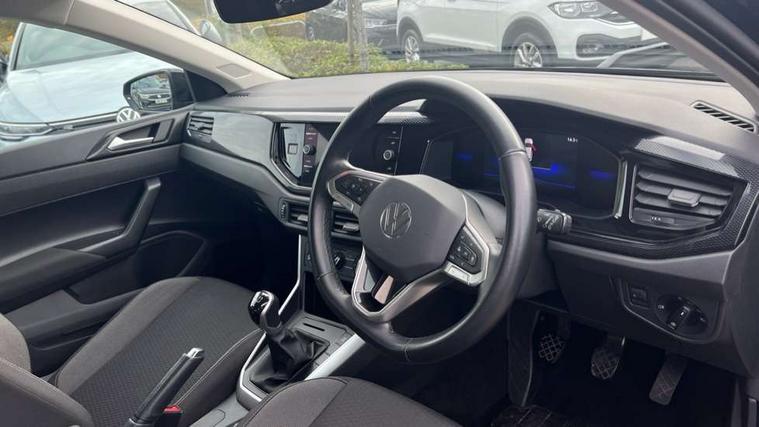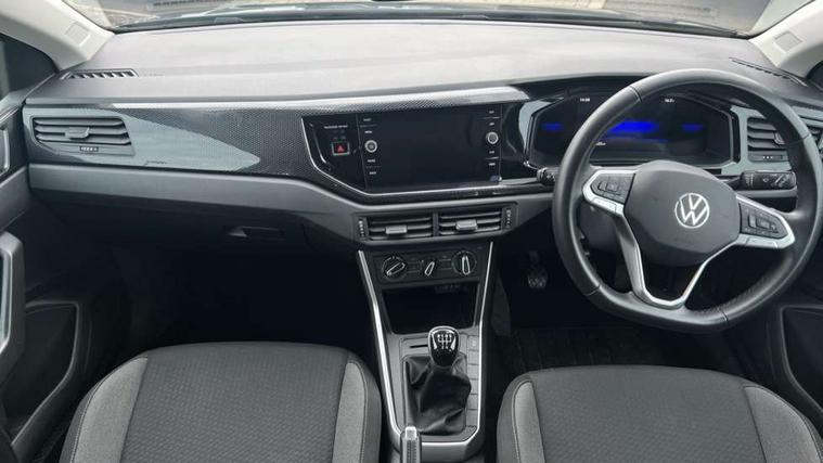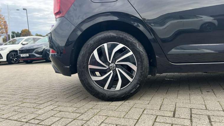 Adaptive cruise control without follow-to-stop and speed limiter, Advanced driver attention and drowsiness monitor, Bluetooth mobile phone interface, Dynamic road sign display, Emergency call service, Power assisted speed sensitive steering, Preparation for navigation system with media and internet package, Preparation for We connect and We connect plus, Speedo and rev counter, electronic odometer, trip, service interval display and exterior temperature gauge, Standard rear axle, Travel Assist - Lane keeping system and traffic jam assist, Travel assist including emergency assist, Trip computer, Warning signal and warning light for front and rear seatbelts not fastened, Washer fluid level indicator, Wireless app connect, Front wheel drive, Rear shock absorpion, Start-stop system with battery regeneration (recuperation - energy recovery during braking), DAB Digital radio, Diversity antenna for FM reception, Front and rear 6 speakers, Automatic dimming interior rear view mirror, Automatic headlight control with LED separate daytime running lights with coming/leaving home function, Body colour bumpers with chrome inserts, Body colour door handles, Body colour door mirrors, Electric front windows, Engine badge deletion, Headlight range adjustment, Heat insulating and laminated safety glass windshield, Heat insulating darkened glass in side and rear windows, Heat insulating glass windscreen, LED Headlights, LED rear combination lamps, Power folding adjustable/heated exterior mirrors and front passenger exterior mirror lowering function, Rain sensor, Rear electric windows, Rear fog light, Rear side wing doors, Rear windscreen washer and wiper with interval delay, Third brake light, 12V power socket in centre console, 2 front and 2 rear reading lights with switch off delay and dimmer, 2 USB-C ports in the front, 2 USB-C charging sockets on the center console in the rear, 3 rear head restraints, 60/40 split folding rear seat and rear seat bench not split, Ceramique roof lining, Chrome plated radiator grille inserts, air vent surrounds and light switch surrounds, Door and side trim panel, Driver and front passenger seat height adjustment, Driver/passenger sunvisors with illuminated vanity mirrors, Front centre armrest, Front seat backrest storage pockets, Front standard seats, Handbrake lever handle in leather, Hartley/Thomas cloth upholstery, Headliner in recycled material, Isofix child seat preparation easy-fit (for two outer rear seats, and front passenger seat) compatible with I-size, Leather trimmed gear knob, Luggage compartment cover, Luggage compartment lighting, Removable luggage compartment floor, Single front passenger seat, Standard climatic zones, Standard pedal cluster, Three spoke leather wrapped multifunction steering wheel, Light and vision pack - Polo, 3 point height adj front seatbelts + pretensioners, 3x3 point rear seatbelts, ABS, Driver and front passenger airbag with front passenger airbag deactivation, Drivers and front passengers safety optimised head restraints, ESC (Electronic stability control) + EDL (Electronic Differntial lock) and ASR (Traction control), Extended and predictive pedestrian/ cyclist protection, Front assist with autonomous emergency braking (for Adaptive Cruise Control ACC up to 130 mph), Front curtain and side airbags with center airbag, Front disc brakes, Hill hold control, Manual child lock in rear doors, Rear drum brakes, Single tone horn, Tyre pressure loss indicator, Alarm with interior protection, Anti-theft alarm system with interior monitoring, backup horn, and towing protection, Anti-theft wheel bolts, Electronic engine immobiliser, Lava stone black gloss/matt decorative inserts in dash and front door panels, Low rolling resistance tyres,