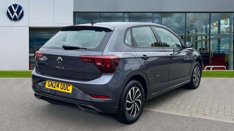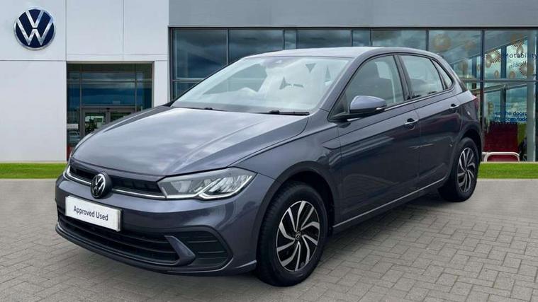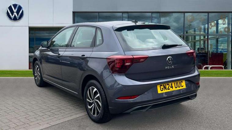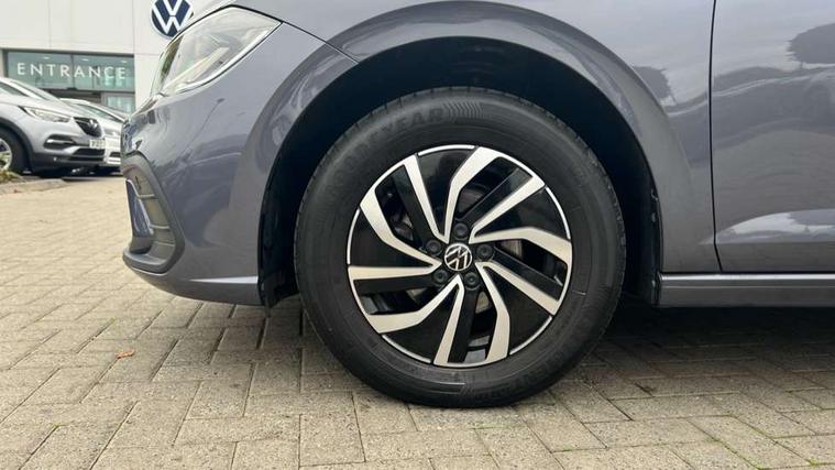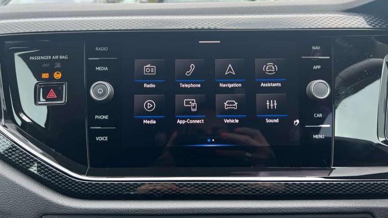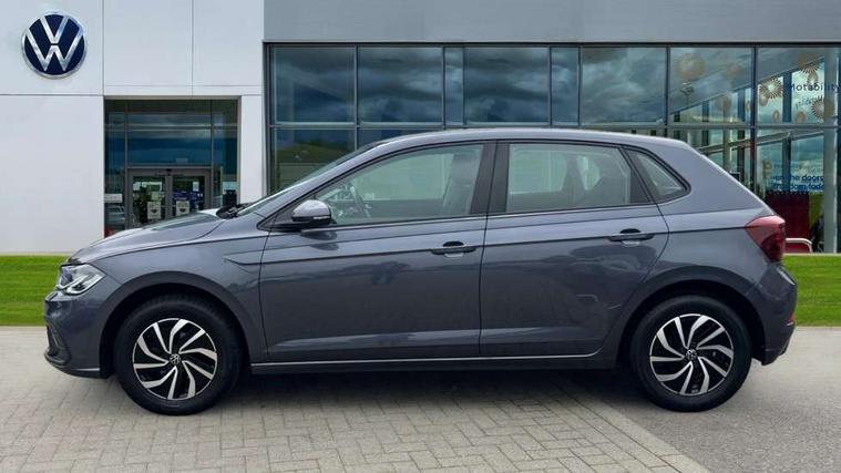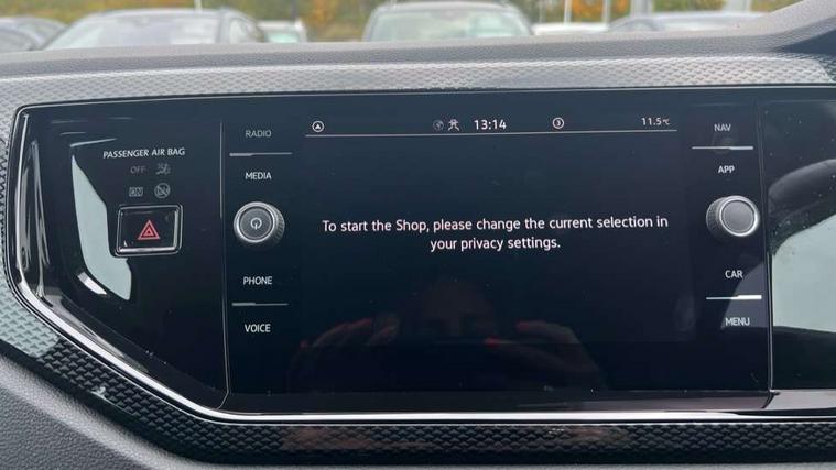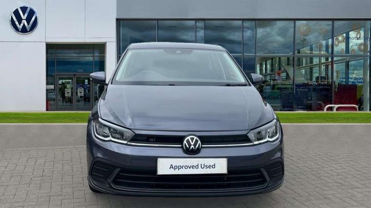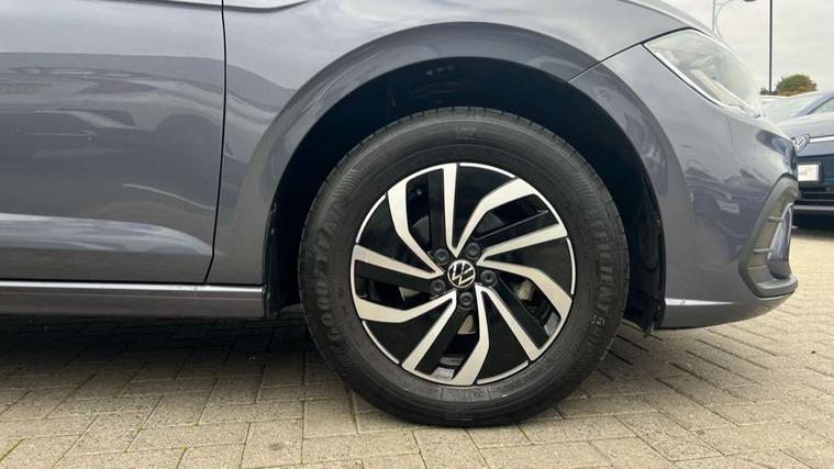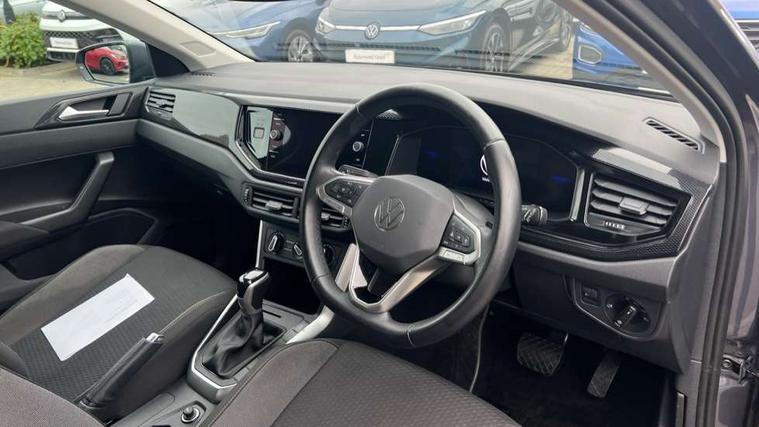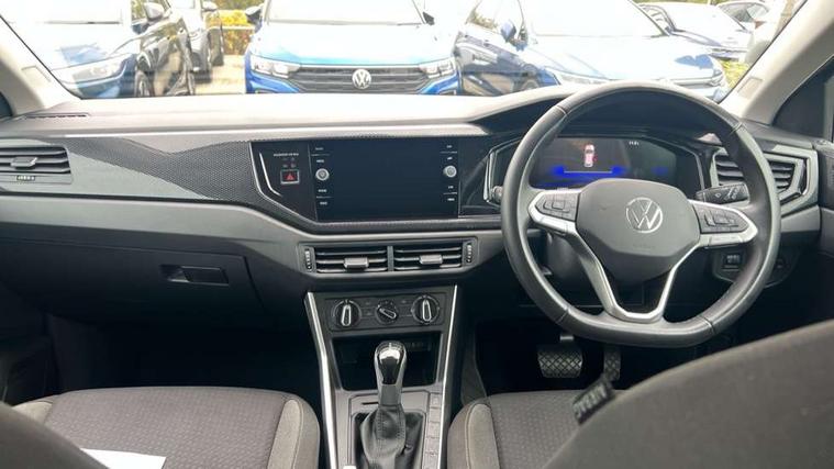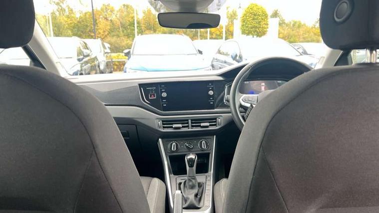 Adaptive cruise control with follow-to-stop and speed limiter, Advanced driver attention and drowsiness monitor, Bluetooth mobile phone interface, Dynamic road sign display, Emergency call service, Power assisted speed sensitive steering, Preparation for navigation system with media and internet package, Preparation for We connect and We connect plus, Speedo and rev counter, electronic odometer, trip, service interval display and exterior temperature gauge, Standard rear axle, Travel Assist - Lane keeping system and traffic jam assist, Travel assist including emergency assist, Trip computer, Warning signal and warning light for front and rear seatbelts not fastened, Washer fluid level indicator, Wireless app connect, Front wheel drive, Rear shock absorpion, Start-stop system with battery regeneration (recuperation - energy recovery during braking), DAB Digital radio, Diversity antenna for FM reception, Automatic dimming interior rear view mirror, Automatic headlight control with LED separate daytime running lights with coming/leaving home function, Body colour bumpers with chrome inserts, Body colour door handles, Body colour door mirrors, Electric front windows, Engine badge deletion, Headlight range adjustment, Heat insulating and laminated safety glass windshield, Heat insulating darkened glass in side and rear windows, Heat insulating glass windscreen, LED Headlights, LED rear combination lamps, Power folding adjustable/heated exterior mirrors and front passenger exterior mirror lowering function, Rain sensor, Rear electric windows, Rear fog light, Rear side wing doors, Rear windscreen washer and wiper with interval delay, Third brake light, 12V power socket in centre console, 2 front and 2 rear reading lights with switch off delay and dimmer, 2 USB-C ports in the front, 2 USB-C charging sockets on the center console in the rear, 3 rear head restraints, 60/40 split folding rear seat and rear seat bench not split, Ceramique roof lining, Chrome plated radiator grille inserts, air vent surrounds and light switch surrounds, Door and side trim panel, Driver and front passenger seat height adjustment, Driver/passenger sunvisors with illuminated vanity mirrors, Front centre armrest, Front seat backrest storage pockets, Front standard seats, Handbrake lever handle in leather, Hartley/Thomas cloth upholstery, Headliner in recycled material, Isofix child seat preparation easy-fit (for two outer rear seats, and front passenger seat) compatible with I-size, Leather trimmed gear knob, Luggage compartment cover, Luggage compartment lighting, Removable luggage compartment floor, Single front passenger seat, Standard climatic zones, Standard pedal cluster, Three spoke leather wrapped multifunction steering wheel with shifting paddles, Light and vision pack - Polo, 3 point height adj front seatbelts + pretensioners, 3x3 point rear seatbelts, ABS, Driver and front passenger airbag with front passenger airbag deactivation, Drivers and front passengers safety optimised head restraints, ESC (Electronic stability control) + EDL (Electronic Differntial lock) and ASR (Traction control), Extended and predictive pedestrian/ cyclist protection, Front assist with autonomous emergency braking (for Adaptive Cruise Control ACC up to 130 mph), Front curtain and side airbags with center airbag, Front disc brakes, Hill hold control, Manual child lock in rear doors, Rear drum brakes, Single tone horn, Tyre pressure loss indicator, Alarm with interior protection, Anti-theft alarm system with interior monitoring, backup horn, and towing protection, Anti-theft wheel bolts, Electronic engine immobiliser, Lava stone black gloss/matt decorative inserts in dash and front door panels, Low rolling resistance tyres,