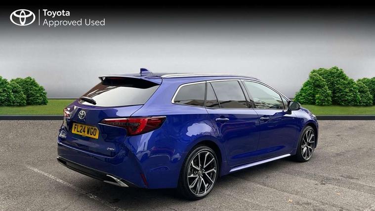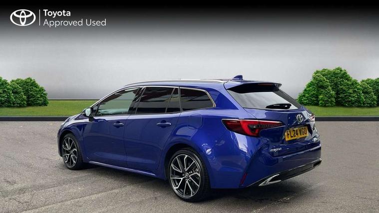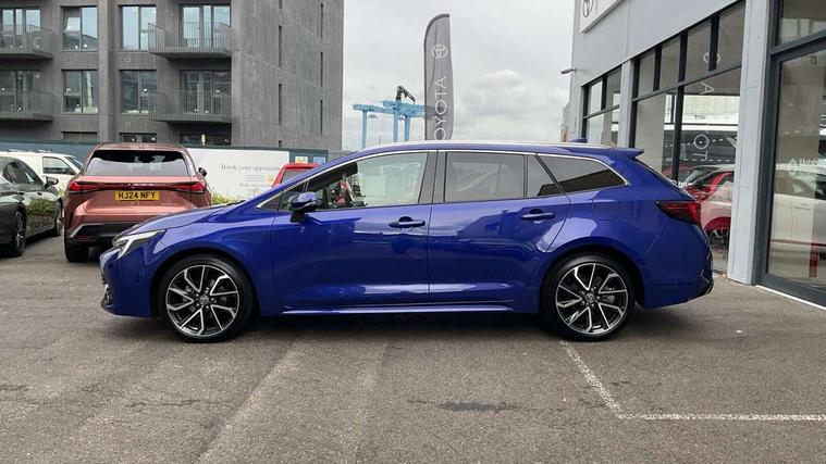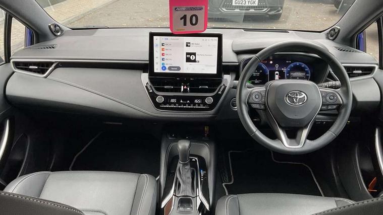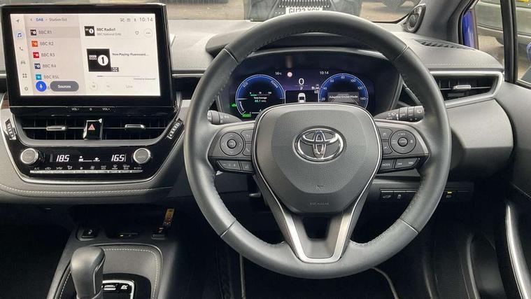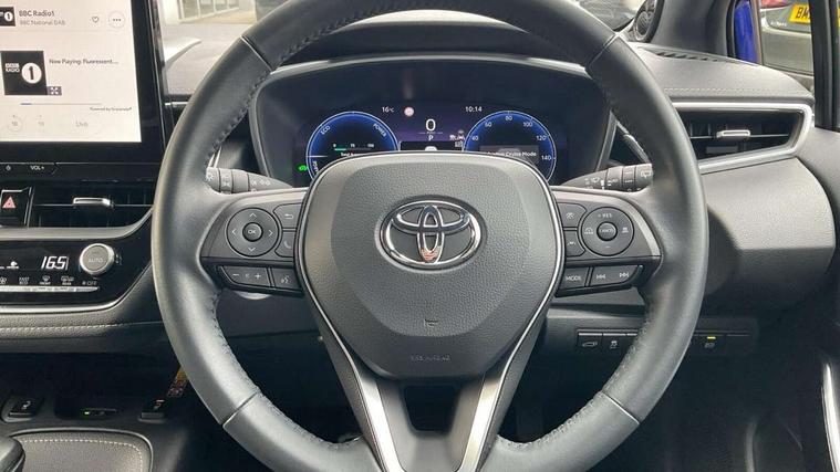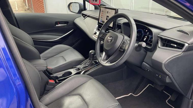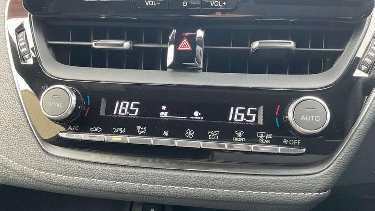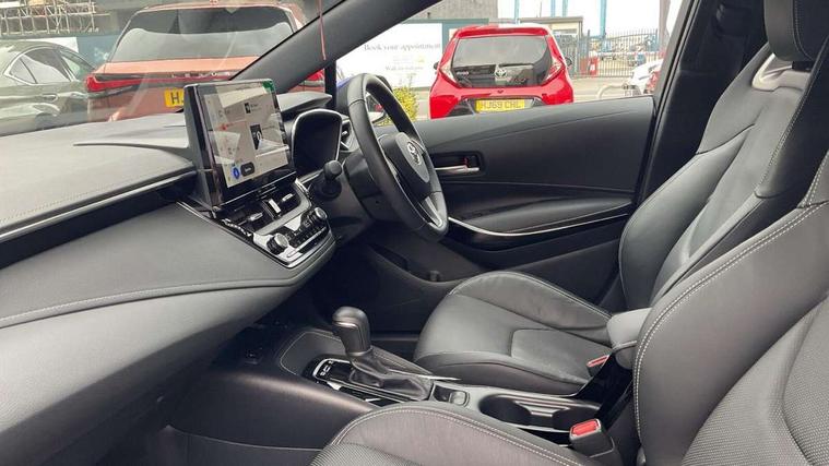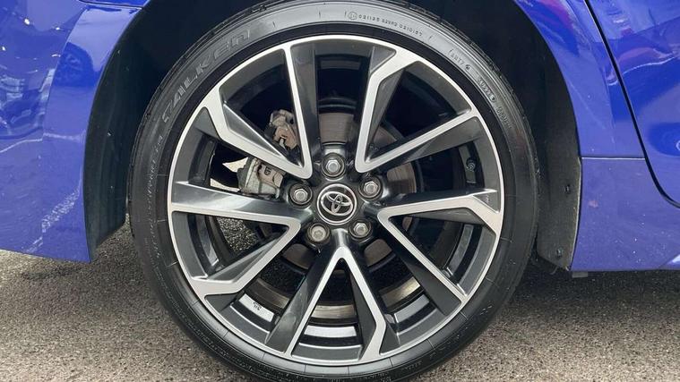 7" Multi information display screen, Bluetooth telephone connectivity, Connected car functionality upgrade, tracker, remote status and e-care, Door trim and centre console material, Dynamic radar cruise control (with RSA) including switch on steering wheel, E-call, Electrically assisted power steering, EV drive indicator, Intelligent park assist, Lane Departure Alert (LDA) switch on steering wheel, Memory on adjustable speed limiter, Push button start, Reversing camera, Smartphone integration with Apple CarPlay and Android auto, Gasoline particulate filter, Vehicle Stability Control (VSC), 6 speakers, 8" Touchscreen with MM19 Multimedia system and voice recognition, AM/FM radio, DAB Digital radio, Toyota touch 2 with go navigation system, USB and Aux in connectors + 12V front outlet, USB charging port in centre storage box, Aluminium roof rails, Anti-jam protection on power windows, Auto dimming inside rear view mirror, Auto up and down function on all power windows, Automatic folding mirrors, Automatic headlights with high beam assist, Black metallic surround on lower front grille, Black toyota logo in front, Body colour rear spoiler, Body coloured bumpers, Body coloured door mirrors, Body coloured outside door handles, Follow me home headlights, LED daytime running lights, LED front fog lights, LED Headlights, LED High mounted stop light, LED rear combi lights with LED lightguide, Noise reduction layer on front windows, Power adjustable heated door mirrors, Power front windows, Power rear windows, Privacy glass, Rain sensing wipers, Rear window defogger, Rear window wiper, Reverse tilting door mirrors, Shark fin antenna, Time adjustment on intermittent wiper, Turning signal integrated indicators in door mirrors, Unique lower skirt, Unique side rocker with black insert, UV-filter on driver and passenger windows, 12v power outlet - luggage side, 3 rear headrests, 3 spoke leather steering wheel + gear knob, 60/40 split folding rear seat, Adjustable speed limiter switch on steering wheel, Audio, multimedia and telephone switches on steering wheel, Blue ambient interior illumination to centre tray, front cup holders and front door trim, Boot light, Boot underfloor storage, Clean air filter, Driver and front passenger personal light, Driver and passenger assist grip, Driver and passenger sun visor with mirror and light, Dual sided deck board in boot, Dual zone automatic air conditioning with ECO mode switch, Fabric/synthetic leather upholstery, Front and rear cup and bottle holders, Front and rear door pockets, Front head restraints, Heated driver and front passenger seats, Illuminated entry system in room lamp, ISOFIX seat fixing (2 fixings on rear outer seats), Leather gear shift with satin chrome on gear shift console, Leather style armrests, Manual height adjustable for driver and front passenger seat, Passenger seat back pocket, Pollen filter, Power adjustable lumbar support on driver seat, Power window switches with satin chrome inserts, Rear armrest with 2 cupholders, Rear passenger air vents, Rear passenger coat hooks (2), Rear passenger personal lights, Retractable tonneau cover with luggage partition net, Satin chrome inside door handles, Shopping bag hooks in luggage compartment, Side storage in boot, Sliding armrest on centre console box, Slow opening glovebox with lights, Tilt/telescopic steering column, Tonneau cover with under floor storage, Voice recognition switch on steering wheel, Whiplash Injury Lessening (WIL) feature (active headrest) for seats, Parking pack - Corolla, Toyota safety sense 2 pack - Corolla, 3x3 point rear seatbelts, Adjustable driver and front passenger seat belt extender to top anchor point, Anti lock braking system + Electronic brake force distribution, Brake assist function, Downhill Assist Control (DAC), Electronic parking brake, Emergency brake light signal (EBS), Front passenger airbag on/off switch, Front seatbelt reminder, HAC - Hill start assist control, Rear seat belt reminder, Seatbelt pretensioners and force limiters, Supplemental restraint system (SRS) 7 airbags - dual driver, dual side curtain, side impact and driver knee airbags, Traction control, Tyre pressure warning system, Acoustic vehicle alert system (AVAS), Alarm with motion sensor and immobilizer, Remote central locking + deadlocks, Smart entry, Satin chrome dash trim, Soft touch texture on upper dashboard, Stitching on lower dashboard, Tyre repair kit, Unique wheel finish with red wheel cap,