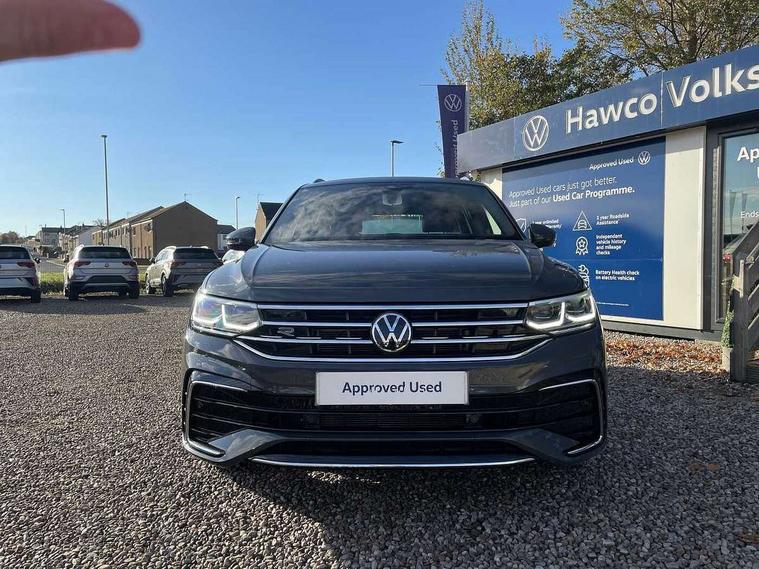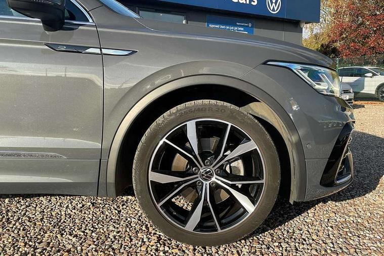 Adaptive cruise control ACC stop and go including speed limiter, App-Connect incl. App-Connect Wireless for Apple CarPlay and Android Auto, Bluetooth phone integration system, Distance control assist, Driver alert system, Driver profile selection, Dynamic road sign display, eCall emergency call system, Electromechanical speed sensitive power steering, Engine start/stop button, Lane keeping system Lane Assist, Lights on warning, Multifunction front facing camera, Outside temperature display, Premium multifunction display with multi colour display, Remote control boot opening, Rev counter, Revision / skills operating concept travel assistant, Service interval indicator, Speed limit display, Start/stop system with regenerative braking, Trip computer, Warning sound and light for doors and tailgate open, All wheel drive - 4Motion, Battery regeneration during braking, XDS electronic differential lock for improved traction and handling, 4 X 20 watt output, 8 speakers, Diversity antenna for FM reception, Radio, SD card slot, Simultaneous pairing of 2 compatible mobile devices, SMS functionality - read, compose and send SMS messages using touch-screen display, Title and cover art display, USB C ports, Auto dimming interior rear view mirror, Automatic headlight control system, Body colour door handles, Chrome moldings on the side windows, Coming/leaving home lighting function, Dynamic headlight range control, Front and rear electric windows, Heated rear window, High level 3rd brake light, Laminated safety glass windshield, heat and sound insulating, LED headlamps with LED separate daytime running light and dynamic cornering light, LED rear combination lamps, LED rear number plate lights, License plate carrier in front and rear, Poor weather light and cornering light, R Line body kit, R Line side sills, Rain sensor windscreen wipers, Rear exhaust tailpipe, Rear fog lamp, Rear side wing doors, Rear spoiler in R style, Rear windscreen washer and wiper with interval delay, Side and rear windows in heat insulating glass, Trailer Stability Programme, Unique R Line badging, Windscreen wipers/ intermittent wipe + 4 position delay, 12V outlet in center console rear and in luggage compartment, 12V outlet in front and tray, 2 cup holders in front, 2 LED front reading lights, 2 LED rear reading lights, 3 bench rear seats in 2nd row, 3 rear headrests, 4 load lashing points, 40:20:40 split folding rear seats, Air Care Climatronic 3 zone automatic climate control with enhanced air filter and controls in the rear, Backrest release for left front seat, Black headlining, Brushed stainless steel pedals and footrest, Carpet mats in front and rear with decorative stitching in Gray, Climate control unit rear with touch function, Door and side trim panel in foam film, insert in leatherette, Front centre armrest, Front footwell illumination, Front seats head restraints (x-adjustment), Height adjustable front seats, Height/reach adjust steering wheel, Instrument lighting white adjustable panel illumination, Interior light with delay, Isofix Preparation 2 Rear child seats, Leather gear knob, Lockable cooled glovebox, Luggage compartment lighting, Luggage net, Rear bench seat asymetrically split folding, longitudinally movable and folding with load-through hatch and center armrest, Remote unlocking for rear seat backrest, Removable luggage cover, Removable rear headrests, Safety optimised front head restraints, Single front passenger seat, Sliding/reclining rear seats, Standard rear seat release, Storage compartment in driver's door, Storage compartment in passenger's door, Storage compartment in rear doors, Storage compartments in luggage area left and right, Storage tray on dashboard, Sun visors with illuminated vanity mirrors, Tool kit, Top front comfort seats, Variable boot floor, height adjustable and removable, Driver assistance pack plus - Tiguan DSG, 3 point seat belt for centre rear seats, 3 point seat belts with seat belt pretensioners for the outer rear seats, Active bonnet, Curtain airbags for front and rear passengers, Driver/Front Passenger airbags, Drivers knee airbag, Electronic parking brake with auto hold, Electronic Stability Control with driver steering recommendation, ABS, ASR, EDL, EDTC and trailer stabilization, Front assist with autonomous emergency braking (for Adaptive Cruise Control ACC up to 130 mph), Front disc brakes, Front passenger airbag deactivation, Front side airbags, Height adjustable front 3 point seatbelts + pretensioners, Hill hold control, Manual child proof rear door locks, Pedestrian monitoring system, Power assisted brakes, Proactive passenger protection system in combination with front assist, Rear disc brakes, Rigid safety cell with front and rear crumple zones, Two tone horn, Warning sound and light for front seat belts if unfastened, Anti theft alarm system with interior monitoring, backup horn and towing protection, Anti theft wheel bolts, Electronic engine immobiliser,