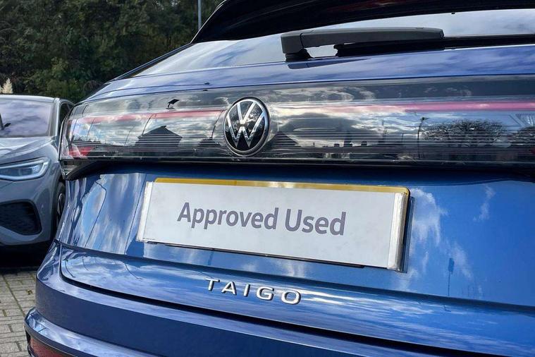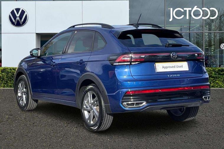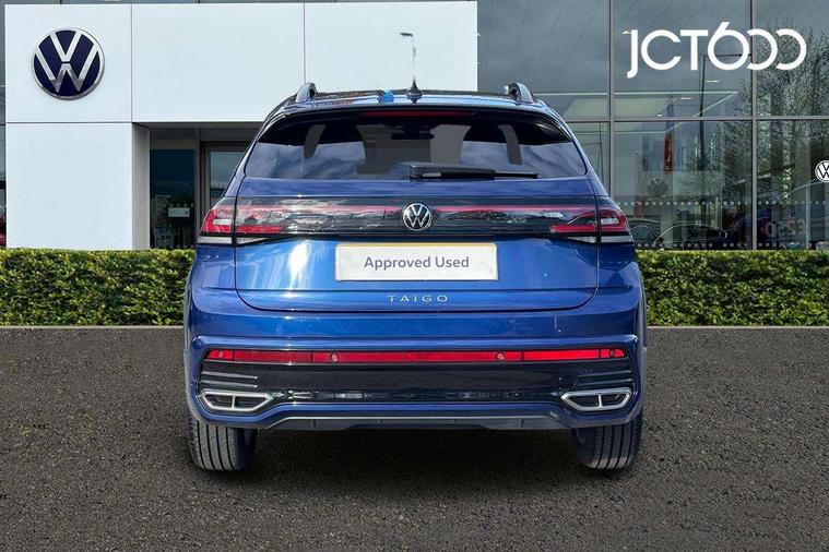 Adaptive cruise control, Advanced driver attention and drowsiness monitor, App-Connect including App-Connect Wireless, Digital cockpit pro - 10.25" high resolution TFT dash display screen with customizable menus and information, Driving profile selection, e-Call (emergency call), Power Steering, Travel assist including emergency assist, Washer fluid level indicator, Wireless Charging including Bluetooth, Start-stop system with battery regeneration (recuperation - energy recovery during braking), XDS electronic differential lock for improved traction and handling, Digital radio reception (DAB+), Diversity antenna for FM reception, WeConnect plus, Ambient lighting with logo projection, Aspherical driver's exterior mirror, Auto headlights, Body coloured bumpers, Bumpers in R-Line style, Electric windows, External USB type C socket and charging sockets, Front scuff plates with R-Line logo, LED rear combination lamp, LED third brake light, Left convex exterior mirror, Power folding adjustable/heated exterior mirrors and front passenger exterior mirror lowering function, Rear fog light on one side, reversing light on both sides, Rear side wing doors, Rear wash/wipe with intermittent wipe setting, 12V socket in centre console, 2 front reading lights, 3 rear head restraints, 3 seat bench in 2nd row, Air care climatronic air conditoning system with active combination filter and 2-zone temperature control, Black carpets, Black roof lining, Child seat anchor for child seat system i-Size, 2x top tether and child seat anchor in front on front passenger side, Chrome bezel for instrument cluster, vents, door handles + gear shift, Driver and front passenger seat height adjustment, Front + rear carpet mats, Front centre armrest, Front footwell illumination, Front sports comfort seats, Height and reach adjustable steering wheel, Interior ambient lighting and surround lighting, Karoso artvelours cloth upholstery, Leather trimmed gear knob, Leather wrapped multifunction steering wheel, Luggage compartment floor, Luggage compartment light, Lumbar support for driver's and front passengers seat, Seat covers in grey + titanium black, Single front passenger seat, Split folding backrest with centre armrest and unsplit rear seat bench, Stainless steel pedals, Storage compartment under front seats, Sun visors with illuminated vanity mirrors, Chrome Package - Taigo, Drivers assistance pack - Taigo, Light and Sight pack including High beam assist - Taigo, 2 x 3-point seatbelts/outer rear seats with ECE label, 3-point seat belts in front with pretensioner and height adjustment, 3-point seatbelt for centre rear seat, Adaptive driver and front passenger airbags with passenger airbag deactivation function, Driver and front passenger safety-optimised head restraints, Electronic stability control, Extended and predictive pedestrian/ cyclist protection, Front and rear disc brakes, Front curtain and side airbags with center airbag, Hill start assist, Manual rear child locks, Single tone horn, Tyre pressure loss indicator, Anti-theft alarm system with interior monitoring, backup horn, and towing protection, Anti-theft wheel bolts, Grey anodised matte decorative inserts in dash and front door panels, Low rolling resistance tyres,