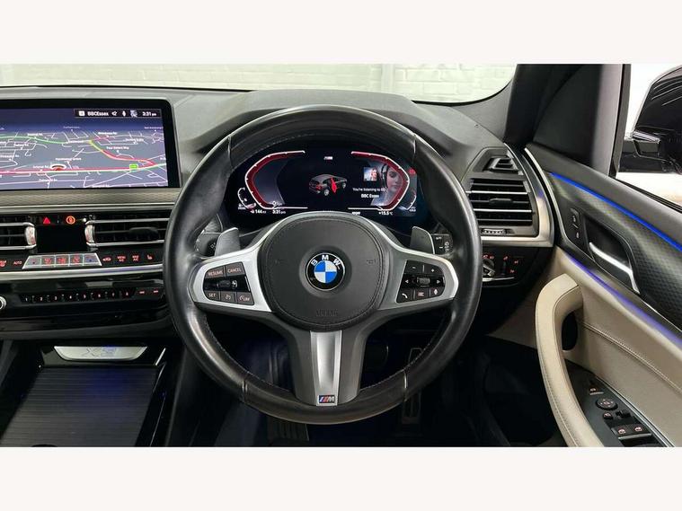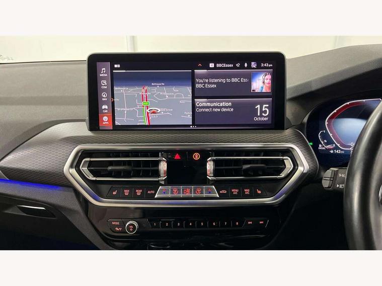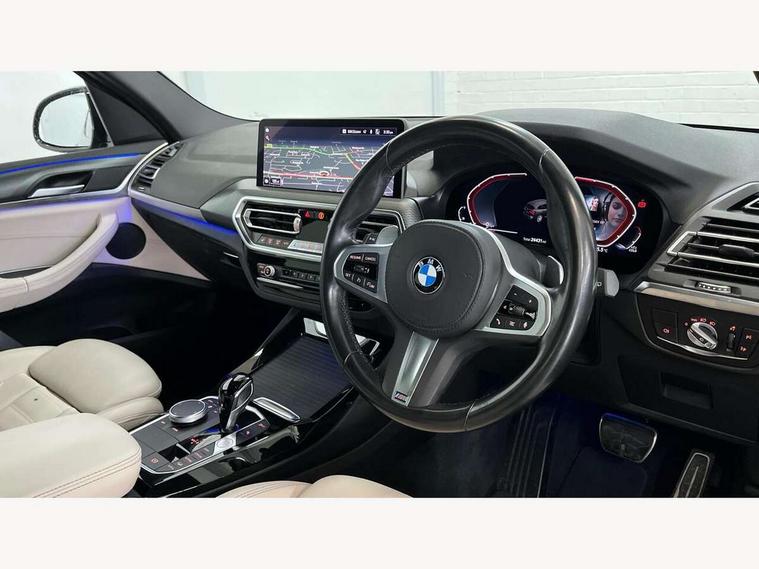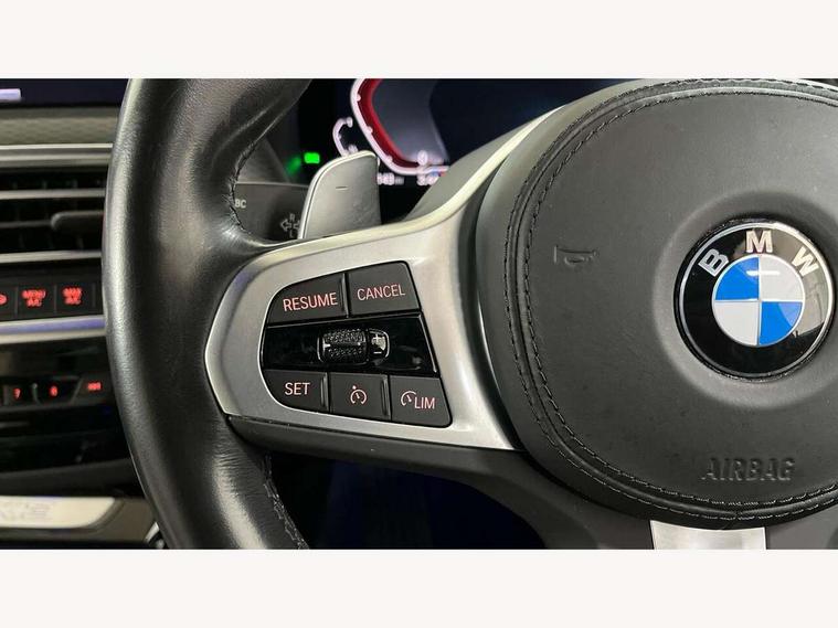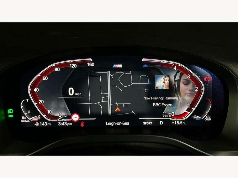 Active Guard, Attentiveness assist, BMW Live Cockpit Professional nav system including 12.3" instrument display + 12.3 high resolution control display, BMW Online services, BMW Teleservices, Brake pad wear indicator in front and rear, Check Control warning system for monitoring of lights and door/luggage compartment open warning, Condition based service - BMW service history, electronic service booklet, integrated owner's handbook, Connected drive services, Cruise control with brake function + speed limiter, Electric boot lid, Front/rear Parking distance control, iDrive touch controller with 8 favourite buttons, Instrument cluster with speedometer with mph readout, tachometer, fuel gauge and oil temperature gauge, Lights on warning by audio warning signal when ignition is switched off, Oil sensor for level and grade, warning by check control system, On board computer - average speed+fuel consumption, service interval, clock/date, odometer/trip meter, outside temperature display and ice warning, Optimum shift indicator, Personal Profile - automatic lock when driving away selectable, Run flat indicator, Stop/start system, Variable sports power steering with drive performance control Sport+ mode, Automatic transmission with gearshift paddles, Diesel particulate filter, Incorrect fuelling protection, Larger capacity fuel tank, M sport suspension, Multi-link rear suspension, Performance Control, BMW professional radio/CD/MP3, DAB tuner, Acoustic glazing, Automatic windscreen wipers and automatic headlight, Black finish on B pillars, Body colour door handles, Body colour electric adjust heated aspherical door mirrors, Body colour roof mouldings, Body coloured bumpers, Direction indicator, side repeaters, integrated in exterior mirrors, Dynamic brake lights, Exhaust tailpipes - dual, round, split left and right with chrome finisher, Fingertip control / anti-trap function on electric window, Folding wing mirrors with auto dimming, Follow me home headlights, Front and rear bumper system with replaceable deformation elements, Front and rear electric windows, Gloss chrome tailpipes finishers, Green tinted heat insulating glass, Heated windscreen washer jets, High beam assistant, High gloss black shadow line roof rails, High gloss shadowline exterior trim in decorative moulding side frame/recess cover/guide rail/B, C pillars/mirror frame and triangle with mirror base, High level 3rd brake light incorporating LED Technology, Interior rear view electrochromatic mirror with automatic anti dazzle function, LED tail lights, Lightweight engineering, M aerodynamic bodystyling, M Sport entry door sill strips, Model designation, Rain sensor, Rear side wing doors, Rear wing door, Rear wiper, Shark fin antenna, Side exterior M designation badges, Visible VIN plate, Welcome lighting, Windscreen wipers with adjustable interval, 12V power point in luggage area, 12V power socket in front centre console, 3 rear headrests, 3 seat bench in 2nd row, 3 zone automatic air conditioning, 4 lashing points to secure luggage, 40:20:40 split folding rear seat with loading system, Ambient lighting, Anthracite headlining, Automatic interior light when door is opened/ignition switched off or via remote key, Driver seat backrest width adjustment, Floor mats in velour, Foldable storage floor with compartment, Four grab handles integrated in roof lining, Front and rear bottle holders integrated into door trim storage compartments, Front and rear side armrests integrated into door trim, Front centre armrest with storage compartment, Front footwell lights, Front head restraints, Front passenger seat, Front sports seats, Front/rear courtesy lights with soft on/off dimming, Front/rear reading lights, Heated front seats, Isofix rear child seat preparation, Leather gear knob, Luggage area underfloor compartment, Luggage compartment lighting, M sport leather steering wheel, Multifunction steering wheel, Parcel shelf removeable and storable under boot floor, Reach and rake adjustable steering column, Rear centre armrest with 2 cupholders, Removable / retractable luggage cover, Slope adjustable rear seats, Storage compartment in rear centre console and front/rear door trims, Sun visors with vanity mirrors and ticket pocket, Toolkit located in luggage compartment, Two front cupholders with removable oddments tray/lid, Vernasca leather upholstery, Connected pro pack - X3, Driving assistant pack - X3, ADB - Automatic Differential Brake, Anti-lock braking system (ABS) with brake assist, Automatic Stability Control (ASC), Battery safety cut-off, BMW emergency call, Brake drying, Brake energy regeneration, Braking pre-tensioning, Child locks on rear doors, Cornering brake control (CBC), Crash Sensor - activation of central locking release, hazard warning light and interior lighting, Deactivation of fuel pump in the event of a crash, Driver and front passenger front and side airbags with passenger deactivation and ITS front and rear head airbags, Driver and front passenger knee airbag, DSC+, Dynamic brake control, Dynamic Traction Control - DTC, Electromechanical parking brake, Hill descent control, Hill start assist, Seatbelt security check for front seats, Side impact protection, Three point seatbelts to all seats with front and outer rear pyrotechnic belt tensioners and seat belt force limiters, Two tone horn, Tyre pressure sensor, Ventilated front and rear disc brakes, Warning triangle and first aid kit, Central locking switch for all doors, fuel filler cap and luggage compartment, Electronic engine immobiliser, Locking wheel nuts, Remote control including two integrated key - one button for open/close all lockable content, windows and separate button for open luggage compartment, Remote control Thatcham category 1 alarm, Start/stop button with Comfort Go keyless engine start and auto Start/stop deactivation button, Low rolling resistance tyres,