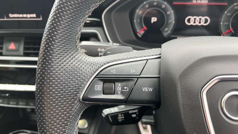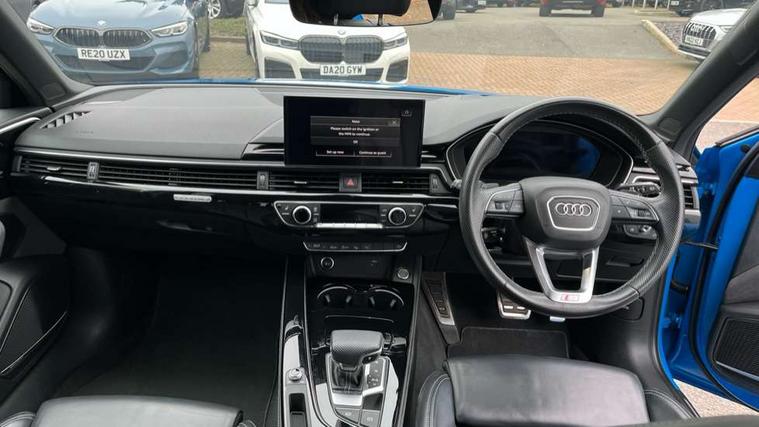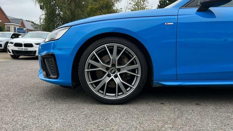 Audi connect safety and service (e-call), Audi drive select, Audi phone box with wireless charging, Audi smartphone interface, Audi virtual cockpit, Automatic start-stop system with coasting functionality and efficiency programme, Bluetooth interface, Electromechanical power steering, Head up Display, MMI Navigation plus with MMI touch includes 10.1" high resolution colour MMI display, 3D map, Park assist system, Power operated tailgate, Voice control system, 58 Litre fuel tank, Adaptive sport suspension with damping control, 2 USB charging ports, DAB digital radio reception, Audi beam uses LEDs to project the audi logo in front and Vorsprung in rear, Audi matrix LED headlights with LED rear lights + dynamic front and rear indicators, Auto dimming rear view mirror, Body colour door handles, Body colour front spoiler lip, Body colour side sill trim, Electrically folding auto dimming/adjustable/heated door mirrors with memory function, LED side indicators and kerb view function for passenger side, Grained matt black side air inlets with matt aluminium silver inlay, High beam assistant, Honeycomb structure radiator grille in grained matt black, Matt aluminium silver tailpipe trim, New design rear diffuser, Panoramic glass sunroof, Rain and light sensors, S Line roof edge spoiler, Windscreen with acoustic glazing, 3 spoke high multi-function sports leather steering wheel grips in perforated leather with S badging including paddle shift, 40/20/40 split folding 3 rear seat bench in 3 parts with rear centre armrest, Black cloth headlining, Black perforated leather gearknob, Contrast stitching on seats, steering wheel and gear lever gaiter, Deluxe 3 zone electronic climate control, Door sill trims with aluminium inlay, Electric load area cover, Electrically adjustable front seats with memory function for driver's side, Fine Nappa leather upholstery with front sports seats S embossed logo, Front and rear head restraints, Front centre armrest, Heated front and outer rear seats, Illuminated door sill trims with S logo, ISOFIX child seat mounting and top tether, Pneumatically adjustable lumbar support with massage function, Stainless steel pedals and foot rest, Comfort and sound pack - A4, Driver assistance pack - A4/S4, Extended leather pack - A4/S4, Multi coloured extended LED interior lighting pack - A4, Parking assistance advanced pack - A4 Vorsprung, Titanium black styling pack - A4 Avant, 3 rear seatbelts, 6 airbags - Driver, front passenger, curtain and side windows, Electronic Stabilisation Control (ESC) including ABS, ASR and EDL, Hill hold assist, Multi collision brake assist, Pop-up bonnet for pedestrian protection, Pre sense city, Seatbelt monitoring, Warning triangle and first aid kit, Anti theft alarm, Anti theft wheel bolts, Keyless Go, 19" 5 V spoke star design alloy wheel in matt titanium look, Tool kit, Tyre repair kit,