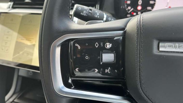 11.4" touch screen, Adaptive cruise control, Android Auto, Apple CarPlay, Blind spot assist, Driver condition monitor, eCall emergency call system, Front and rear parking aid, Head up Display, InControl remote premium, Interactive driver display, Lane keep assist, Locking fuel flap, PAS, Pivi Pro connected navigation system with upgraded Infotainment, Powered tailgate/boot lid, Push button start, Rear collision monitor, Rear traffic monitor, Service interval indicator, Traffic sign recognition with adaptive speed limiter, Trip computer, Wireless device charging, 7 kW onboard charger, All terrain progress control, Coil suspension system, Dynamic stability control, Home charging cable, Public charging cable, Terrain Response 2, Bluetooth connectivity including audio streaming, Digital Audio Broadcast radio-DAB, Steering wheel mounted audio controls, 3rd brake light, Automatic headlight levelling, Automatic headlights, Dynamic Exterior Styling, Electric front/rear windows, Electric heated/power fold door mirrors with approach lights and auto dimming driver side, Front and rear recovery eyes, Front fog lights, Heated rear window, Heated windscreen including heated washer jets, Illuminated metal treadplates with brand name script, Matrix LED headlights with signature DRL, front and rear animated directional indicators and intelligent high beam assist, P300e badge, Privacy glass, Rain sensing windscreen wipers, Rear fog lights, Rear side wing doors, Rear wing door, Rear wiper, 14 way heated electric front seats with driver memory, 2 way manual headrests and adjustable bolsters + 4 way electric lumbar support, 5 standard seating configuration, Bright metal pedals, Carpet mats, Centre console with armrest, Ebony morzine headlining, Electrically adjustable steering column with memory, Footwell lights, Front and rear 12V with front USB, Front and rear grab handles, Front passenger isofix child seat attachment, Full leather twin-rim steering wheel, Heated and cooled front seats, Heated steering wheel, Loadspace cover, Loadspace light, Manual slide and recline second row seats, Overhead lighting console, Overhead stowage for sunglasses, Rear headrests, Row 2 USB x 2 and row 3 USB x 1, Satin chrome gearshift paddles, Sunvisors with illuminated vanity mirrors, Twin front cupholders with cover, Windsor leather upholstery, Online pack with data plan - Discovery, 3 point seatbelts on all seats, ABS, Brake hold function, Child locks on rear doors, Collision mitigation braking system, Cornering brake control (CBC), Driver/Front Passenger airbags, Drivers knee airbag, Electronic brake force distribution, Electronic parking brake, Emergency brake assist, ESP + traction control, Hill descent control, Hill launch assist, Pedestrian airbag system, Rear seat ISOFIX, Roll stability control, Side and curtain airbags for front and 2nd row seats, Trailer stability control, Tyre pressure monitoring system, Battery Back Up System (BBUS) with tilt sensor, Global lock and unlock switch on driver door, Intrusion sensor, Keyless entry, Locking wheel nuts, Centre stack rails in noble chrome,