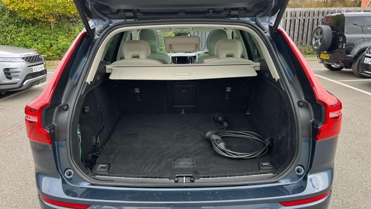 12.3" Active TFT crystal driver's instrument display, 9" centre console touch screen, Adjustable steering wheel force, Bluetooth handsfree system, Drive mode selector, Driver alert control with lane keeping aid, Emergency services call system, Front and rear park assist, Google Automotive Services, Oncoming Lane Mitigation, Power tailgate, Service interval indicator, Speed limiter, Speed sensitive steering, Trip computer, Volvo on call with App, Wireless apple carplay, Wireless/Inductive Mobile Phone Charging, 7m 10amp Charge Cable with 3 Pin Plug and 7m 1-Phase 16amp Type 2 / Mode 3 Charge Cable, 8 speed automatic transmission with start/stop + manual change functions, Dynamic chassis, Electric rear axle drive, Recharging port located in nearside front wing, DAB Digital radio, Fresh air subwoofer, Steering wheel remote infotainment controls, Adaptive brake lights with high level LED brake lights, Auto dimming interior + exterior mirrors, Automatic headlight levelling system, Automatic LED Headlights + Active high beam incorporating daytime running lights, Chrome deco lower front bumper, Chrome lower side moulding trim with Recharge logo, Chrome window surround, Colour co-ordinated door mirrors, Electric adjustable/heated/auto power folding door mirrors, Electric front+rear windows, High gloss black grille with chrome inserts, Home safe and approach lighting, Integrated roof rails in Chrome, Power glass tilt and slide panoramic sunroof with sun curtain, Rain sensor with automatic windscreen wiper activation, Rear Bumper Chrome Insert, Rear side wing doors, Rear wiper, Roof antenna, Roof spoiler, Tinted windscreen, Visible VIN plate, 12V socket in front tunnel console and cargo compartment, 2 zone electronic climate control with Clean zone air quality system and pollen filter, 3 seat bench in 2nd row, A-pillar parking ticket holder, B Pillar ventilation, Blond headlining, Bright metal luggage threshold, Centre armrest storage illumination, Centre console cupholders and storage, Floor mats, Front footwell and side step illumination, Front reading lights, Head restraints for all seats, Heated front seats, Height/reach adjustable steering column, Illuminated glovebox, Illuminated luggage compartment, Illuminated vanity mirrors + ticket holder, Leather upholstery, Load cover, Load protection net, Power height adjustable passenger seat with lumbar support, Rear armrest with cupholder, Rear seat concealed storage, Recharge aluminium tread plates, Single front passenger seat, Underfloor stowage compartment, Versatile split folding rear seat - 60/40, 5 three point seatbelts, City safety with steering support with Pedestrian + cyclist + large animal detection + front collision warning with full auto brake, Drivers knee airbag, Dual stage driver/passenger airbags, Electronic parking brake with auto hold, First aid kit, Hill descent control, Hill start assist, IC (Inflatable Curtains) - Full Length, Mechanical child locks on rear doors, Passenger airbag cut-off device, Road sign information display, Run off Road Mitigation, Run off Road Protection, Seatbelt reminder and pretensioners, SIPS (Side Impact Protection System), SIPS airbags, Slippery road and hazard light alert, Stability and Traction Control with Spin control, Engine Drag Control and Corner Traction Control, Tyre pressure monitoring system, Vehicle deceleration control with Anti-lock Brake System, Electronic Brake Distribution and Emergency Brake Assist, Warning triangle, WHIPS whiplash protection system - front, Anti-theft alarm including immobiliser/volume sensor + level sensor, Care key with user defined top speed, Key integrated remote control central locking + fuel flap with deadlocking system and auto open/close power windows, Keyless Start, Locking wheel nuts, Private locking for tailgate, Iron ore inlays, Tyre sealant kit + 12v compressor,