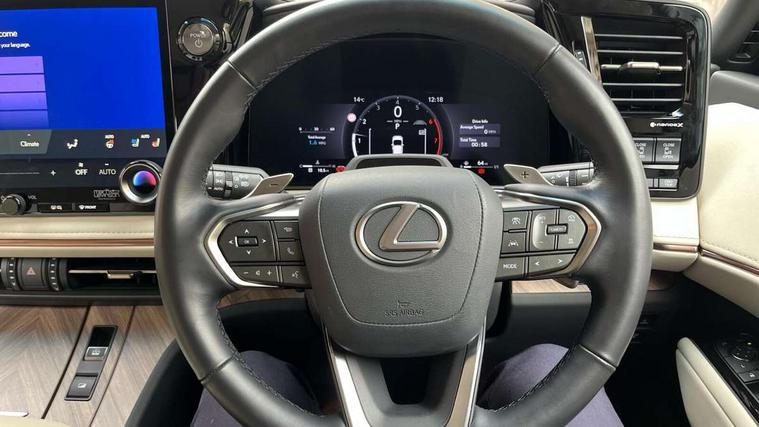 5 Drive modes - EV/Normal/Sport/Rear Comfort/Custom, Active cruise control, Auto remote parking, Blind spot monitoring, Driver monitoring camera, E-call, Front cross traffic assist, Intelligent park assist, Lane change assist, Lexus link pro with 14" touchscreen, Lexus safety system + 3, Panoramic view monitor, PAS, Road sign assist - RSA, Smart entry and push button start, Two wireless charging boxes in rear cabin, Wireless charging pad for front seats, 220v AC Inverter, AVS - Adaptive variable suspension, Mark Levinson 3D surround sound system with 23 speakers, Rear 48-inch monitor with 2 HDMI inputs, Daytime running lights, Fixed moon roof, Heated, auto-folding outside mirrors with memory function, and turn indicators, LED headlights with AHS, Rear side wing doors, Third brake light, 2 Fully reclining rear seats with swede inserts, 2 seat bench in 2nd row, Air type lumbar support for rear first row seats, Electric sunshade, Electrically adjustable steering column, Front and rear 2 Zone air conditioning with Nanoe-x technology, Front and rear cabin divider screen, Front and rear head restraints, Heated and ventilated front seats, Heated and ventilated rear seats, Heated leather steering wheel, Illuminated entry system, Massage rear seats with seven programs and five levels of pressure, each program lasting 15 minutes, Power adjustable front seats with driver memory and driver 4 way lumbar support, Rear refrigerator, Semi-aniline leather upholstery, Single front passenger seat, Stowable table in outer side armrest for rear passengers, Touch steering switches, Child locks on rear doors, Pre collision system, Two 3 point rear seatbelts, Digital key, 19" Alloy wheels,