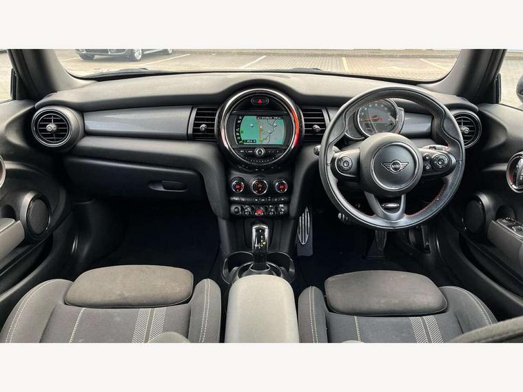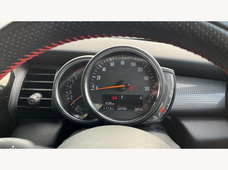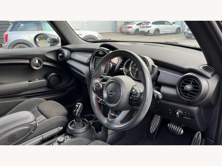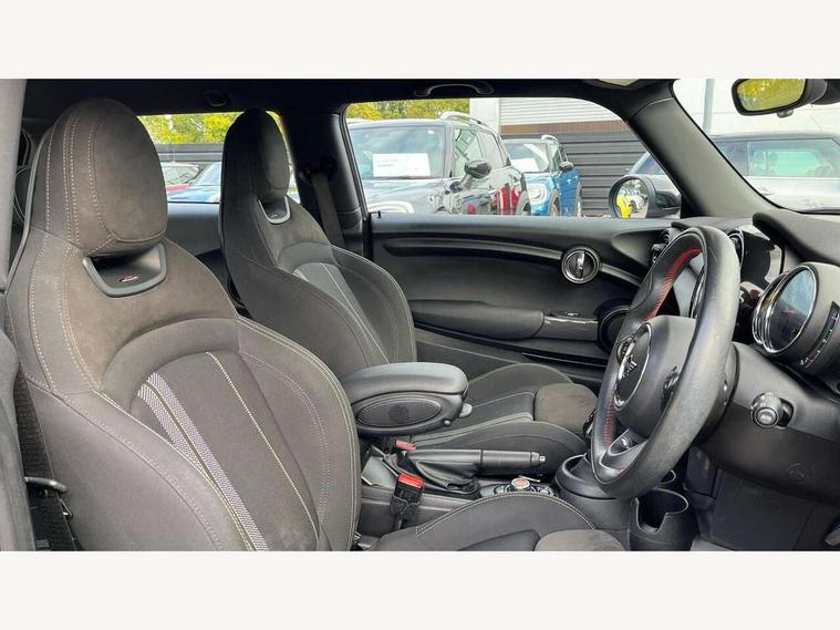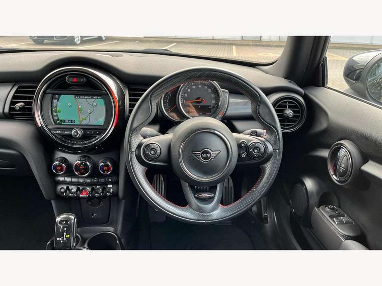 Automatic start/stop function with brake energy recuperation, Compatible mobile phone bluetooth with audio streaming, Electro-mechanical speed dependant steering assistance, Instrument cluster, MINI Driving Modes - centre toggle switch to control driving setting (sport, mid and green), Mini E-call, MINI TeleServices, On board computer, Service interval indicator, Double Vanos system, Fully variable valve control, Gear change indicator display, High precision injection, Performance Control, Steptronic transmission with double clutch, 6.5" touchscreen with LED ring, FM tuner and DAB digital radio, Automatic headlight activation switch, Body colour fuel filler cap, Chrome border high gloss black slats radiator grille, Dynamic brake lights, Electric front+rear windows, Heated rear window, Heated windscreen washer jets, John Cooper Works - aerodynamic kit (front and rear apron, spoiler), front and rear sport bumpers and part-painted side sills with door sill finishers, John Cooper Works rear spoiler, LED headlight with closed ring and daytime driving lights, Left exhaust tailpipe with chrome finisher, Metal door sill strips with MINI imprint, Model logo Cooper on right of tailgate, Rain sensor window wipers, Rear fog lights, Rear LED lights with union jack design, Rear window wiper, Side scuttle panel with integrated indicator, Sun/heat protection glass, White indicator lenses, 12V Accessory socket in centre console, 4 lashing eyes in luggage compartment, 60/40 split folding rear seat, Carbon Black colour line, knee roll and door armrests, Chrome interior highlights, Cupholders, Front and rear head restraints, Front and rear isofix with front passenger airbag deactivation, Glove compartment, Height and length steering column adjustment, Interior lighting with 12 basic colours selectable via toggle switch in roof, John Cooper Works leather steering wheel with contrasting stitching in Chilli Red with John Cooper Works logo, John Cooper Works Logo in seat, Leather gearshift lever and handbrake gaiters, LED reading lights, vanity mirror lights, front foot well light and spotlight on front seats, Manual air conditioning, Mechanical seat adjustment, driver seat height adjust, forward/back and front seats backrest, Mini logo projection on floor from drivers exterior mirror, Multifunction steering wheel, Storage compartments in doors, Sunvisors with vanity mirrors, 3 point seatbelts on all four seats, 6 Airbags - front, side, head and seat belt tensioners, Anti-lock braking system (ABS), DSC - Dynamic Stability Control, Front and rear disc brakes, Hill start assist, Single tone fanfare horn, Tyre pressure monitoring system, Alarm system with tilt sensor, monitoring doors, bonnet interior and tailgate, Electronic vehicle immobiliser, Start/stop toggle with keyless go, Tool kit,