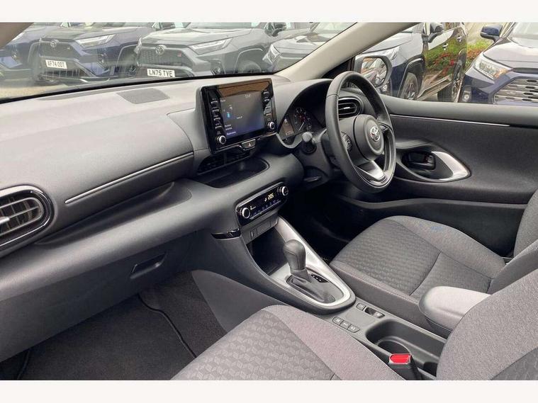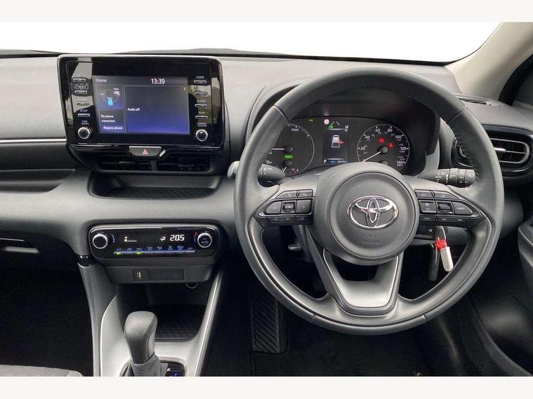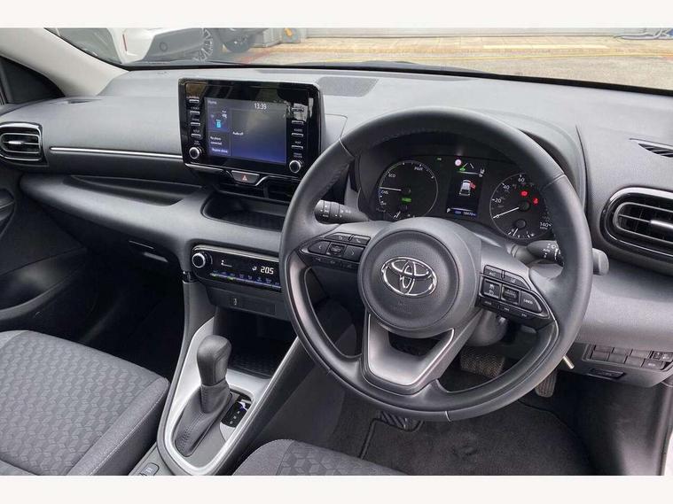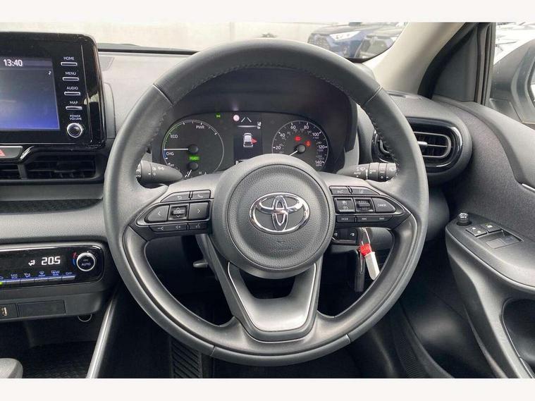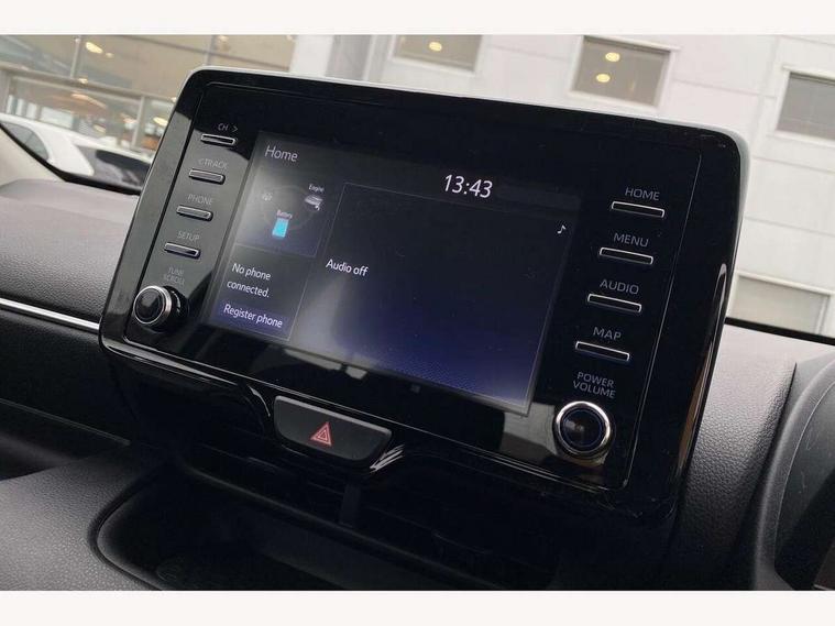 4.2" coloured TFT multi information display with analogue speedometer, Adaptive cruise control, Adjustable speed limit with speed warning, Bluetooth connectivity, E-call, Electric power steering, Hybrid energy display, Multi information display switches on steering wheel, Reversing camera, Smartphone integration with Apple CarPlay and Android auto, Tailgate, Voice recognition, Vehicle Stability Control (VSC), 4 speakers, 7" Multimedia display touch screen, Toyota Touch 2 with DAB, USB connection, Acoustic windscreen glass, Auto windscreen wipers, Automatic headlights, Body coloured door mirrors, Bulb indicators, Chequered front grille, Daytime running lights, Electric adjustable heated door mirrors, Follow me home headlights, Front auto power windows with anti jam protection, Halogen projector headlights, LED High mounted stop lamp, Manual headlight levelling, Rain sensor, Rear side wing doors, Rear spoiler, Rear wiper, Shark fin antenna, Turning signal integrated indicators in door mirrors, Variable front intermittent wipers, 3 adjustable rear headrests, 3 seat bench in 2nd row, 3 spoke leather steering wheel, 60/40 split folding rear seat, Active headrests, Adjustable boot height, Auto air conditioning, Coat hooks in rear grab handles, Cup holders (2 front & door), Data Communication Module (DCM) connected services, Fabric upholstery, Front armrest, Glovebox, Grey roof lining, Height adjustable driver's seat, Isofix seat fixing, Leather gearshift, Pollen filter, Shopping bag hooks, Single front passenger seat, Tilt/telescopic steering column, 3 point seatbelts on all rear seats, ABS+EBD+Brake assist, Electronic parking brake, Emergency brake light system (EBS), Front passenger airbag on/off switch, Front seatbelt reminder, Hill start assist control (HAC), Rear child proof door locks, Rear seat belt reminder, Supplemental Restraint System (SRS) 8 airbags: Driver & passenger's airbags, dual side curtain airbags, side impact airbags, front centre airbag, Toyota Safety Sense 2, Precollison + Night time Pedestrian & Cyclist Detection, Lane Trace Assist, Auto High Beam, Intelligent ACC & Road Sign Assist, Tyre pressure warning system, 2x Master key, Alarm/immobiliser, Remote powered central double locking doors, Soft touch instrument panel, Space saver spare wheel,