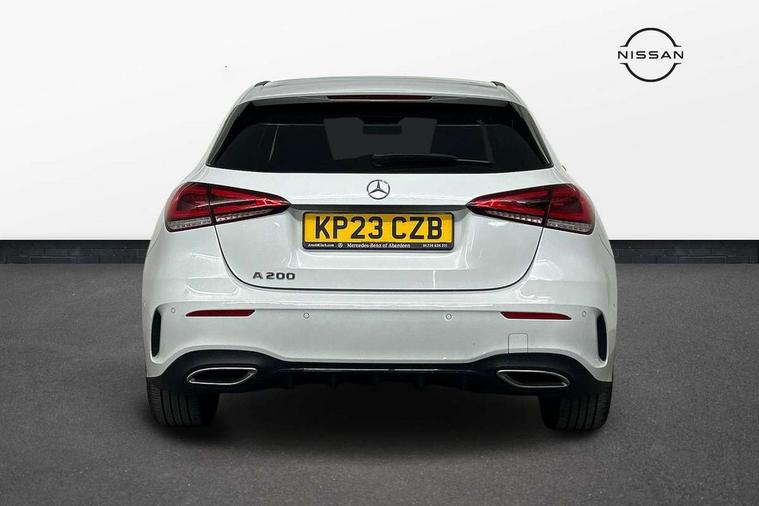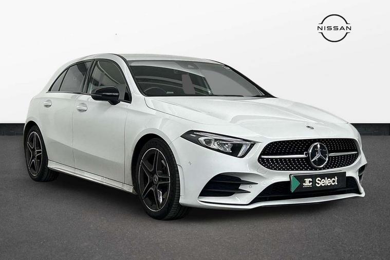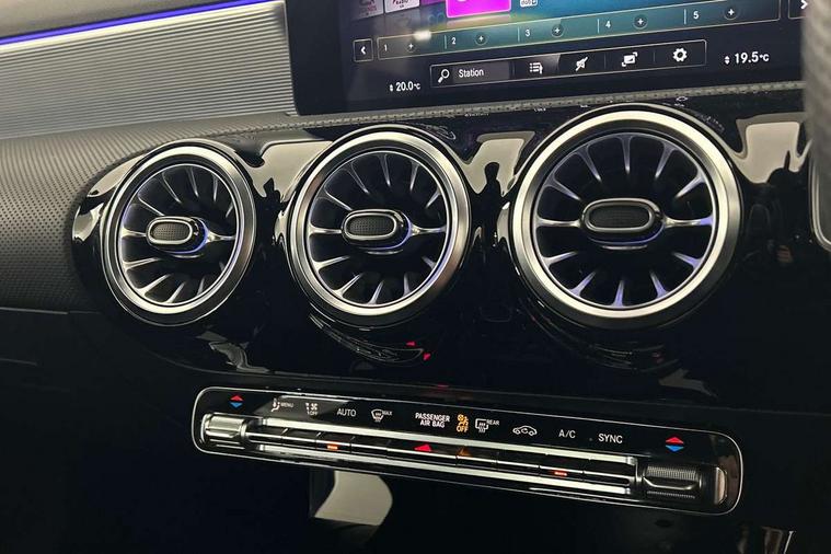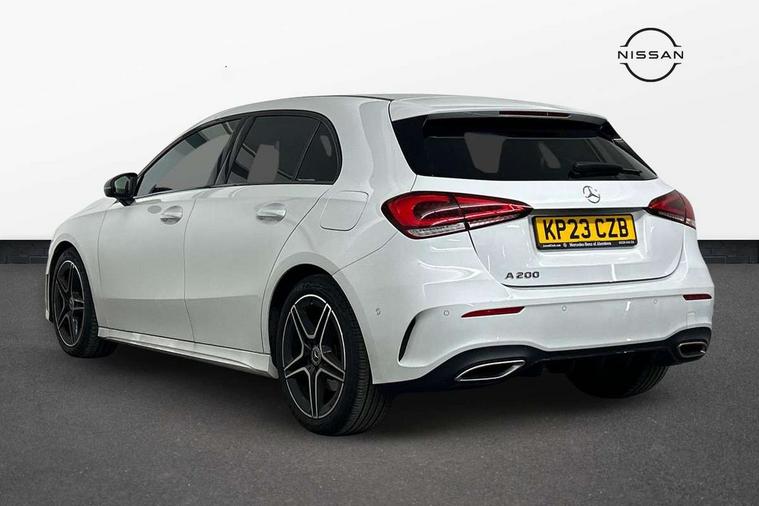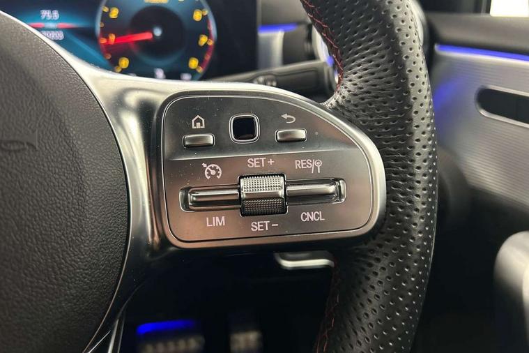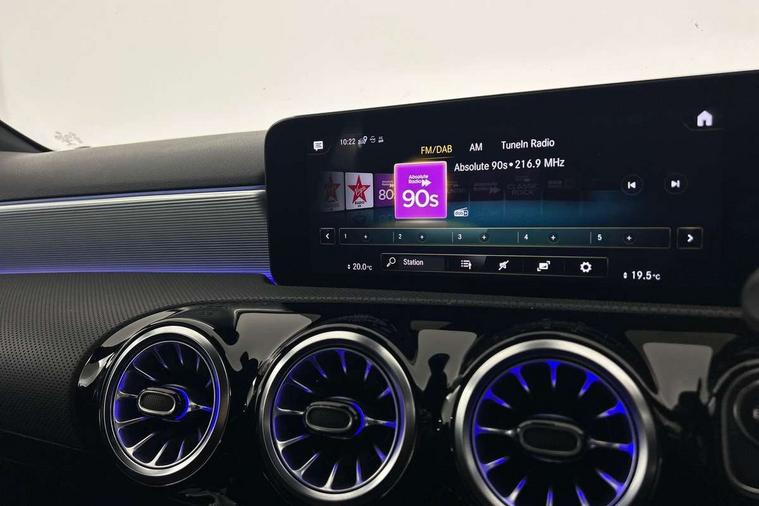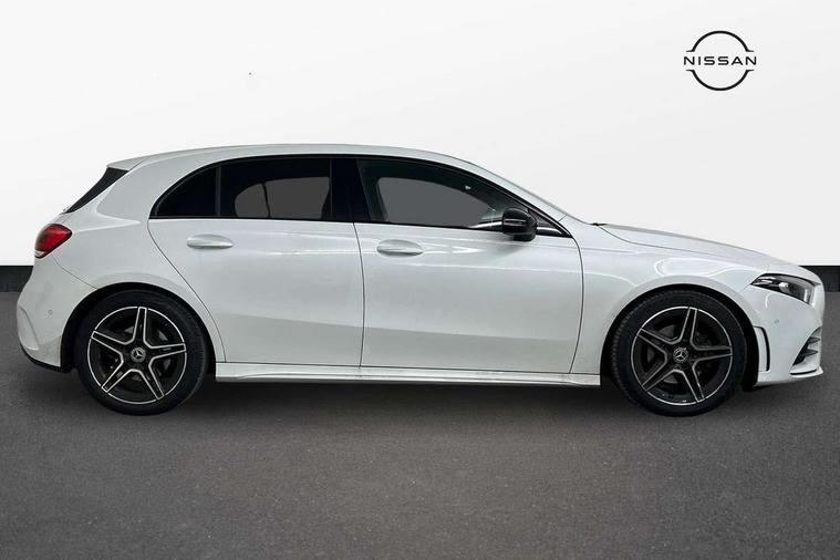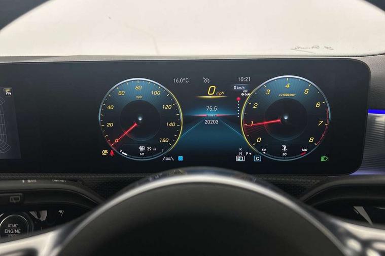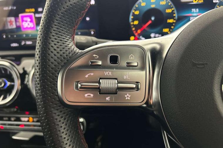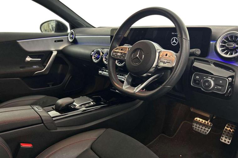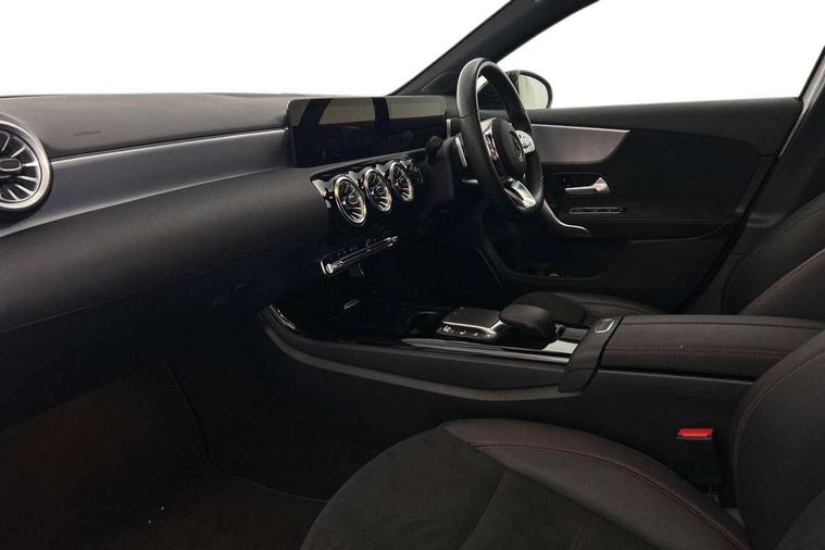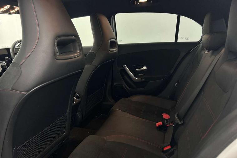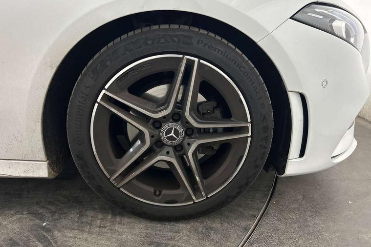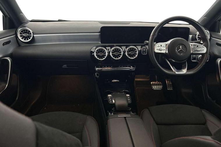 10.25" Digital instrument cluster display screen, 10.25" media display, 180 degree rear view camera with parking guidelines, Active parking assist with visual and audible warning of detected obstacles, Attention assist, Brake pad wear indicator warning light, Car wash mode, Cruise control + speed limiter, Direct steering, Dual bluetooth interfaces, DYNAMIC SELECT with a choice of driving modes (ECO, Comfort, Sport and Individual), ECO start/stop function, Fluid level warning indicator for fuel, oil, coolant and washer fluid, Hard-disk navigation, Hey Mercedes Voice activation, Lamp failure indicator, Lane keeping system, Mercedes me connect including emergency call system, accident recovery, breakdown and maintenance management, Mercedes me remote services, Outside temperature gauge, Owners manual in English, Pre-installation for private car sharing, Preinstallation for Mercedes Benz link, Service indicator (ASSYST), Smartphone integration with Apple CarPlay and Android auto, Speed limit assist, Speed sensitive power steering, Trip computer, Ultrasonic sensors positioned in the front and rear bumpers, Lowered comfort suspension, Rear axle torsion beam, 2 USB ports (type C) in rear stowage compartment and one in front of center console, 6 speakers, DAB Digital radio, MBUX multimedia system with DAB digital radio and touchpad including satellite navigation, Mercedes-Benz sound system - 100W, 4 Electric Front and Rear windows, Adaptive brake lights, AMG bodystyling - Front apron with splitter in chrome, rear apron with chrome trim and chrome visible trim elements in tailpipe, Automatic headlights, Black weather strip, Body colour bumpers, Body colour door handles with chrome inserts, Body colour side skirt, Electric adjustable and heated door mirrors with integrated LED side indicators, Exclusive diamond radiator grille, Exhaust system - Twin visible tailpipes in polished stainless steel, Headlamp assist automatic headlamp activation, Heated glass rear windscreen + timer control, LED High level third brake light, LED high performance headlamps with integrated LED daytime running lights, LED tail lamp, Privacy glass, Radio aerial, Rain sensing windscreen wipers with two sensitivity settings, Rear fog lights, Rear side wing doors, Rear wiper, 3 seat bench in 2nd row, 3 Spoke flat bottom leather multi function steering wheel with perforated leather in grip area, 40:20:40 split folding rear seats, Artico man-made leather/Microfibre Dinamica upholstery with red contrast stitching, Auto Mercedes-Benz child seat recognition sensor, Black air vents with surround in silver chrome, Black roof lining, Brushed stainless steel sports pedals with rubber studs, Controller on centre console with chrome surround, Floor mats with AMG lettering, Front centre armrest with storage compartment, Front seat backs luggage nets, Galvanished gear shift paddles on steering wheel, Heated front seats, Height/reach adjustable steering column, Illuminated Mercedes Benz lettering front door sills with changeable cover, Interior lighting - 64 colour Ambient lighting, Interior mirror with reading lamps in black and frameless, Manual height adjustable front seats, Rear head restraints, Seat occupancy sensor for front passenger seat, Single front passenger seat, Sports seats with integrated headrests, Stowage compartment in centre console with retractable cover, Sunvisors with illuminated vanity mirrors, Touchpad on center console, Twin front cupholders, Two zone thermotronic luxury automatic climate control, Light and sight pack - A Class, Mirror package - A Class, Night pack - A Class Saloon/Hatchback, Seat comfort pack - A Class, 3 rear 3 point seatbelts, ABS with Brake Assist, Active bonnet, Active brake assist includes forward collision warning system with autonomous braking, Adaptive brake assist with hold function and hill start assist, Black seatbelts, Childproof locks manually operated for rear doors and electrically operated for rear power windows, Crash responsive emergency lighting, Driver and passenger head and side airbags, Drivers knee airbag, Dual stage driver/passenger airbags, Electronic parking brake, ESP curve dynamic assist, ESP with ASR, Front and rear seatbelt reminder, Front brake callipers with Mercedes Benz lettering, ISOFIX and top tether child seat fixing points in two outer rear seats, Tyre pressure monitoring system, Warning triangle and first aid kit, Window airbags, Alarm system/interior protection/immobiliser, Keyless Go, Remote central locking and crash sensor with emergency opening function, Urban guard vehicle protection system with immobiliser and interior protection, Matrix look light longitudinal grain aluminium trim element, 18" AMG 5 twin spoke light alloy wheels aerodynamically optimised painted in black with highsheen finish, Summer tyres, Tirefit sealant kit,