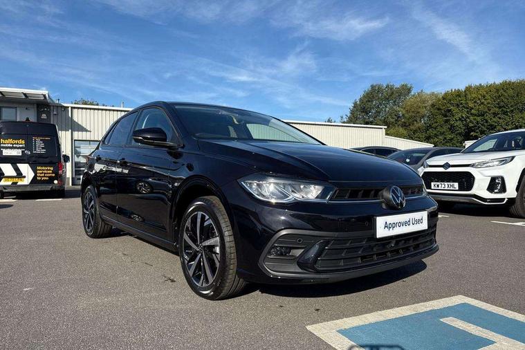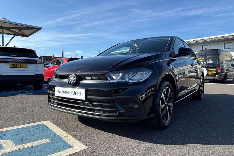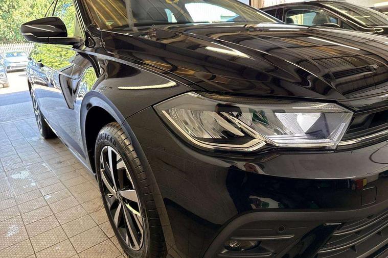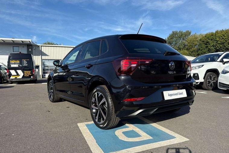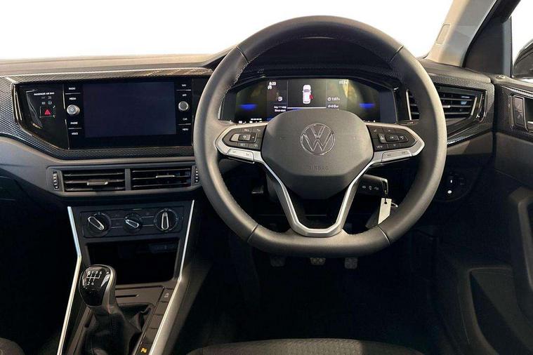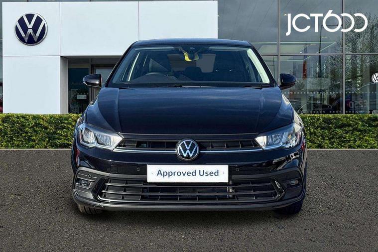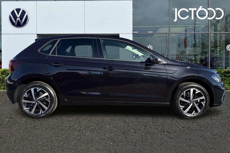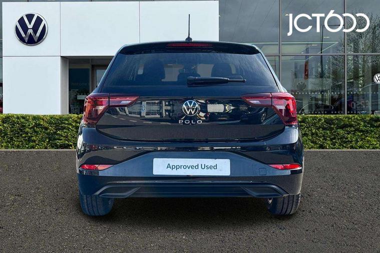 Adaptive cruise control without follow-to-stop and speed limiter, Advanced driver attention and drowsiness monitor, Bluetooth mobile phone interface, Dynamic road sign display, Emergency call service, Mobile phone preparation with inductive charging function, Multifunction front facing camera for distance control, Power assisted speed sensitive steering, Preparation for navigation system with media and internet package, Preparation for We connect and We connect plus, Rear view camera, Speedo and rev counter, electronic odometer, trip, service interval display and exterior temperature gauge, Standard rear axle, Travel Assist - Lane keeping system and traffic jam assist, Travel assist including emergency assist, Trip computer, Warning signal and warning light for front and rear seatbelts not fastened, Washer fluid level indicator, Wireless app connect, Front wheel drive, Rear shock absorpion, Start-stop system with battery regeneration (recuperation - energy recovery during braking), DAB Digital radio, Diversity antenna for FM reception, Automatic dimming interior rear view mirror, Automatic headlight control with LED separate daytime running lights with coming/leaving home function, Body colour bumpers with chrome inserts, Body colour door handles, Body colour door mirrors, Electric front windows, Engine badge deletion, Headlight range adjustment, Heat insulating and laminated safety glass windshield, LED Headlights, LED rear combination lamps, Power folding adjustable/heated exterior mirrors and front passenger exterior mirror lowering function, Rain sensor, Rear electric windows, Rear fog light, Rear side wing doors, Rear tinted glass from B-pillar backwards approx 65% tinted, Rear windscreen washer and wiper with interval delay, Third brake light, 12V power socket in centre console, 2 front and 2 rear reading lights with switch off delay and dimmer, 2 USB-C ports in the front, 2 USB-C charging sockets on the center console in the rear, 3 rear head restraints, 60/40 split folding rear seat and rear seat bench not split, Ceramique roof lining, Chrome plated radiator grille inserts, air vent surrounds and light switch surrounds, Door and side trim panel, Driver and front passenger seat height adjustment, Driver/passenger sunvisors with illuminated vanity mirrors, Front centre armrest, Front seat backrest storage pockets, Front standard seats, Handbrake lever handle in leather, Hartley/Thomas cloth upholstery, Headliner in recycled material, Isofix child seat preparation easy-fit (for two outer rear seats, and front passenger seat) compatible with I-size, Leather trimmed gear knob, Luggage compartment cover, Luggage compartment lighting, Removable luggage compartment floor, Single front passenger seat, Standard climatic zones, Standard pedal cluster, Three spoke leather wrapped multifunction steering wheel, Light and vision pack - Polo, 3 point height adj front seatbelts + pretensioners, 3 point seat belt for centre rear seat, 3 point seatbelts, outer rear with ECE lable, ABS, Driver and front passenger airbag with front passenger airbag deactivation, Drivers and front passengers safety optimised head restraints, ESC (Electronic stability control) + EDL (Electronic Differntial lock) and ASR (Traction control), Extended and predictive pedestrian/ cyclist protection, Front assist with autonomous emergency braking (for Adaptive Cruise Control ACC up to 130 mph), Front curtain and side airbags with center airbag, Front disc brakes, Hill hold control, Manual child lock in rear doors, Rear drum brakes, Single tone horn, Tyre pressure loss indicator, Alarm with interior protection, Anti-theft alarm system with interior monitoring, backup horn, and towing protection, Anti-theft wheel bolts, Electronic engine immobiliser, Lava stone black gloss/matt decorative inserts in dash and front door panels, 16" Torsby alloy wheels, Low rolling resistance tyres,