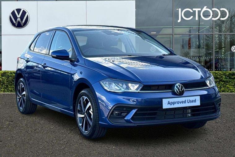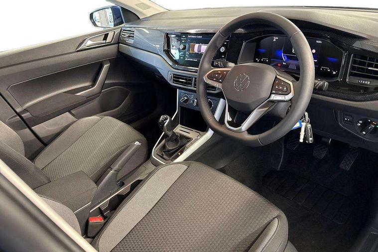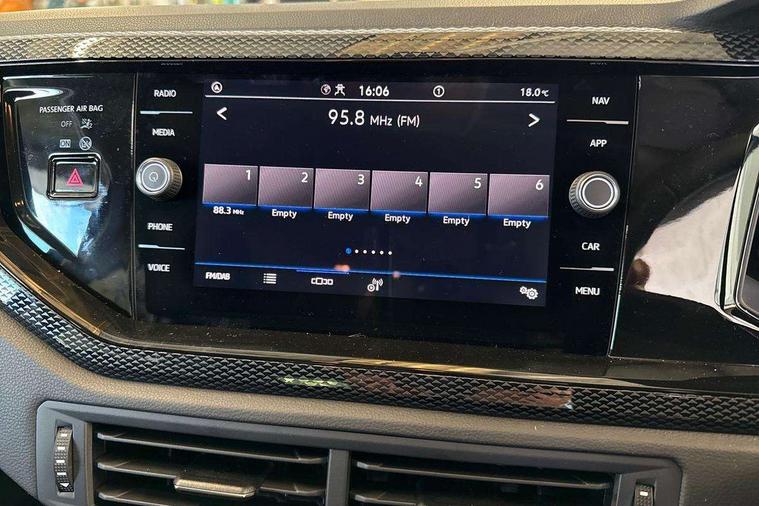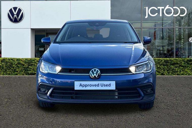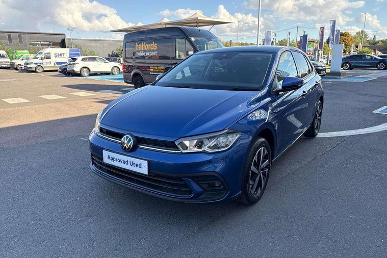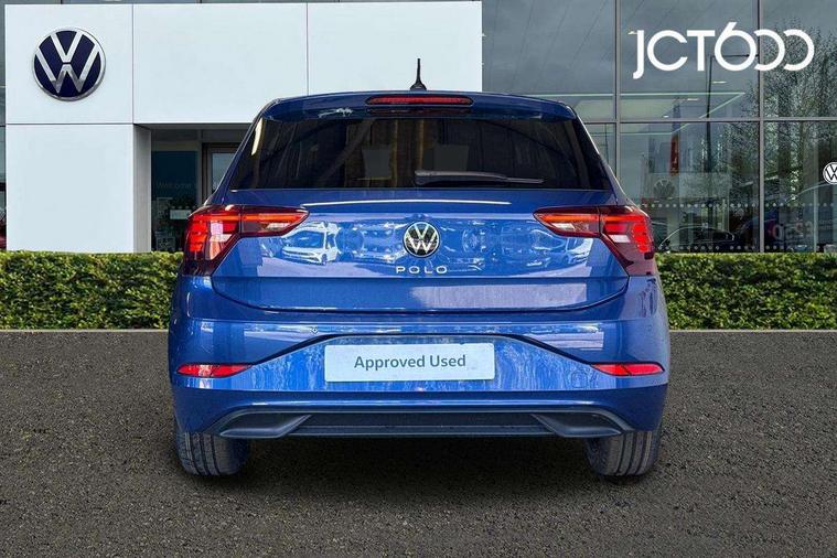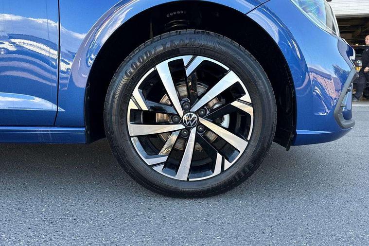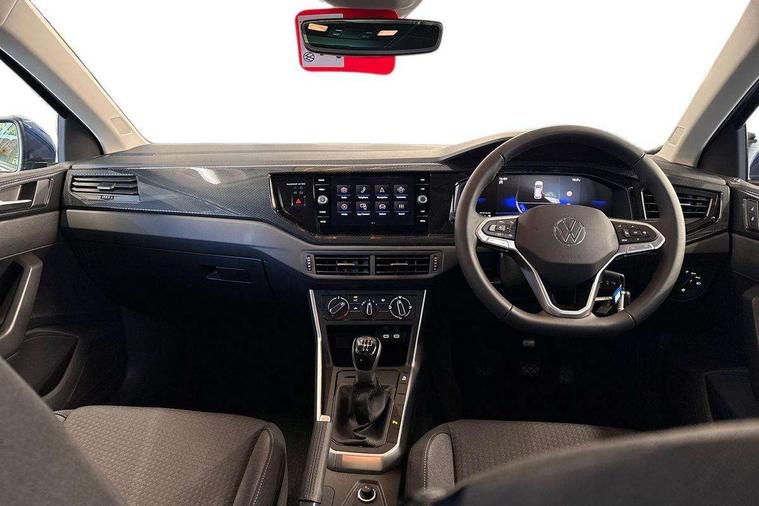 Adaptive cruise control without follow-to-stop and speed limiter, Advanced driver attention and drowsiness monitor, Bluetooth mobile phone interface, Dynamic road sign display, Emergency call service, Mobile phone preparation with inductive charging function, Multifunction front facing camera for distance control, Power assisted speed sensitive steering, Preparation for navigation system with media and internet package, Preparation for We connect and We connect plus, Rear view camera, Speedo and rev counter, electronic odometer, trip, service interval display and exterior temperature gauge, Standard rear axle, Travel Assist - Lane keeping system and traffic jam assist, Travel assist including emergency assist, Trip computer, Warning signal and warning light for front and rear seatbelts not fastened, Washer fluid level indicator, Wireless app connect, Front wheel drive, Rear shock absorpion, Start-stop system with battery regeneration (recuperation - energy recovery during braking), DAB Digital radio, Diversity antenna for FM reception, Automatic dimming interior rear view mirror, Automatic headlight control with LED separate daytime running lights with coming/leaving home function, Body colour bumpers with chrome inserts, Body colour door handles, Body colour door mirrors, Electric front windows, Engine badge deletion, Headlight range adjustment, Heat insulating and laminated safety glass windshield, LED Headlights, LED rear combination lamps, Power folding adjustable/heated exterior mirrors and front passenger exterior mirror lowering function, Rain sensor, Rear electric windows, Rear fog light, Rear side wing doors, Rear tinted glass from B-pillar backwards approx 65% tinted, Rear windscreen washer and wiper with interval delay, Third brake light, 12V power socket in centre console, 2 front and 2 rear reading lights with switch off delay and dimmer, 2 USB-C ports in the front, 2 USB-C charging sockets on the center console in the rear, 3 rear head restraints, 60/40 split folding rear seat and rear seat bench not split, Ceramique roof lining, Chrome plated radiator grille inserts, air vent surrounds and light switch surrounds, Door and side trim panel, Driver and front passenger seat height adjustment, Driver/passenger sunvisors with illuminated vanity mirrors, Front centre armrest, Front seat backrest storage pockets, Front standard seats, Handbrake lever handle in leather, Hartley/Thomas cloth upholstery, Headliner in recycled material, Isofix child seat preparation easy-fit (for two outer rear seats, and front passenger seat) compatible with I-size, Leather trimmed gear knob, Luggage compartment cover, Luggage compartment lighting, Removable luggage compartment floor, Single front passenger seat, Standard climatic zones, Standard pedal cluster, Three spoke leather wrapped multifunction steering wheel, Light and vision pack - Polo, 3 point height adj front seatbelts + pretensioners, 3 point seat belt for centre rear seat, 3 point seatbelts, outer rear with ECE lable, ABS, Driver and front passenger airbag with front passenger airbag deactivation, Drivers and front passengers safety optimised head restraints, ESC (Electronic stability control) + EDL (Electronic Differntial lock) and ASR (Traction control), Extended and predictive pedestrian/ cyclist protection, Front assist with autonomous emergency braking (for Adaptive Cruise Control ACC up to 130 mph), Front curtain and side airbags with center airbag, Front disc brakes, Hill hold control, Manual child lock in rear doors, Rear drum brakes, Single tone horn, Tyre pressure loss indicator, Alarm with interior protection, Anti-theft alarm system with interior monitoring, backup horn, and towing protection, Anti-theft wheel bolts, Electronic engine immobiliser, Lava stone black gloss/matt decorative inserts in dash and front door panels, 16" Torsby alloy wheels, Low rolling resistance tyres,