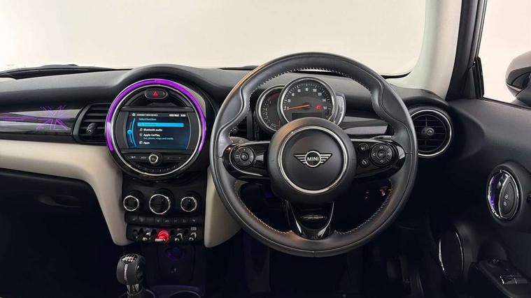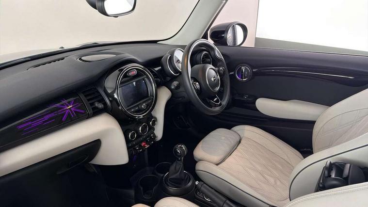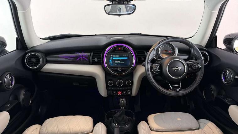 Automatic start/stop function with brake energy recuperation, Compatible mobile phone bluetooth with audio streaming, Electro-mechanical speed dependant steering assistance, Instrument cluster, MINI Driving Modes - centre toggle switch to control driving setting (sport, mid and green), Mini E-call, MINI TeleServices, On board computer, Service interval indicator, Double Vanos system, Fully variable valve control, Gear change indicator display, High precision injection, Performance Control, 6.5" touchscreen with LED ring, FM tuner and DAB digital radio, Automatic headlight activation switch, Bonnet scoop, Chrome border honeycomb structure radiator grille with S badge, Chrome plated fuel cap, Dynamic brake lights, Electric front+rear windows, Heated rear window, Heated windscreen washer jets, LED headlight with closed ring and daytime driving lights, Metal door sill strips with Cooper S imprint, Model logo Cooper S on right of tailgate, Radiator grille bars, tailgate handle, lower front grille grating, rear central fog light in chrome, Rain sensor window wipers, Rear fog lights, Rear LED lights with union jack design, Rear window wiper, Side scuttle panel with integrated indicator, Sun/heat protection glass, Two central exhaust tailpipes with chrome finisher, White indicator lenses, 12V Accessory socket in centre console, 4 lashing eyes in luggage compartment, 60/40 split folding rear seat, Air vents, gear lever base, speakers in doors, door handles in chrome, Carbon Black colour line, knee roll and door armrests, Chrome interior highlights, Cupholders, Front and rear head restraints, Front and rear isofix with front passenger airbag deactivation, Glove compartment, Height and length steering column adjustment, Interior lighting with 12 basic colours selectable via toggle switch in roof, Leather gearshift lever and handbrake gaiters, LED reading lights, vanity mirror lights, front foot well light and spotlight on front seats, Manual air conditioning, Mechanical seat adjustment, driver seat height adjust, forward/back and front seats backrest, Mini logo projection on floor from drivers exterior mirror, MINI Yours leather steering wheel with silver contrasting stitching with MINI Yours badge, Multifunction steering wheel, Storage compartments in doors, Storage pocket on back of front seats, Sunvisors with vanity mirrors, Tool kit, 3 point seatbelts on all four seats, 6 Airbags - front, side, head and seat belt tensioners, Anti-lock braking system (ABS), DSC - Dynamic Stability Control, Front and rear disc brakes, Hill start assist, Two tone horn, Tyre pressure monitoring system, Alarm system with tilt sensor, monitoring doors, bonnet interior and tailgate, Electronic vehicle immobiliser, Start/stop toggle with keyless go, Chrome line interior,