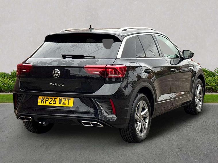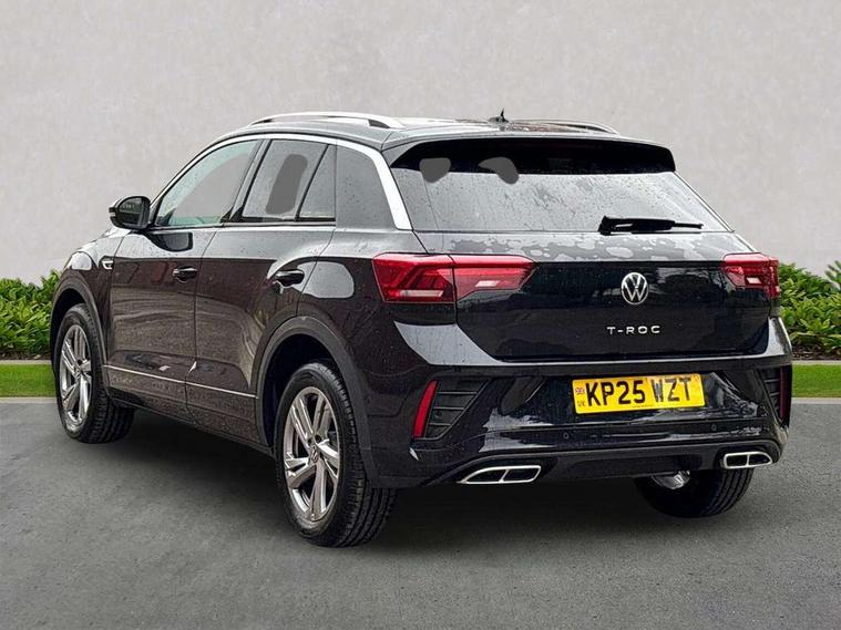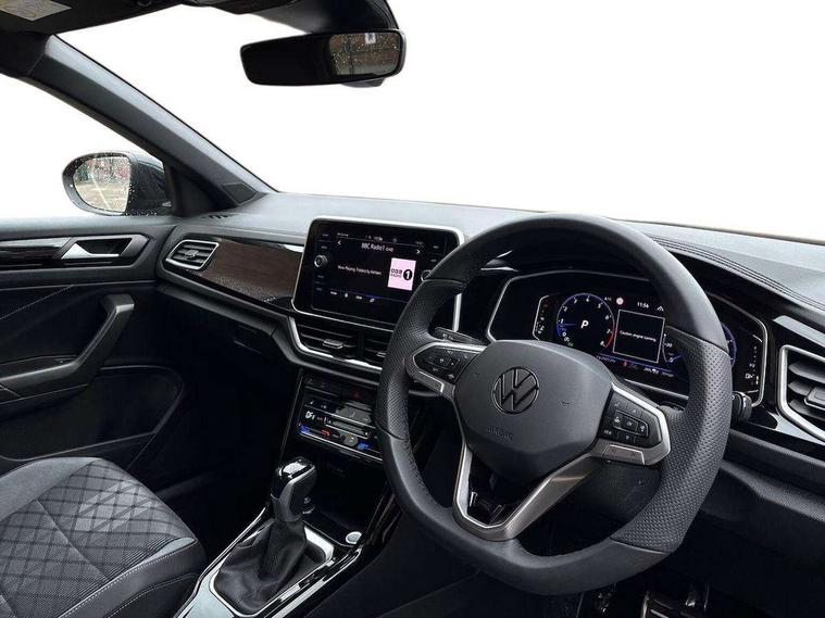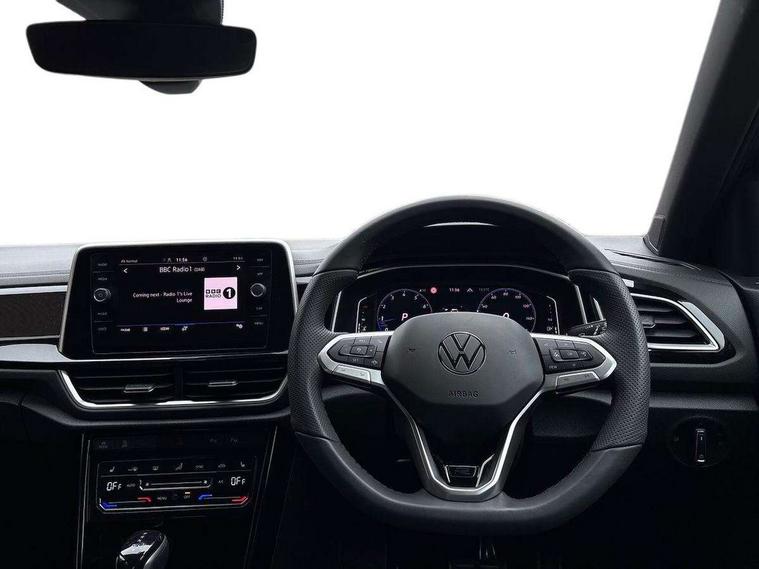 10.25" Digital cockpit pro, Advanced driver attention and drowsiness monitor, Emergency call service, Lane keeping system Lane Assist, Mobile phone interface, Modified key software - reduce switch off time for key status change to Long no motion, Online services, Park assist including front and rear parking sensors, Service interval indicator, Tailgate/trunk lid release from outside, Think blue trainer driver tips and journey analysis, Warning sound and light for front seatbelts unfastened, Wireless app connect, Battery regeneration during braking, Start/stop function with battery regeneration, DAB Digital radio, Diversity antenna for FM reception, Front and rear 6 speakers, Music playback - MP3, WMA and AAC files, Premium USB cable in choice of either Apple or Android smartphone compatibility, SD card slot, Simultaneous pairing of 2 compatible mobile devices, Title and cover art display, We Connect and We Connect Plus functionality, Auto dimming interior rear view mirror, Automatic hazard lights activation under emergency braking, Automatic headlight control with LED separate daytime running lights with coming/leaving home function, Body coloured exterior mirror housings and door handles, Electrically adjustable and heated door mirrors, Extended roof spoiler, Exterior mirrors aspherical on driver side, convex on front passenger side, External USB type C socket and charging sockets, Front windscreen wiper with intermittent wipe and 4 position delay, Heated rear window, LED 3rd brake light, LED rear combination lamps, LED rear number plate lights, Power windows with comfort operation and circuit breaker, Privacy glass for rear side windows and rear window, R-Line design body coloured bumpers, Rain sensor, Rear exhaust tailpipe, Rear fog light on one side and reversing lights on both sides, Rear side wing doors, Rear wash/wipe with intermittent wipe setting, Remote electrically foldable door mirrors, puddle lights and reverse activated passenger's door mirror, 12V power socket in centre console, 3 rear head restraints, 3 seat bench in 2nd row, 4 load lashing points in luggage compartment, Air care climatronic air conditoning system with active combination filter and 2-zone temperature control, Black roof lining, Chrome plated decorative trims, Chrome plated radiator grille inserts, air vent surrounds and light switch surrounds, Door and side trim panel with leatherette insert, Front + rear carpet mats, Front centre armrest, Front cupholders x 2, Front footwell illumination, Front reading light, Front scuff plates with R Line logo, Front seat back storage pockets, Glove compartment door with light, Instrument lighting, white adjustable panel illumination, Interior ambient lighting and surround lighting, Interior light delay, Isofix child seat preparation, Leather gearshift handle, Load-through provision with cup holder when folded down ('Unsplit rear seat bench, split folding backrest, with centre armrest), Luggage compartment lighting, Single front passenger seat, Stainless steel pedals, Storage compartment in left and right luggage area, Storage compartment in rear doors, Storage compartments in driver and front passenger doors, Sunvisors with illuminated vanity mirrors, Variable boot floor, height adjustable and removable, Driver assistance pack without proactive passenger protection - T-Roc, 3 point height adj front seatbelts + pretensioners, 3 point seatbelts in outer rear with ECE label, ABS, Child locks on rear doors, City emergency braking and pedestrian monitoring, Driver and front passenger airbag with front passenger airbag deactivation, Driver and front passenger safety-optimised head restraints, Drivers seatbelt reminder, Electronic parking brake, Electronic Stability Control (ESC) inc EDL (Electronic Differential Lock) and ASR (Traction Control), Front and rear passengers curtain airbag system including front side airbags, Hill start assist, Predictive pedestrian protection, Rear disc brakes, Two tone horn, Tyre pressure loss indicator, Volkswagen roadside assistance, Piano black decorative inserts in dashboard and front door trim panels, Trims for alloy wheels,