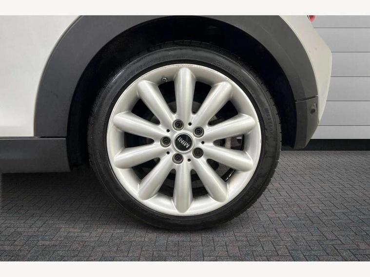 Acoustic seat-belt warning, Basic bluetooth function with USB audio, Brake fluid level warning light, Brake pad wear indicator warning light, DTC - Dynamic traction control, Exterior temperature gauge, Intelligent emergency call, MINI TeleServices, Oil level indicator, On board computer, Push button starter, Service interval indicator, Servotronic PAS, Electronic differential lock, Auxiliary input socket, DAB digital radio module, 2 speed wipers+intermittent wipe, Anti dazzle mirror, Anti trapping/one touch open close front windows, Body coloured bumpers, Chrome bezels around rear lights and headlights, Chrome door handles, Chrome exhaust tailpipe, Chrome grille surround, Chrome plated trim on bottom edge of window, Chrome strip on lower grille, Electric front windows, Electric rear windows, Electrically adjustable door mirrors, Flared wheel arches, Follow me home headlights, Green tinted heat insulating glass, Heated door mirrors/heated windscreen washers, Heated rear window with auto timer, High gloss black tailgate, LED fog lights, LED rear lights, Rear wiper, Side scuttles, White indicator lights, 2 rear head restraints, 4 boot load lashing points, 4 way manually adjustable passenger seat with height, reach, tilt, backrest and headrest, 6-way manually adjustable driver's seat, Active carbon filter, Adjustable front seats backrest, Air recirculation system, Auxiliary socket in centre console storage compartment, Centre console storage, Driver's seat height adjuster, Driver/passenger sunvisors, Easy entry seats, Front and rear cupholders, Front head restraints, Front passenger grab handle, Gear/selector and handbrake in artificial leather, Internal chrome door handles, Isofix child seat preparation, Luggage compartment lighting, Multifunction steering wheel, Reach + rake adjustable steering column, Rear grab handles, Rear storage trays, Split folding rear seats, Storage compartments in doors, Toolkit in luggage compartment, 3 point seatbelts, 3x3 point rear seatbelts, ABS/EBD, ASC+T, Cornering brake control (CBC), Crash Sensor - activates hazard/interior lighting + unlocks doors, Driver and passenger airbags, Driver/front passenger side airbags, DSC - Dynamic Stability Control, Fuel cut off safety device, Head airbags, Hill start assist, Passenger airbag deactivation system, Seatbelt pretensioners, Tyre pressure warning, Ventilated front disc brakes, Drive away door locking, Locking wheel bolts, Remote central locking/doors+fuel cap+tailgate, Second remote key, Thatcham category 1 alarm + immobiliser,
