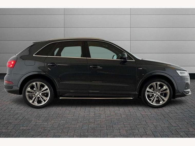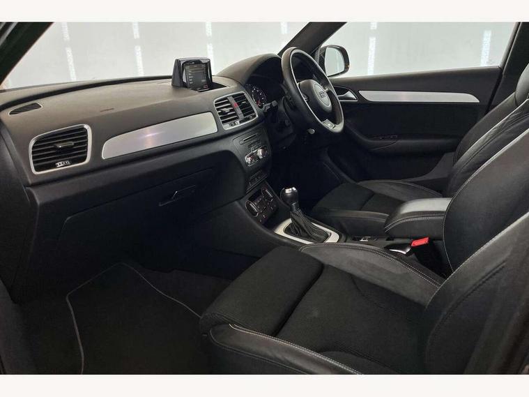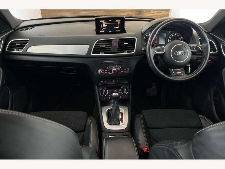 6.5" colour display screen, Audi drive select, Cruise control, Electro-mechanical PAS, Low washer fluid indicator, MMI - Multi Media Interface control system, On board computer, Remote electric boot opening/closing, Service interval indicator, Voice control system, Dynamic suspension, Audi music interface, DAB digital radio module, Acoustic windscreen, Aluminium window surround, Auto dimming rear view mirror, Body colour door mirrors, Body coloured bumpers, Chrome exhaust tailpipe, Coming home function, Door mirror integrated indicators, Front and rear electric windows, Front fog lights, Front lip spoiler, Heated windscreen washer jets, LED daytime running lights, LED headlights with headlight washers, LED rear lights, Light and rain sensor for auto activation of lights and windscreen wipers, Loading sill protector in stainless steel, Rear diffuser with platinum insert, Rear wiper, S Line body styling, Sunband for windscreen, 12V socket in rear centre console, 3 spoke multi-function Q design steering wheel with paddle shift, Aluminium door sill trims, Black cloth headlining, Door sill trim strips, Dual zone climate control, Electric front lumbar adjustment, Front and rear headrests, Front and rear velour floor mats, Front centre armrest with storage compartment and angle adjustment, Front sports seats, Height/reach adjust steering wheel, ISOFIX on front passenger and rear outer seats, Jack and tool kit, Perforated leather gearknob, Retractable luggage cover, Split fold rear seat, Storage compartment and 12V socket, Under floor storage in luggage area, 3x3 point rear seatbelts, ABS+Electronic Brake force Distribution, Curtain airbags, Driver and passenger airbags, Driver and passenger side airbags, EDL + ASR, Electrically operated child locks on rear doors, Electromechanical parking brake, ESP, First aid kit, Front passenger airbag deactivation, Head airbags, Seatbelt warning light, Tyre pressure monitoring system, Warning triangle, Locking wheel bolts, Remote central locking, Thatcham category 1 alarm + immobiliser, Matt brushed aluminium fascia and door trim inlays,