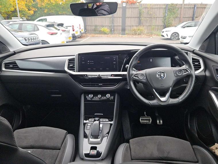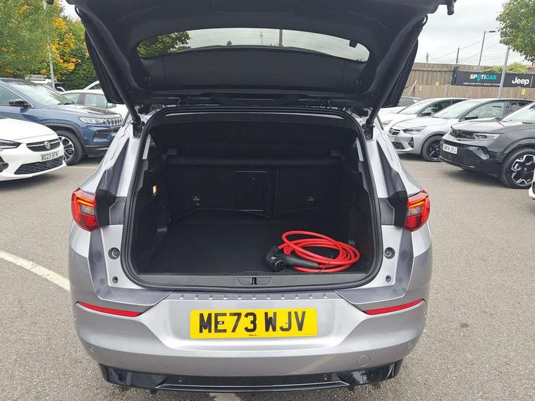 12" colour digital cluster, Central facia display with digital clock, outside air temperature and audio information, Digital fuel gauge with low fuel level warning light, Digital rev counter, Digital speedometer, Digital water temperature gauge with warning light, Drive mode selector, Driver drowsiness alert system, Driver information - Total mileage, service indicator, oil life, EV information display with powerflow, charge, e-save and statistics, Front and rear parking distance sensors with 360 degree rear view camera and advanced park assist, Gearshift up/down indication light, Highway integration assist (Lane positioning assistant and Adaptive cruise control), Lane departure warning system, Lane keep assist, Lights on audible warning, Multi function trip computer - Trip odometer, vehicle range, average speed and fuel economy, instantaneous fuel economy and driving time, Multimedia Pure Panel Navigation System incl 10" colour touchscreen, 12" digital instrument cluster & satellite naviagtion, Power operated tailgate with foot sensor, Side blind spot alert, Speed sensitive electric power assisted steering, Speed sign recognition, Start/stop system, Vauxhall connect including Emergency call (SOS e-call) and Breakdown call (b-call), Wireless charger for mobile devices, Anti-roll bars, Compound crank rear suspension with coil springs and koni FSD (Frequency selective damping) oil filled dampers and revised rear springs, Enhanced handling and powertrain tuning, Independent decoupled MacPherson strut front suspension with koni FSD (Frequency selective damping) oil filled dampers and revised rear springs, Type 2 mode 3 charging cable, Six speaker - four front + two rear, Steering wheel mounted audio/phone/cruise controls, Automatic lighting control, Black door mirrors, Black roof, Black side window trim, Body colour door handles, Body colour lower front and rear bumpers, protective wheel arches and lower door cladding, Body colour upper front bumper, Collapsible windscreen wipers, Dark tinted rear windows, Door to door illumination, Electric adjustable/heated/folding door mirrors, Electrically operated front and rear windows with safety auto reverse and one touch up/down facility, Frameless auto dimming anti dazzle rear view mirror with LED spotlight, Front wiper system spraying directly from wipers, Gloss black protective front skid plate and rear skid plate with 3 fin diffuser, GSe badge on tailgate, Hazard warning lights, Heated rear screen with timed cut off, High beam assist, High gloss black exterior detailing, High gloss black Griffin for Vizor and tailgate with high gloss black Grandland tailgate lettering, High gloss black roof rails, High level centre rear brake light, IntelliLux adaptive LED pixel headlights and LED tail lights, Intermittent rear window wash/wipe, LED daytime running lights, LED front fog lights, Magic wash, Manual headlight beam levelling, Partial heated windscreen, Rain sensor windscreen wipers, Rear side wing doors, Rear spoiler, Reversing light, Shark fin aerial, Soundproof insulated windscreen, Two speed windscreen wipers with variable intermittent wipe, Unique sports style front bumper and rear valence, Upper and lower bumper design, Vizor front grille, Welcome lighting, 12V electrical accessory socket in front, 3 bench rear seats in 2nd row, 3 spoke design heated flat bottom leather covered steering wheel with satin chrome effect bezel, 4 way electric driver lumbar support, 4 way passenger electric lumbar support, 60/40 split folding rear seat with centre rear seat armrest and load though facility, Advanced predictive logic control system using a sun sensor, Alcantara upholstery, Alloy sports pedals, Ambient centre console downlighter, Automatic air direction and fan speed with manual override, Charcoal filter, Chrome effect interior door handles, Covered storage compartment in centre console and in driver armrest, Driver's centre armrest, Drivers and front passengers seat with height, reach, tilt, backrest adjustment and seat cushion extension, Dual zone electronic climate control, Electrical thermal preconditioner, Ergonomic active driver and front passenger GSe sports style seats, Front door pockets with 2.6 litre capacity, Front seat back storage pockets, Fully carpeted luggage area, Heated front seats, Height adjustable headrests, Illuminated driver/passenger sunvisors with vanity mirror, Illuminated luggage area, ISOFIX on front passenger and rear outer seats, Luggage compartment cover, Reach + rake adjustable steering column, Rear centre seat head restraint, Rear door pockets with 1.8 litre capacity, Rear passenger compartment heating ducts, Rear reading lights, Rear restraining net, Steering wheel heating, Two drinks holders in centre console, Anti-lock braking system (ABS), Automatic emergency braking with pedestrian detection, Child proof locks on rear doors, CSC - Cornering stability control, Deactivation switch for front passenger front and side impact airbags, Deflation detection system, Driver airbag, Dual seatbelt pretensioners on front seats, EBD - Electronic brakeforce distribution, Electronic parking brake, Electronic stability program (ESP) including traction control, Forward collision alert, Front brake ventilated disc 304mm diameter, Front passenger airbag, Front seat side impact airbags, Full-size curtain airbags for driver and front passenger, Hill start assist, Hydraulic Brake Assist (HBA), Inertia reel lap and diagonal seatbelts for all seats, Load limiters on outer rear seatbelt retractors, Pretensioners on outer rear seatbelt retractors, Rear brake ventilated disc 268mm diameter, Smart seatbelt reminder for front and rear seats, Tyre pressure monitoring system, Central locking, Deadlocking system, Electronically protected audio equipment, Engine deadlock immobiliser, Keyless entry and start, Locking wheel nuts, Remote security alarm system, Black door panels with black premium leather effect inserts, Dax decor facia panel with pal