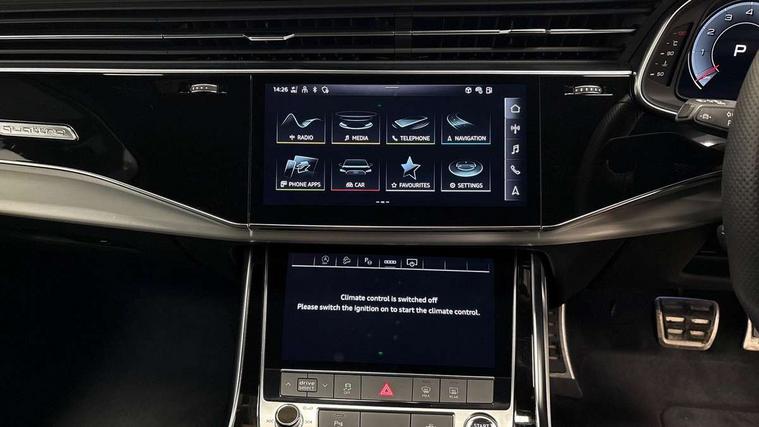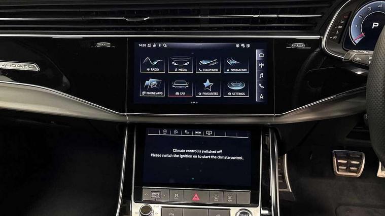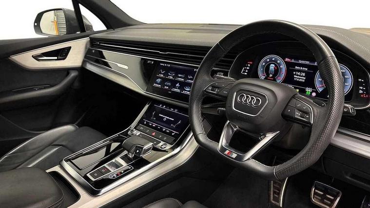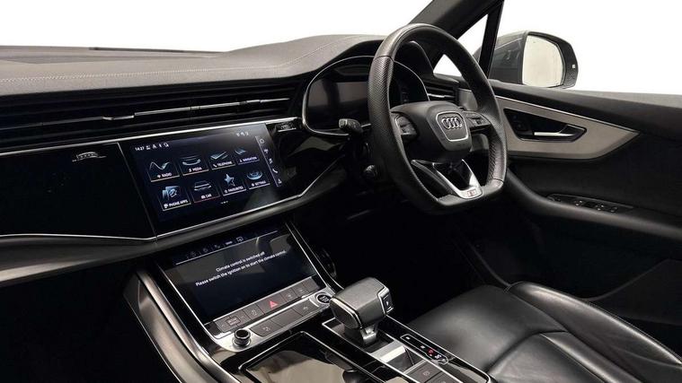 Audi connect safety and service (e-call), Audi connect with Amazon Alexa Integration, Audi drive select (Auto, Comfort, Dynamic, Efficiency, Individual, Off-road and All road), Bluetooth interface, Camera based traffic sign recognition, Electromechanical steering, MMI navigation plus with MMI touch screens includes 10.1" and 8.6" screens with haptic feedback, Natural voice recognition, Parking system plus with 360 degree display (front, rear and side sensors) - acoustic and visual park assist system, Power operated tailgate, Rear view camera, Smartphone interface includes wireless Apple carplay/Android Auto, Start/stop system, 48V Mild hybrid technology, 85 litre fuel tank, Adaptive air suspension, Quattro all wheel drive with self locking centre differential, Audi music interface - front 2 USB-C ports with charger and data functions, Audi sound system with 6 channel amplifier, 180 watt amplifying capacity and 10 loudspeakers including subwoofer, DAB digital radio module, 3rd brake light, Aluminium roof rails, Aluminium window trim, Audi matrix LED headlights with dynamic front and rear indicators, Auto dimming frameless rear view mirror, Body coloured door mirrors, Electrically adj heated/folding + automatically dimming exterior mirrors with memory + automatic kerb side function for passenger side exterior mirror, Heat insulating glass in windshield, Integrated LED indications in door mirrors, LED daytime running lights, LED rear tail lights, Privacy glass - dark tinted rear and rear side windows from B-pillar backwards, Rear side wing doors, Rear wiper, S Line badge on wings, S line bumpers in full body colour paint finish, S line roof spoiler, S line styling side ventilation grilles and side skirts, 2 seat bench in 3rd row, 2 zone automatic climate control, 3 seat bench in 2nd row, 7 seat layout with ISOFIX points for the front passenger seat and rear passenger seat, Black cloth headlining, Comfort front centre armrest, Electric adjustable front seat with 4 way lumbar support, driver memory functionality, Folding rear seats, Front head restraints, Front/rear floor mats, Heated front seats, Illuminated door sill trims with S logo, LED interior ambient lighting, Luggage compartment cover, Luggage compartment sill protection in stainless steel, Rear head restraints, Single front passenger seat, Stainless steel pedals, Sunvisors with illuminated vanity mirrors, 3 point seatbelts on all rear seats, Audi pre sense front, Child locks on rear doors, Driver and front passenger, front side and curtain airbags, Electromechanical parking brake, Electronic Stabilisation Control (ESC) including ABS, ASR and EDL, Extended pedestrian protection measures, Hill hold assist, Seatbelt monitoring, Tyre pressure loss indicator, Warning triangle and first aid kit, Anti theft alarm, Anti-theft wheel bolts and wheel loosening detection, Keyless Go, Remote central locking, Darkened matt brushed aluminium inlays, Tool kit, Tyre repair kit,
