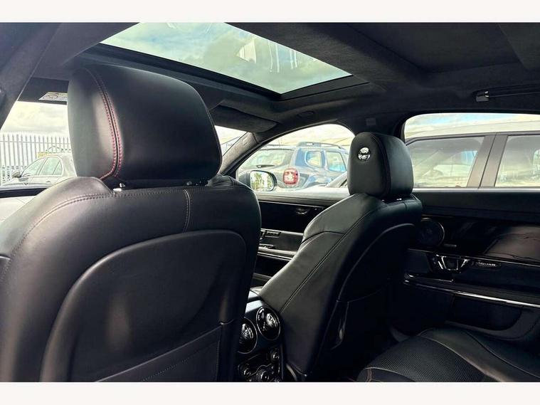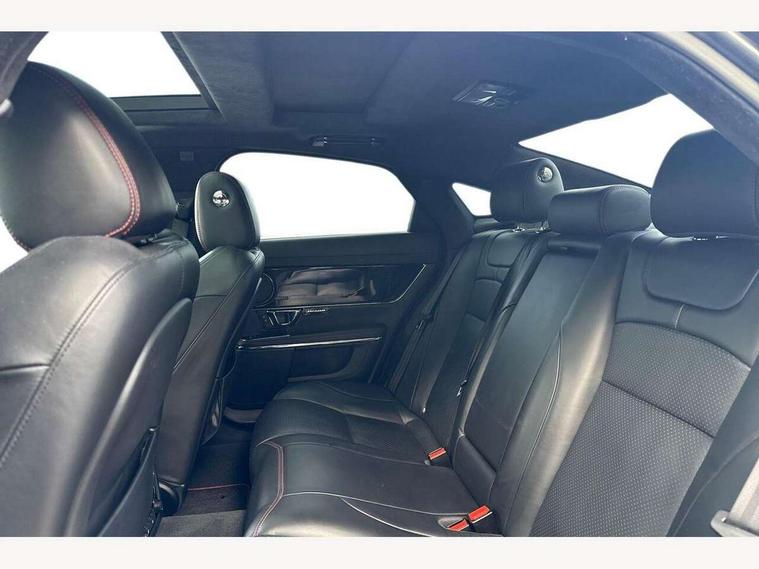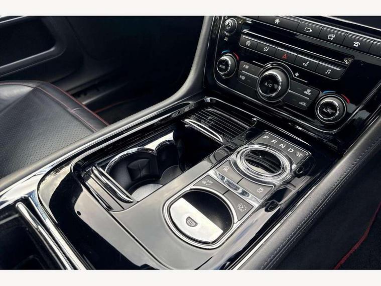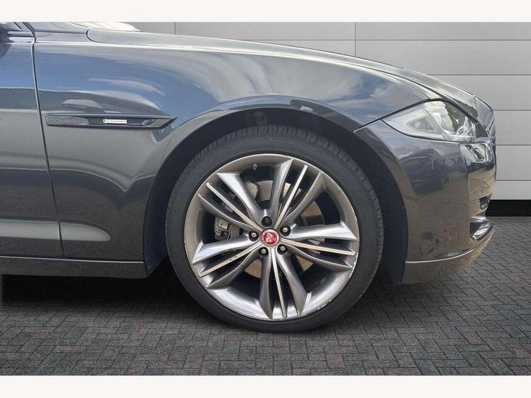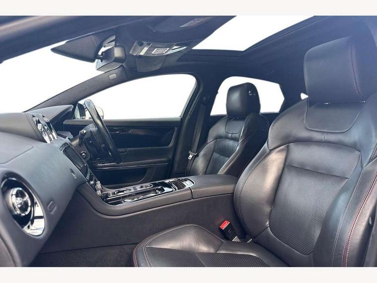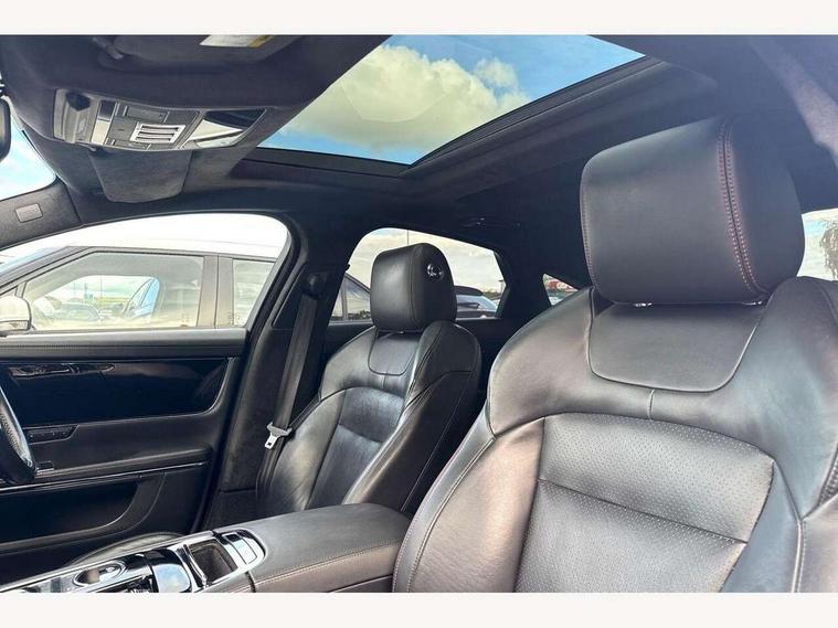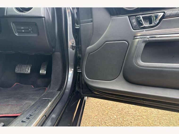 8" touch screen, Analogue clock, Auto speed limiter, Front parking aid, HDD Navigation System with touch-screen and traffic message channel, Incontrol pro service, InControl remote premium, Jaguar Voice front, LCD instrument dials, Multi function trip computer, Power boot opening and closing, Rear parking aid with visual display, Speed sensitive variable PAS, Adaptive dynamics, Diesel particulate filter, Self levelling rear air suspension, Bluetooth connectivity including audio streaming, DAB digital radio module, Digital TV, InControl app, InControl protect, Media interface, Meridian surround audio system, Radio + MP3 compatible CD/DVD player with hard drive, Approach Illumination, Auto dimming rear view mirror, Auto high beam, Auto-dipping door mirrors in reverse gear, Automatic headlamp activation, Body coloured bumpers, Electric adjustable door mirrors, Electric folding auto dimming door mirrors with memory, Electric front/rear windows/one touch operation, Electric panoramic sunroof with electric sunblind, Front aerodynamic splitter, Headlight washers, Heated door mirrors, Heated front windscreen and timer, Heated rear window with timer, Laminated front side windows, Laminated windscreen, LED tail lights, R-sport body kit, Rain sensor windscreen wipers, Rear spoiler, Solar control glass, Tinted rear windows, Twin exhaust tailpipes with chrome finishers, 18 way electrically adjustable heated and cooled sports front seats with driver and passenger memory, 3 spoke softgrain leather steering wheel, Air conditioning with 4 zone climate control, Door puddle lights, Driver and passenger sunvisors with illuminated vanity mirrors, Driver's footrest, Footwell courtesy lights front and rear, Front centre armrest with power point and storage, Front head restraints, Gear shift indicator, Heated steering wheel, Illuminated glovebox, Interior mood lighting, ISOFIX on outer rear seats, Jaguar sense, JaguarDrive selector, Multifunction steering wheel, Premium carpet mats, Reach/rake electric adjustable steering column + entry/exit tilt away, Rear centre armrest with 2 cupholders + storage, Rear coat hooks, Rear head restraints, Softgrain leather trim to upper facia/door top roll/door pannier/door armrest/centre console lid, Softgrain leather upholstery, Sports pedals, Sports seats, Stainless steel kick plates, Steering wheel gearshift paddles, Suedecloth premium headlining, Twin front cupholders, Two 12V sockets in rear, ABS/EBD, Active bonnet, Driver/Front Passenger airbags, Electronic parking brake, Front and rear curtain airbags, Front side airbags, Pedestrian contact sensing and deployable bonnet, Seatbelt warning, Three 3 point rear seatbelts, Trac DSC (Dynamic Stability Control with 3 setting levels), Tyre pressure monitoring system, WHIPS whiplash protection system - front, Alarm/immobiliser, Drive away door locking, Keyless entry, Keyless Start, Remote central locking + deadlocks, Contrast stitching, Alloy space saver spare wheel,