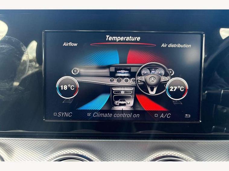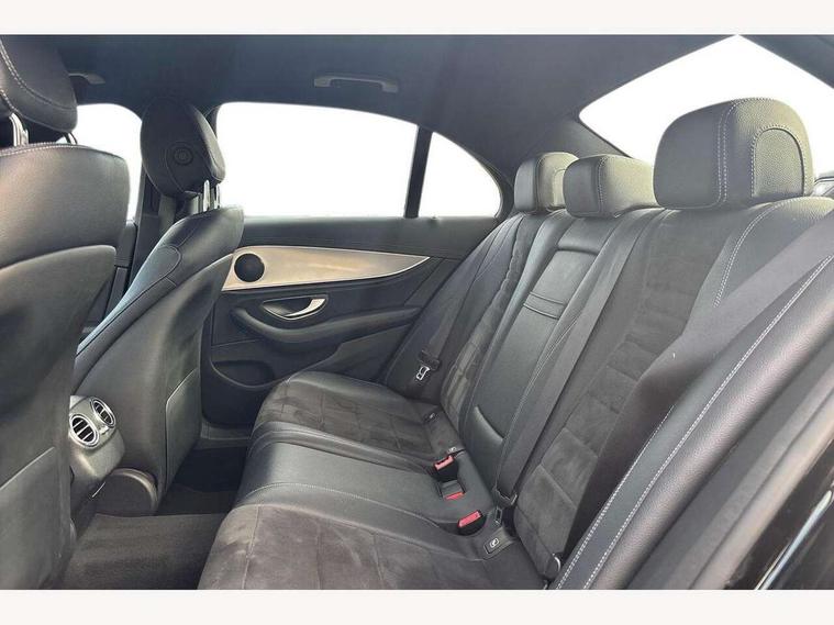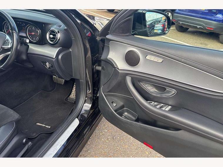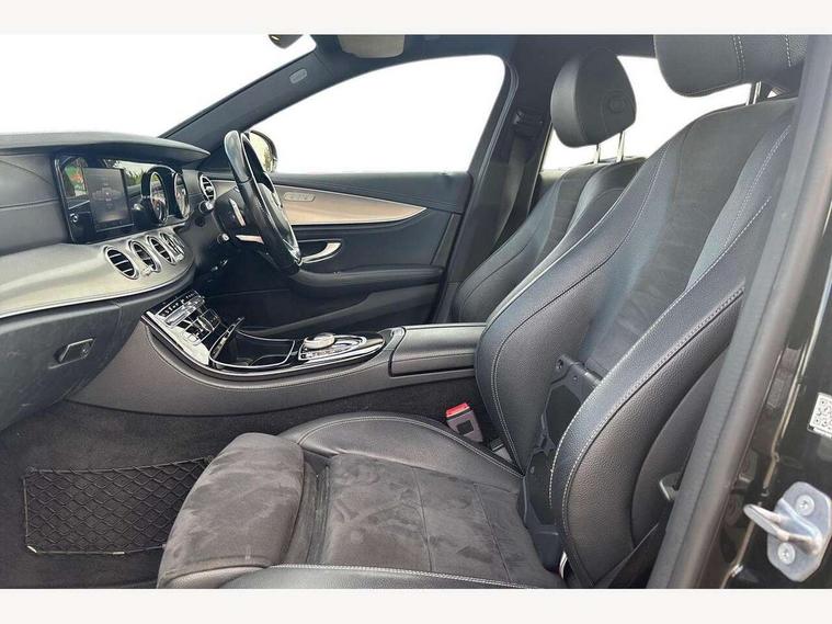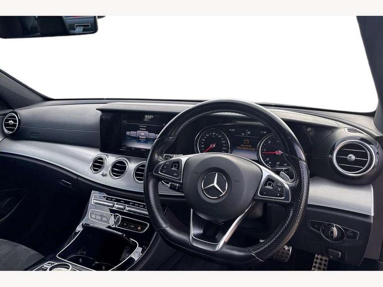 Active park assist with parktronic system, Analogue clock, Attention assist, Bluetooth interface for hands free telephone, Boot release from drivers seat, Brake wear warning light, DYNAMIC SELECT with a choice of driving modes (ECO, Comfort, Sport, Sport+ and Individual), Mercedes connect me, Multi function trip computer, Park assist pilot with front and rear park assist, Service indicator (ASSYST), Speed sensitive power steering, Diesel particulate filter, DAB Digital radio, Media interface, Steering wheel mounted audio controls, USB/aux input socket, Adaptive brake lights, Aerial integrated in rear window, AMG bodystyling, Body colour bumpers, Body colour door handles, Electrically adjustable and heated door mirrors, LED Headlights, Polished aluminium upper window surround, Polished aluminium waistline, Radiator grille with integral star and 2 louvres in matt iridium silver with chrome trim, Rain sensor windscreen wipers, 3 spoke AMG steering wheel in Nappa leather, Ambient lighting, AMG floormats, Artico man-made leather upper dash trim, Auto Mercedes-Benz child seat recognition sensor, Black roof lining, Chrome door pins, Electric seat adjustment, Electric seat back adjustment, Front and rear door pockets, Front centre armrest with storage compartment, Front door sills with Mercedes Benz lettering, Heated front seats, Height/reach adjust steering wheel, Illuminated glovebox, Interior rear light/integral reading lights, Isofix rear child seat fastenings, Multi function steering wheel, Sports pedals with stainless steel surfaces and rubber studs, Storage compartment with 12V socket in centre console, Sunvisors with illuminated vanity mirrors, Interior lighting pack - E Class, Mirror pack - E Class, Seat comfort pack - E Class, 3x3 point rear seatbelts, Active bonnet, Active brake assist, Childproof rear door locks, Driver and passenger side/thorax airbags, Driver/front passenger airbag, Drivers knee airbag, Electronic parking brake, Hill hold assist, Hill start assist, Pre-Safe anticipatory safety system, Seat occupancy sensor, Seatbelt warning, Tyre pressure monitoring system, Warning triangle and first aid kit, Window airbags, Alarm system/interior protection/immobiliser, Chrome surround in electric key, Keyless Start, High gloss black centre console, Run flat tyres,