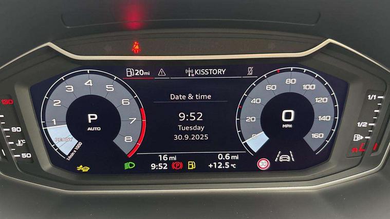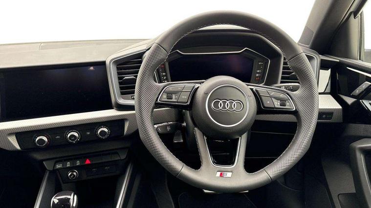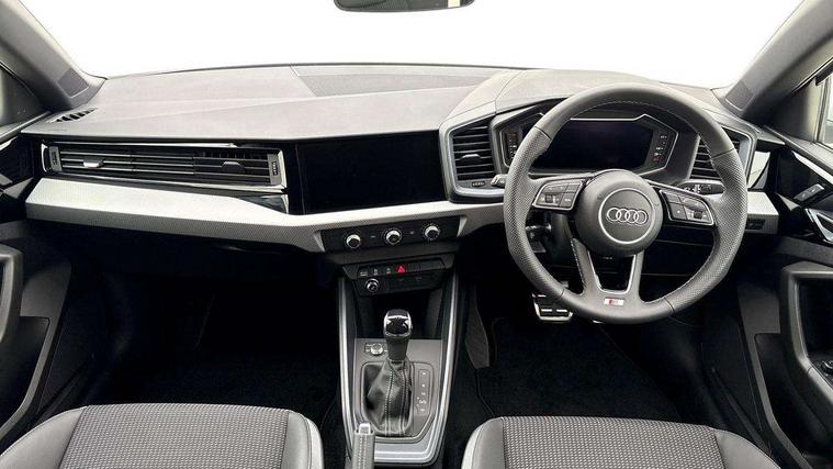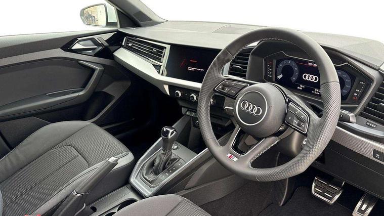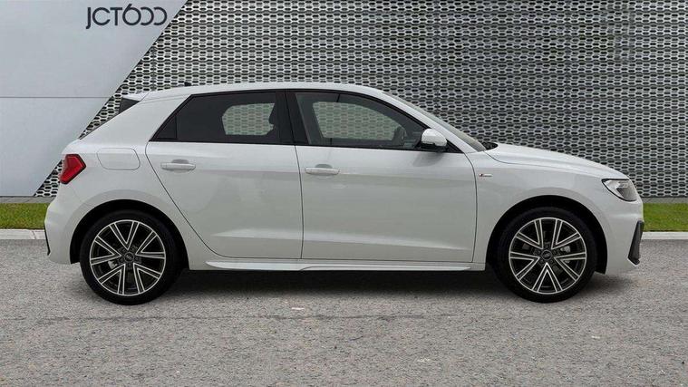 10.25" Digital instrument cluster display classis style instrument dials + speed, odometer, time, outside temperature, telephone menu + fuel level warning, Advanced driver attention and drowsiness monitor, Audi connect emergency call and service, Audi drive select, Audi remote connect and control, Audi smartphone interface, Bluetooth interface, Camera based traffic sign recognition, Cruise control, Driver's information system, Electromechanical power steering, Lane departure warning system, Rear parking sensor, Service interval indicator, Speed limiter, Start stop system with recuperation, Voice control system, Washer fluid level indicator, Sports suspension, 2 x USB type C connection points, 6 loudspeakers, DAB Digital radio, MMI radio plus with 10.1" colour MMI display screen and MMI touch, Auto dimming rear view mirror, Body coloured door mirrors, Door sill trims with aluminium inlays and S line logo in front, Electric front and rear windows, Electrically adjustable, heated, folding door mirrors with integrated LED side indicator, Front side air inlets in grained matt black and C frame in anthracite black, Headlight cleaning system, Heat insulating glass windscreen and side windows, Heated rear windscreen, High level LED brake light, LED daytime running lights, LED headlights with range control LED rear lights + dynamic rear indicators, Light and rain sensors, Privacy glass, Radiator grille and rear diffuser in matt anthracite black, Radiator protective grille frame in matt aluminium silver, Rear fog lights, Rear side wing doors, Rear wiper, S line badges on front wings, Side front spoiler lips in grained matt black, 12V socket in centre console with two cup holders, 3 rear seats with headrests, 3 seat bench in 2nd row, 3 spoke leather multi-function plus steering wheel features S badging and grips in perforated leather with contrast stitching, 40:60 Split folding rear seat or fully collapsed, Black cloth headlining, Front and rear velour black floor mats with contrast stitching in fine silver, Front head restraints, Front passenger seat, Height and reach adjustable steering wheel, Interior lighting includes roof module, front and rear reading lights and right luggage compartment lighting, ISOFIX child seat mounting for front passenger and outer rear seats including top tether attachment point of outer rear seats, Leather gear knob with aluminium trim, Leather handbrake grip, Manual air conditioning, Manual height adjustable for driver and front passenger seat, Manually adjustable lumbar support in front seats, Stainless steel pedals, Ambient lighting package - A1, Luggage compartment pack - A1, S line exterior styling pack - A1 Sportback, 3x3 point rear seatbelts, Audi pre-sense front with pedestrain and cyclist recognition, Brake assist function, Driver and front passenger airbag with front side and head airbags, Electronic Stability Control including ABS, EBD, ASR and EDL, Front passenger airbag deactivation switch, Hill hold assist, Manual rear child locks, Seatbelt height adjustment for front seats, Seatbelt monitoring, Tyre pressure loss indicator, Warning triangle and first aid kit, Anti theft alarm, Anti theft wheel bolts, Immobiliser, Remote control key with safelock, Aluminium trim for control switches, air vents and digital instrument cluster, Black dashboard, Silver grey inlays polygon structure in diamond paint finish, Structured grey accent surfaces insert of air vents, interior door handle recesses and centre console in quartz paint finish,