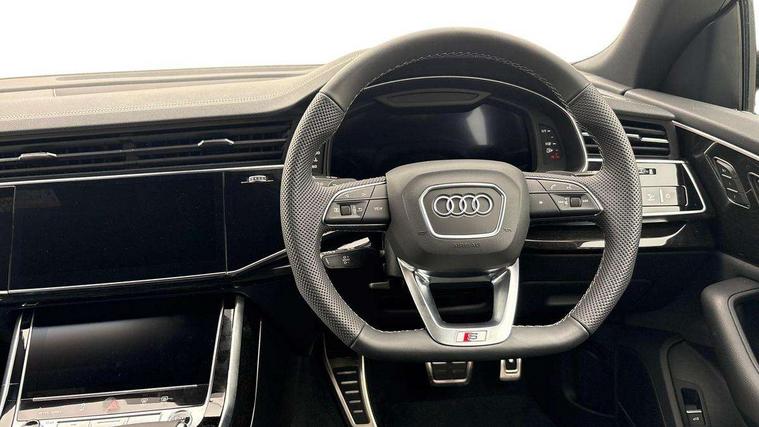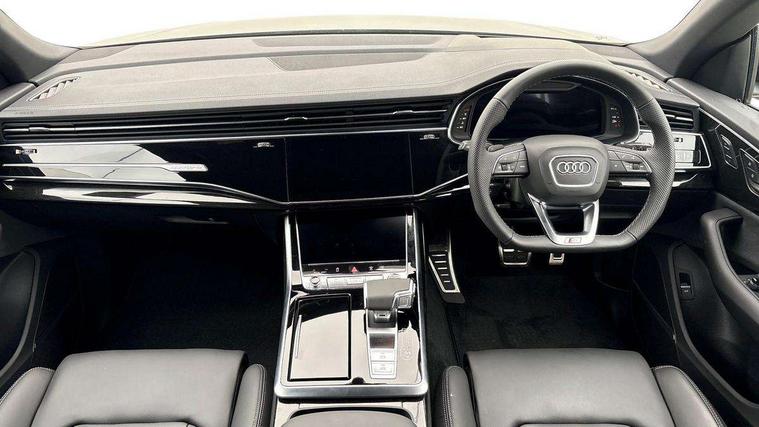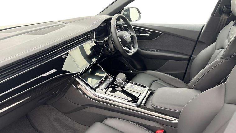 10.1" and 8.6" Dual colour touchscreens, Audi application store, Audi connect safety and service (e-call), Audi connect with Amazon Alexa Integration, Audi drive select, Audi parking system plus includes 360 degree display with front and rear sensors, Audi phone box light with wireless charging, Audi virtual cockpit - 12.3" high resolution LCD display with fully customisable instrument cluster, Automatic start/stop system, Bluetooth, Electro-mechanical PAS, Low washer fluid indicator, MMI navigation plus with MMI touch, Natural voice recognition, On board computer, Operating buttons in black, glass look with haptic feedback, Power operated tailgate, Rear view camera, Service interval indicator, Smartphone interface includes wireless Apple carplay/Android Auto, 48V Mild hybrid technology, Adaptive sport air suspension, Diesel particulate filter, Quattro all wheel drive with self locking centre differential, Audi music interface with 2 USB ports with charge and data functions, Audi sound system with 6 channel amplifier, 180 watt amplifying capacity and 10 loudspeakers including subwoofer, Aux-in socket, DAB Digital radio, 3rd brake light, Audi beam, Auto dimming frameless rear view mirror, Black exhaust tailpipes, Black single frame mask, Coming/leaving home lighting function, Electric front+rear windows, Electrically folding auto dimming/adjustable/heated door mirrors with memory function, LED side indicators and kerb view function for passenger side, Headlight washers, Heat insulating glass in windshield, LED rear light plus, LED signature daytime running lights, Loading edge protection in stainless steel, Matrix LED headlights with dynamic front and rear indicators, Platinum grey front spoiler lip and diffuser insert with honeycomb grille in black, Privacy glass - dark tinted rear and rear side windows from B-pillar backwards, Rain and light sensors, Rear side wing doors, Rear wiper, Singleframe grille surround in matte platinum grey, 2 zone automatic climate control, 3 bench rear seats in 2nd row, 4-way lumbar support for front seats, 40:20:40 split folding rear bench seat, Black cloth headlining, Comfort front centre armrest, Driver seat memory function, Electrically adjustable front seats, Front head restraints, Front/rear floor mats, Heated front seats, ISOFIX child seat mounting for front passenger seat and 2 outer rear seats with top tether child seat mounting for all 3 rear seats, LED interior ambient lighting, Luggage compartment sill protection in stainless steel, Rear centre armrest with 2 cupholders, Rear headrests, Seat cushion displaceable by 100mm in the ratio 60:40, Single front passenger seat, Stainless steel pedals, Sunvisors with illuminated vanity mirrors, Black styling pack plus - Q8, 3 point seatbelts on all seats, Audi pre sense front, Convenience key with safelock, Driver and front passenger, front side and curtain airbags, Electromechanical parking brake, Electronic Stability Control (ESC) including ABS, ASR and EDL, Front passenger airbag deactivation, Hill descent control, Hill hold assist, Predictive pedestrian protection, Seatbelt monitoring, Traction control, Tyre pressure loss indicator, Warning triangle and first aid kit, Anti theft alarm with tow away protection, Anti-theft wheel bolts and wheel loosening detection, Electronically operated child lock, Immobiliser, Keyless go with remote central locking, Polished oak trim with grey finish inlay, Tool kit, Tyre repair kit,