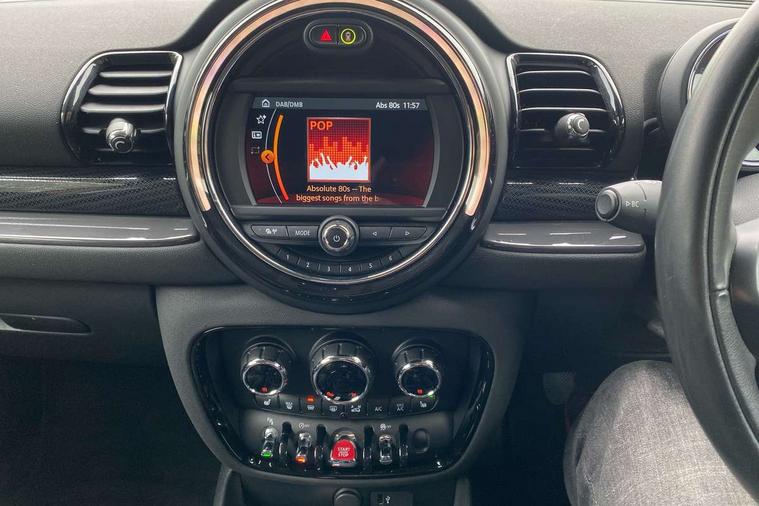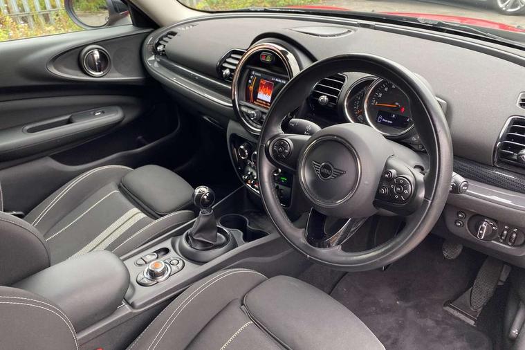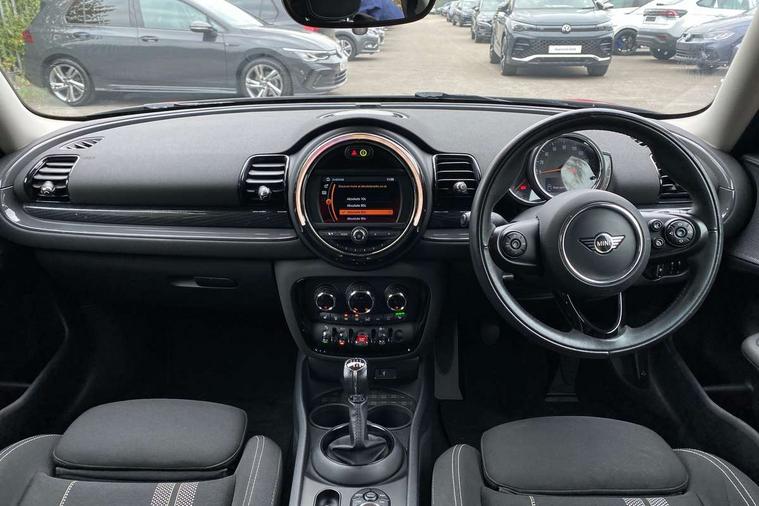 Active Guard incl speed limiting and lane departure functions with auto steering, and front collision warning with brake intervention, Automatic start/stop function with brake energy recuperation, Compatible mobile phone bluetooth with audio streaming, Digital cockpit, Electro-mechanical speed dependant steering assistance, Instrument cluster, Mini E-call, MINI TeleServices, On board computer, 6 Speed manual transmission including gear change indicator display, Double Vanos system, Fully variable valve control, High precision injection, Performance Control, FM tuner and DAB digital radio, Bonnet scoop, Chrome border honeycomb structure radiator grille with S badge, Chrome fuel filler cap, Dynamic brake lights, Electric windows, Heated rear window, Heated windscreen washer jets, LED headlights with closed ring as daytime driving lights, LED rear light with union jack design, Metal door sill strips with Cooper S imprint, Model logo, Model logo on rear doors, Rain sensor with auto headlights, Rear fog lights, Rear window wiper, Side scuttle panel with integrated indicator, Split rear doors, Sun/heat protection glass, Twin exhaust tailpipe, White indicator lenses, 12V Accessory socket in centre console, 3 spoke sport leather steering wheel + limiter function and audio controls, 360L luggage compartment capacity, 4 lashing eyes in luggage compartment, 60/40 split folding rear seat, Chrome interior highlights, Cupholders, English handbook, Front and rear head restraints, Glove compartment, Headliner with grab handles and clothes hooks, Height and length steering column adjustment, Interior lighting with 12 basic colours selectable via toggle switch in roof, Isofix rear child seat preparation, Leather gearshift lever and handbrake gaiters, LED reading lights, vanity mirror lights, front foot well light and spotlight on front seats, Manual air conditioning, Mechanical seat adjustment, driver seat height adjust, forward/back and front seats backrest, Multifunction steering wheel, Storage compartments in doors, Sunvisors with vanity mirrors, Toolkit, Excitement pack - Clubman, Navigation pack - Clubman, 2 tone horn, 3 point seatbelts on all seats, 6 Airbags - front, side, head and seat belt tensioners, Anti-lock braking system (ABS), DSC - Dynamic Stability Control, Electronic handbrake, Front and rear disc brakes, Tyre pressure monitoring system, Alarm system with tilt sensor, monitoring doors, bonnet interior and tailgate, Auto drive away locking, Deadlocking function, Electronic vehicle immobiliser, Locking wheel bolts, Start/stop toggle with keyless go, Tyre repair kit,