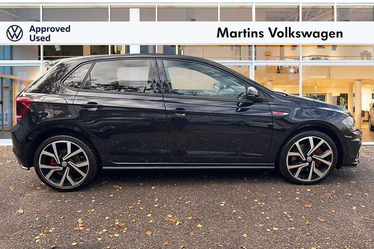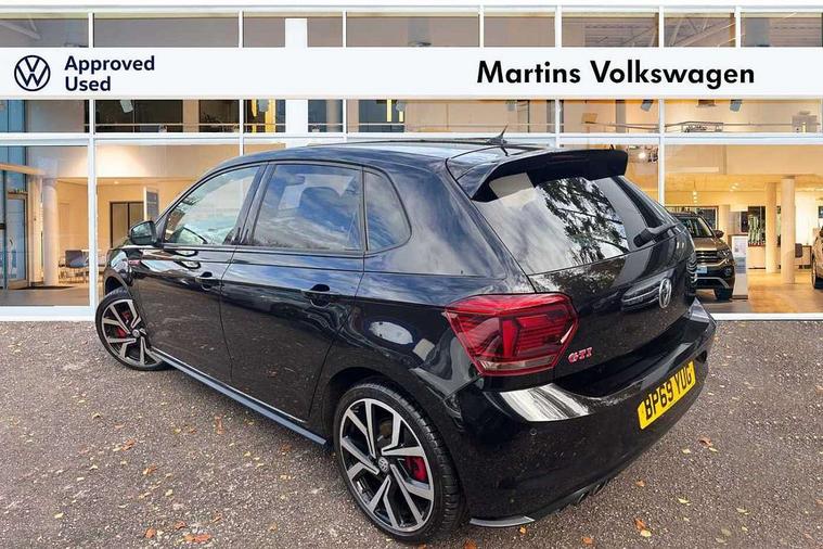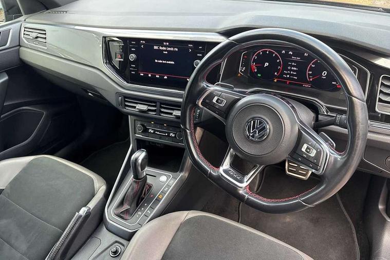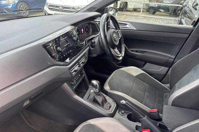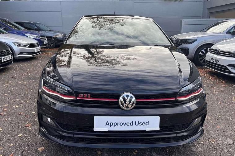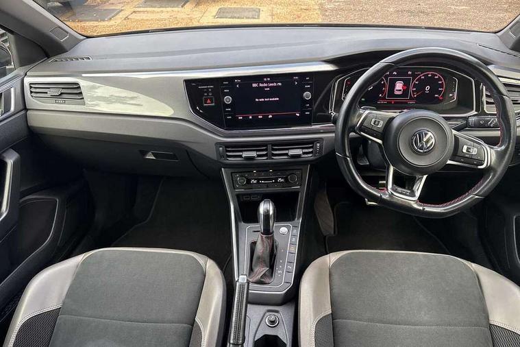 ACC - Adaptive cruise control with front assist, forward collision warning, distance monitoring, city emergency brake and speed limiter, App-Connect, Digital clock, Driver alert system, Driving Mode Selection with four preset modes - Eco, normal, sport or individual modes, Lights on warning, Multifunction computer plus, Power assisted speed sensitive steering, Speedo and rev counter, electronic odometer, trip, service interval display and fuel gauge, Start/stop system, Volkswagen connect, Warning buzzer and light for front seatbelts unfastened, Battery regeneration during braking, Galvanished body, Lowered sports suspension, XDS electronic differential lock, Body colour door handles, Body coloured side sills, Dusk sensor + automatic driving lights, Electric front windows, Electrically foldable, adjustable and heated door mirrors with reverse activated kerb view adjustment on passenger's side, Extended sill strips flared in black, Front fog lights including static cornering, Front windscreen washers and wipers with 4 speed intermittent delay, Gloss black rear spoiler (roof), Heat insulating tinted glass, Heated rear window with auto timer, High level 3rd brake light, Honeycomb radiator grille with red stripe, LED darkened rear light clusters, LED daytime running lights, LED dipped and main beam headlights with automatic range adjustment, LED rear number plate lights, Rear electric windows, Rear tinted glass from B-pillar backwards approx 65% tinted, Rear windscreen washer and wiper with interval delay, reverse activated, Stainless steel door sill protections with GTI logo, Twin chrome exhaust tailpipes, Unique GTI badging, 2 bag hooks in luggage compartment, 2 front cupholders and 12 V socket with cover, 3 rear head restraints, 60/40 split folding rear seat, AlumInium look pedals, Ambient lighting in front foorwell, front/rear door and dashboard light strips, Black roof lining and sun visors, Centre console storage with open storage compartment, Chrome-plated electric mirror adjustment switch surround, Chrome-plated electric window button surround, Driver and front passenger sunvisors with illuminated vanity mirrors, Dust/pollen filter, Folding rear seat backrest, Front and rear carpet mats with red stitching, Front centre armrest with storage compartment, Front head restraints, Front seat backrest storage pockets, Gear change selection via paddle shift on steering wheel, Gear lever gaiter in black trim surround, Glovebox, Handbrake grip button in chrome effect, Height/reach adjustable steering column, Instrument lighting, adjustable panel illumination, Interior light with delay, Isofix Preparation 2 Rear child seats, Jack and tool kit, Leather gear knob and handbrake grip, LED interior lighting - 2 reading lights front and rear with interior delay and dimming function, Luggage compartment cover, removable, Luggage compartment lighting, Luggage compartment with variable load floor, Storage compartment in front doors, Storage compartment in rear doors, Storage compartment under front seats, Three spoke leather trimmed multifunction steering wheel with GTI logo and red contrast stitching, GTI styling pack - Polo, Light and sight pack - Polo, 3 point height adj front seatbelts + pretensioners, 3x3 point rear seatbelts, ABS, Automatic post collision braking, Driver/front passenger airbag, Drivers and front passengers safety optimised head restraints, ESP with EDL + ASR, Front and rear passenger curtain airbags, Front passenger airbag deactivation, Front seat side impact airbags, Front/rear disc brakes, Hill hold control, Hydraulic Brake Assist (HBA), Red brake calipers, Single tone horn, Tyre pressure monitoring system, Alarm with interior protection and deactivation via infotainment system, Electronic engine immobiliser, Remote central locking with 2 remote folding keys, Remote keyless entry using key fob including Start/Stop button on centre console, Chrome instrument surround detailing, Chrome plated air vent surround, Gloss black instrument surrounds, Steel space saver spare wheel,