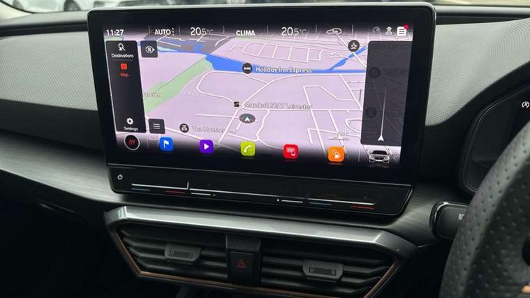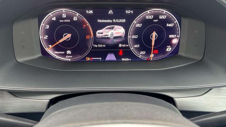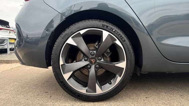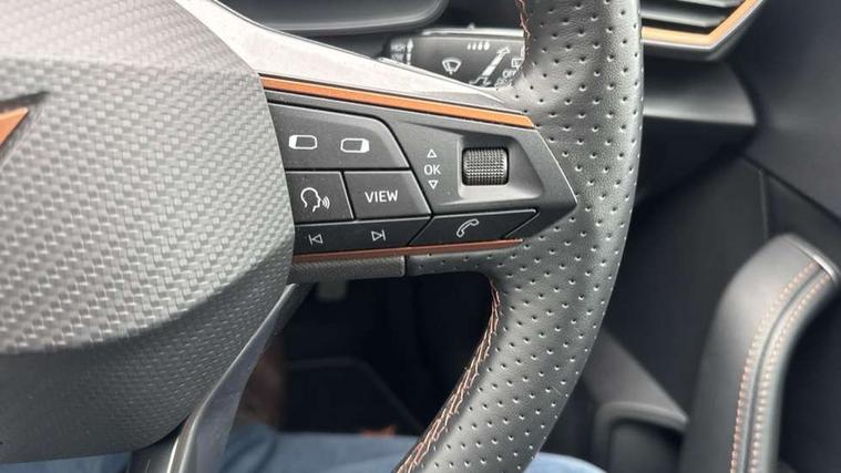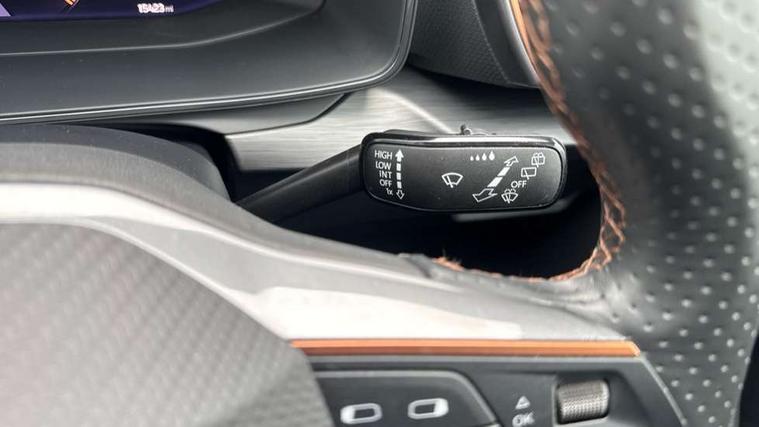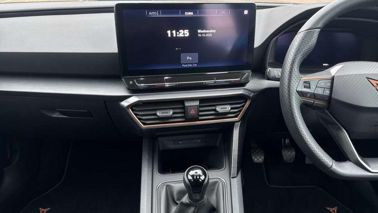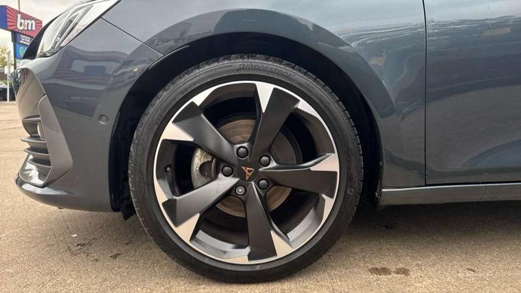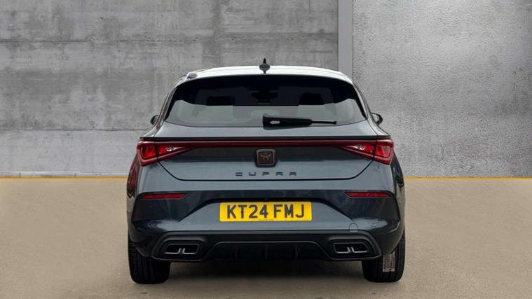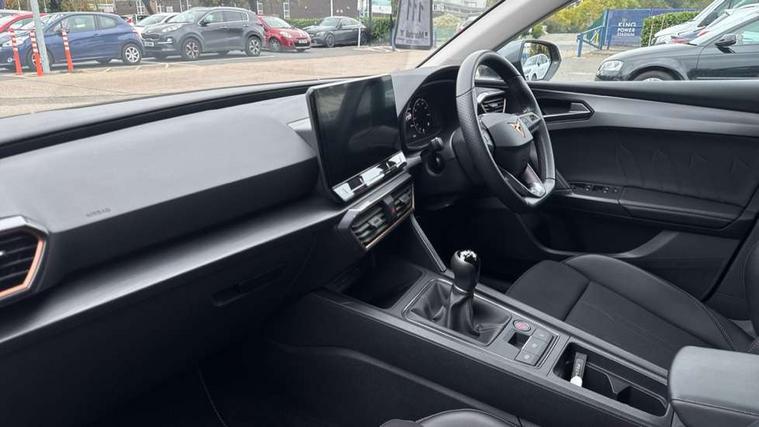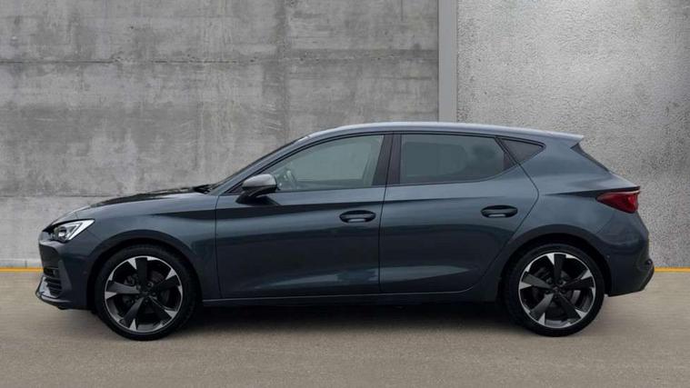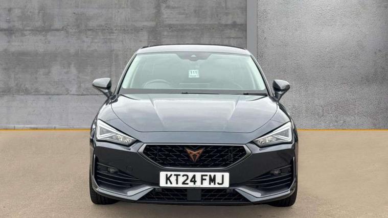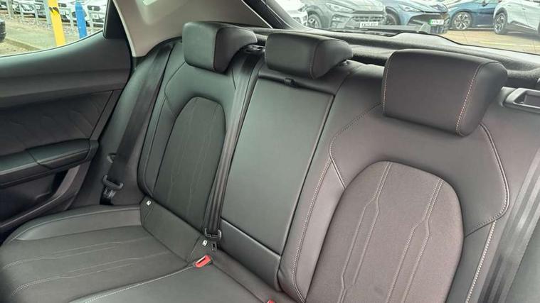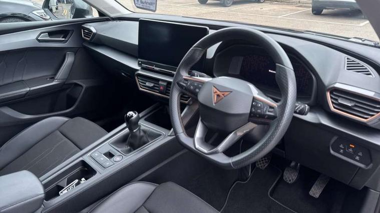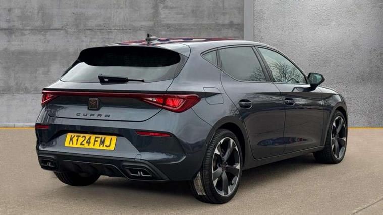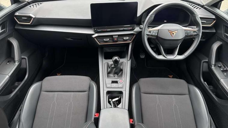 CUPRA drive profile selection with (Comfort/Sport/Individual), throttle response and gearshift mode, Digital cockpit, E-call, Electro mechanical speed sensitive power steering, Four x USB Type C ports (2 in front and 2 in rear), Front assist with forward collision warning braking reaction to vehicles, pedestrians and cyclists, Full link smartphone integration with Mirror Link, wireless Apple CarPlay and wired Google Android Auto, Lane assist, Lockable tailgate, Park assist (inc front/rear parking sensors), Rear view camera, RPM, trip computer, outside temp gauge, instrument light brightness, low fuel warning light, lights on reminder, gearshift indicator, Service interval indicator, Start/stop system with regenerative braking, Wireless phone charger, Sports suspension, Auxiliary input socket, Auto dimming rear view mirror, Body colour door handles, Body coloured bumpers, Cupra sports bumpers, Dark tinted rear windows, Electric front/rear windows, Electrically adjustable, heated and folding door mirrors, LED front fog lamps with cornering function, LED headlights with dynamic turn signals, tail lights, rear fog lights with rear coast to coast lighting, Rain sensing wipers, Rear diffuser with twin exhaust pipe on each side, Rear side wing doors, Rear wash/wipe, Separate daytime running light with automatic headlight control and coming home feature, Third brake light, 12v power supply in centre console, 3 seat bench in 2nd row, 5 headrests, 60/40 split rear bench seat with armrest, Ambient lighting with glovebox, footwell and single monocolour, Cupra Leather flat bottomed, perforated steering wheel, Driver/passenger manual seat height adjustment, Folding boot cover, Front and rear reading lights X 4, Front centre armrest, Front seats manual lumbar adjustment, Grey headlining, Height/reach adjust steering wheel, Illuminated interior front door sills, ISOFIX points in outer rear seats with top tether anchorage points, Jack and tool kit, PVC/Cloth upholstery with copper stitching, Single front passenger seat, Sports seats, Sunvisors with illuminated mirror, Three zone climate control, Media system plus with navigation pack - Leon Cupra, Safety and driving pack (M) - Cupra leon, 3 point seatbelts on all rear seats, ABS, Brake control system - ESC and brake booster, Child proof door locks, Cupra black brake calipers, Driver and front passenger airbags with front passenger airbag de-activation, front side and curtain airbags, Electronic parking brake, Extended safety system - seat belt tensioner, window closure and hazard lights, Hill hold control, Rear disc brakes, Seat belt reminder for front and rear seats, Tiredness recognition system, Tyre pressure monitoring system, Anti theft alarm system with interior monitoring in cab, backup horn and towing protection, KESSY Advanced - Keyless start, keyless entry, Locking wheel bolts, Chrome and copper interior detailing, 18" Machined sport black and silver alloy wheels with 92Y tyres,