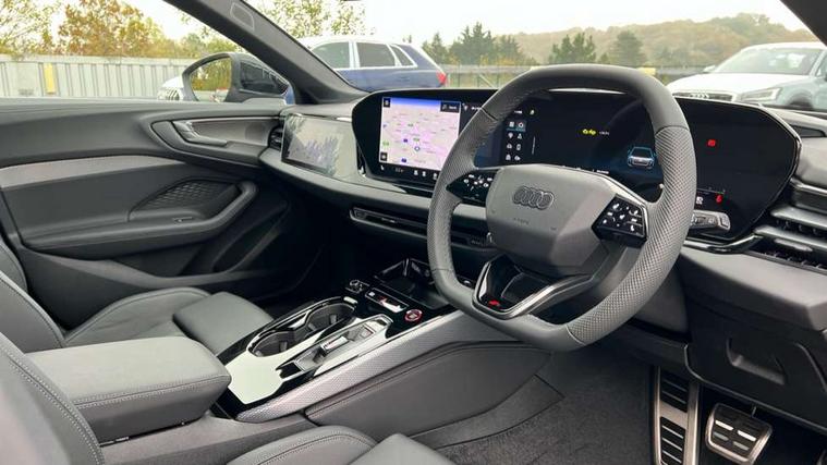 Adaptive cruise control, Advanced driver attention and fatigue montior, Audi application store, Audi assistant, Audi connect emergency call and service, Audi drive select, Audi smartphone interface, Audi virtual cockpit plus with 11.9" OLED colour display, Automatic start/stop system with coasting functionality, Camera based traffic sign recognition, Intersection assist, Lane change assistant with exit warning system, rear cross traffic alert and rear turn assist, Lane departure warning with emergency assist, MMI 10.9" front passenger touch display, MMI navigation plus with high resolution 14.5" OLED touchscreen colour display, Park assist plus, Parking system plus with 360 display, Progressive steering with servotronic, Swerve assist and turn assist, Top view camera, Traffic sign based speed limiter, Sports suspension lowered by 20mm, 2 USB-C ports in both the front and rear, Audi sound system impressive sound with 10 loudspeakers including centre speaker and subwoofer, 6-channel amplifier with a total output of 180 watts, DAB digital radio reception, Smartphone compartment with wireless charging, Aluminium window trims, Auto dimming rear view mirror, Black door handles, Black door mirrors, Black roof rails, Dark chrome-plated tailpipe trims, Door mirrors - electrically adjustable, heated, folding and auto dimming on both sides, Front and rear electric windows, Front door sill trims with aluminium inlays, illuminated with 'S' logo, Headlight cleaning system, High beam assist, LED daytime running lights, LED rear lights pro incl. dynamic rear indicators and illuminated light strip with animated coming and leaving home function, LED third brake light, Matrix LED headlights with eight light signatures selectable via the MMI or the myAudi app, Privacy glass, Rear and side windows with heat insulating glass, Rear side wing doors, Rear wash/wipe, Red S line rhombus badging on rear, S line bumpers, radiator grille and diffuser in phantom black and diffuser insert in matt anthracite, White rhombus logo projection light in exterior mirrors, Windscreen with acoustic glazing, 3 rear headrests, 3 seat rear bench, 3 spoke leather steering wheel with multi-function buttons with touch control, flattened on top and bottom, with S badging and contrast stitching, 3-zone automatic climate control, 40:20:40 split folding rear seat bench with centre armrest and cup holders, Comfort front centre armrest, Electrically adjustable front seats, Front and rear floor mats, Front sport seats with integrated headrest and S embossed logo, Headlining in black cloth, Heated front seats, i-Size child seat mounting on the front passenger side and i-Size and top tether on the outer rear seats, Luggage compartment lid, electrically opening and closing, Manual steering column height and depth adjustment, Memory function for driver seat, Single front passenger seat, Stainless steel pedals and footrest, Steering wheel grips in perforated leather and shift paddles, Ambient lighting package plus - A5, Black styling package plus - A5, 3x3 point rear seat belts, Acoustic vehicle alerting system, Convenience key with safelock, Driver airbag, Electric child safety locks, First aid kit with warning triangle and vests, Front emergency brake assist, Front passenger airbag, Front passenger airbag deactivation, Hill hold assist, Occupant detection in rear seat area, Proactive passenger protection system for front, sides and rear, Red brake calipers, Seat belt monitoring with rear seat occupant reminder, Side airbags in front and rear with head airbag system and front interaction airbag, Tyre pressure loss indicator, Anti theft alarm, Anti-theft wheel bolts, Keyless Go, Accent surfaces and control buttons in gloss black, Black dashboard with contrast stitching, Softwrap in Dinamica with contrast stitching, Upper and lower interior elements in dinamica microfiber, 20" 5 arm fold design Audi sport alloy wheels in silk matt grey and gloss turned finish, Tyre repair kit,