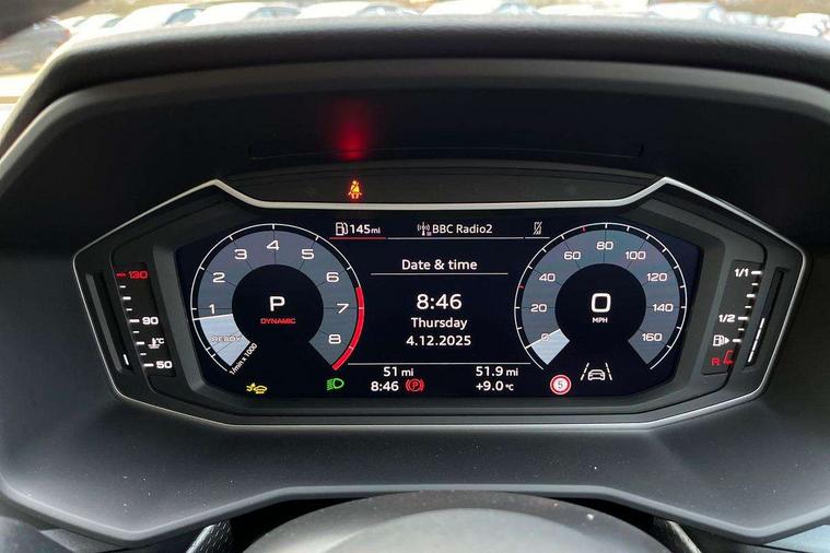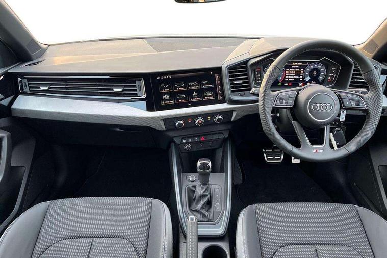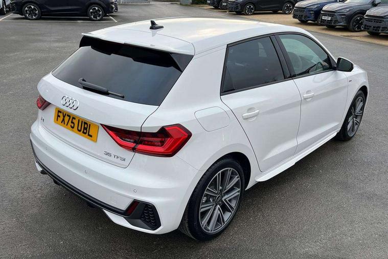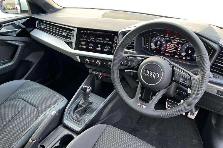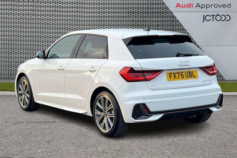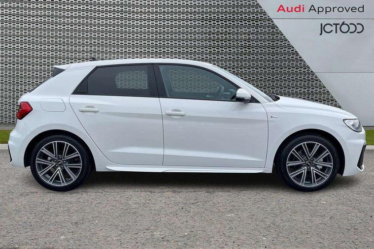 10.25" Digital instrument cluster display classis style instrument dials + speed, odometer, time, outside temperature, telephone menu + fuel level warning, Advanced driver attention and drowsiness monitor, Audi connect emergency call and service, Audi drive select, Audi remote connect and control, Audi smartphone interface, Bluetooth interface, Camera based traffic sign recognition, Cruise control, Driver's information system, Electromechanical power steering, Lane departure warning system, Rear parking sensor, Service interval indicator, Speed limiter, Start stop system with recuperation, Voice control system, Washer fluid level indicator, Sports suspension, 2 x USB type C connection points, 6 loudspeakers, DAB Digital radio, MMI radio plus with 10.1" colour MMI display screen and MMI touch, Auto dimming rear view mirror, Body coloured door mirrors, Door sill trims with aluminium inlays and S line logo in front, Electric front and rear windows, Electrically adjustable, heated, folding door mirrors with integrated LED side indicator, Front side air inlets in grained matt black and C frame in anthracite black, Headlight cleaning system, Heat insulating glass windscreen and side windows, Heated rear windscreen, High level LED brake light, LED daytime running lights, LED headlights with range control LED rear lights + dynamic rear indicators, Light and rain sensors, Privacy glass, Radiator grille and rear diffuser in matt anthracite black, Radiator protective grille frame in matt aluminium silver, Rear fog lights, Rear side wing doors, Rear wiper, S line badges on front wings, Side front spoiler lips in grained matt black, 12V socket in centre console with two cup holders, 3 rear seats with headrests, 3 seat bench in 2nd row, 3 spoke leather multi-function plus steering wheel features S badging and grips in perforated leather with contrast stitching, 40:60 Split folding rear seat or fully collapsed, Black cloth headlining, Front and rear velour black floor mats with contrast stitching in fine silver, Front head restraints, Front passenger seat, Height and reach adjustable steering wheel, Interior lighting includes roof module, front and rear reading lights and right luggage compartment lighting, ISOFIX child seat mounting for front passenger and outer rear seats including top tether attachment point of outer rear seats, Leather gear knob with aluminium trim, Leather handbrake grip, Manual air conditioning, Manual height adjustable for driver and front passenger seat, Manually adjustable lumbar support in front seats, Stainless steel pedals, Ambient lighting package - A1, Luggage compartment pack - A1, S line exterior styling pack - A1 Sportback, 3x3 point rear seatbelts, Audi pre-sense front with pedestrain and cyclist recognition, Brake assist function, Driver and front passenger airbag with front side and head airbags, Electronic Stability Control including ABS, EBD, ASR and EDL, Front passenger airbag deactivation switch, Hill hold assist, Manual rear child locks, Seatbelt height adjustment for front seats, Seatbelt monitoring, Tyre pressure loss indicator, Warning triangle and first aid kit, Anti theft alarm, Anti theft wheel bolts, Immobiliser, Remote control key with safelock, Aluminium trim for control switches, air vents and digital instrument cluster, Black dashboard, Silver grey inlays polygon structure in diamond paint finish, Structured grey accent surfaces insert of air vents, interior door handle recesses and centre console in quartz paint finish,