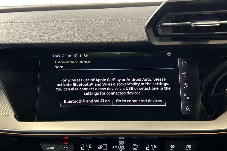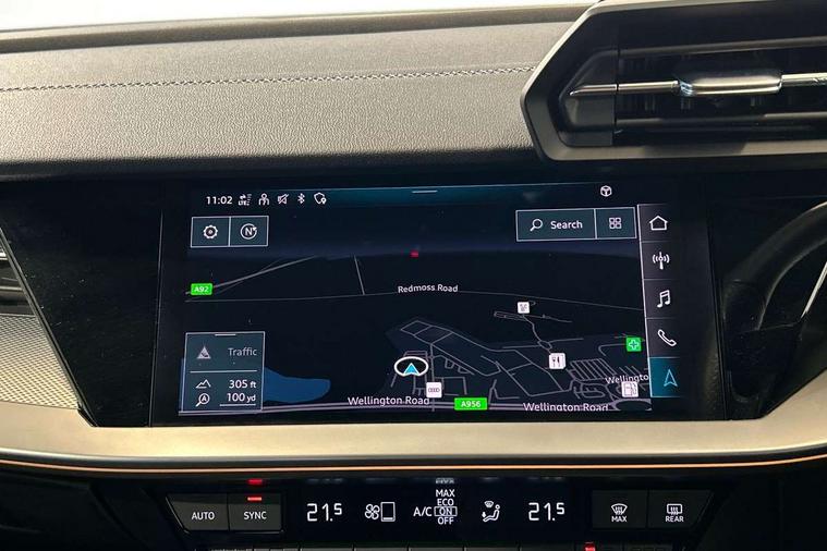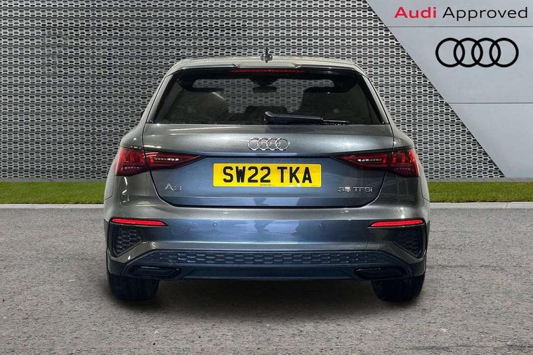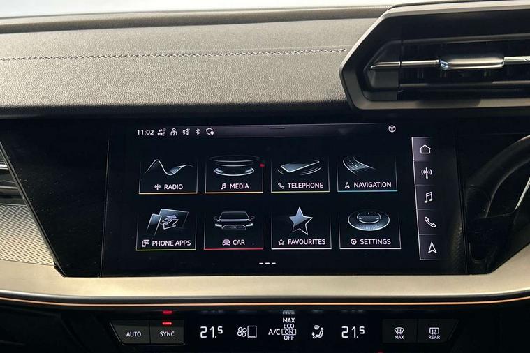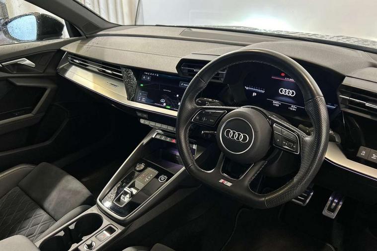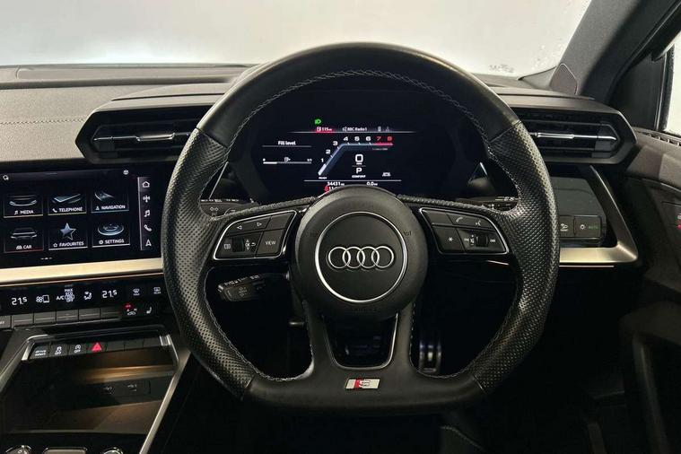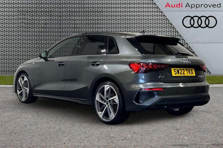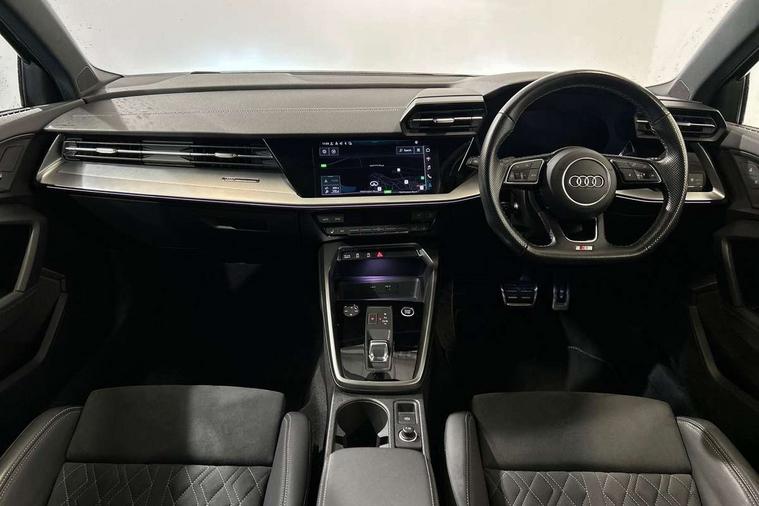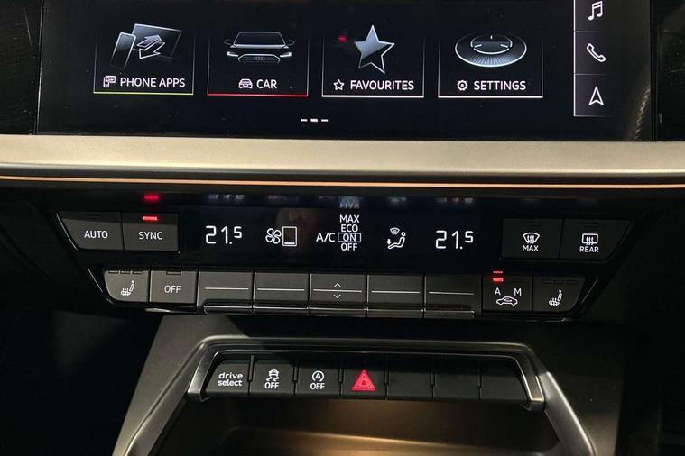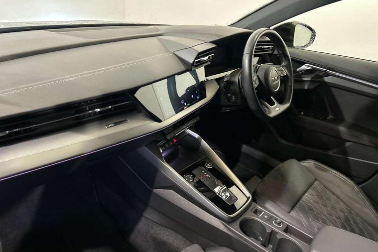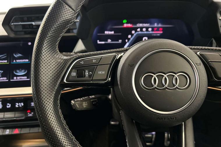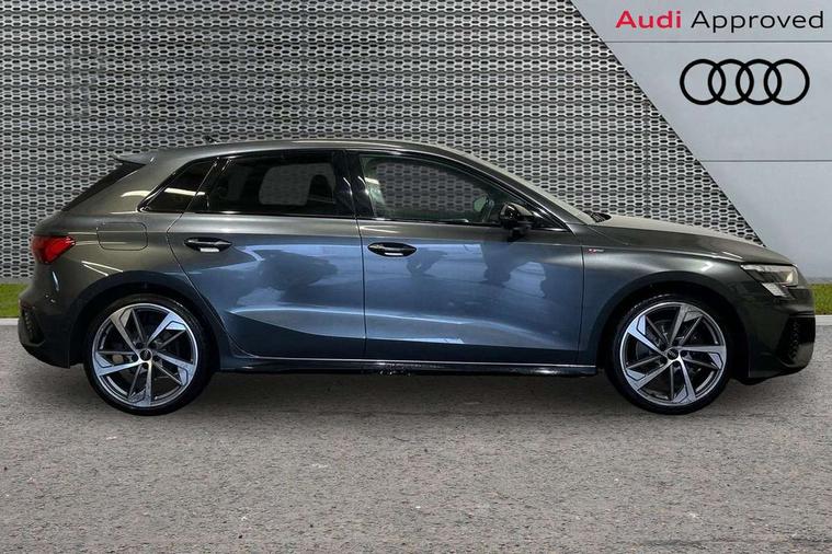 Audi connect emergency call and service, Audi drive select (Auto, Comfort, Dynamic, Efficiency and Individual), Audi smartphone interface, Audi virtual cockpit plus - 12.3" full HD resolution dynamic digital instrument cluster, Automatic start/stop system with recuperation, Bluetooth interface, Collision avoidance assistant, Electromechanical power speed sensitive steering, Lane departure warning system, MMI Navigation Plus with high resolution 10.1" colour touch screen display, Service indicator, Trip computer, Voice control system with natural language interaction, Sports suspension, 2xUSB-C connection with data and charging functions, 6 passive loudspeakers, DAB Digital radio, 3rd brake light, Acoustic glass windscreen, Audi matrix LED headlights with LED rear lights + dynamic front and rear indicators, Auto dimming frameless rear view mirror, Body colour front spoiler blade, Electrically adj heated/folding + automatically dimming exterior mirrors + automatic kerb side function for passenger side exterior mirror, Front electric windows, Headlight washers, Illuminated aluminium inserts front door sills with S logo, Integrated LED indicators in door mirrors, LED daytime running lights, Light and rain sensors, Privacy glass - dark tinted rear window, rear door and side windows, Rear diffuser in grained matt black, Rear electric windows, Rear side air outlets in grained matt black, Rear wiper, S roof spoiler, 12V socket and storage compartment in front centre console, 4 way electrically adjustable lumbar support for driver and front passenger, 40/20/40 split folding rear seat bench with cupholder, Black cloth headlining, Dual zone electronic climate control, Electrically adjustable front seats for driver's side, Front and rear centre armrest in leather, Front and rear headrests, Front/rear floor mats, Heated front seats, Height and reach adjustable steering wheel, Interior lighting - glove compartment light and right hand side, Luggage compartment floor covering, Seat side bolsters, Stainless steel pedals and front footrest in black, Aluminium interior elements pack - A3 Sportback, Black styling pack - A3 Sportback, Dinamica microfibre/mono.pur 550 artificial leather pack - A3 Sportback, Extended ambient lighting pack - A3 Sportback, LED interior lighting pack - A3 Sportback Edition 1/Vorsprung, 3x3 point rear seat belts, Driver and front passenger airbag with passenger airbag deactivation, Electronic Stabilisation Control (ESC) including ABS, ASR and EDL, First aid kit with warning triangle and 2 safety vests, Front side airbags with head airbags and interaction airbag, Hill hold assist, Pre-sense front with pedestrian and cyclist detection, Seatbelt monitoring, Tyre pressure loss indicator, Anti theft alarm, Anti-theft wheel bolts, Electronically operated child lock, Immobiliser, Remote control central locking, Accent surfaces in the dashboard and centre console in platinum grey silk effect paint finish, Dark spectrum aluminium inlays, 19" 5 arm trapezoid design alloy wheels in titanium matt grey with diamond cut finish,