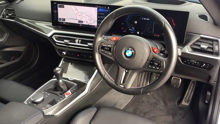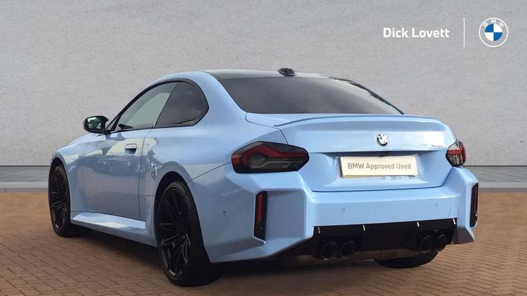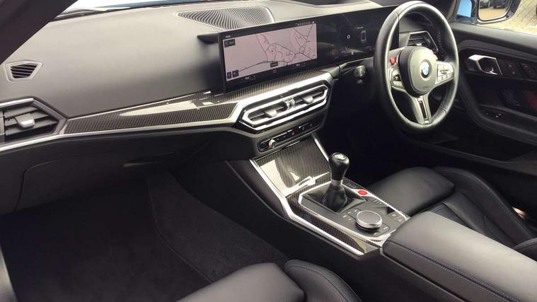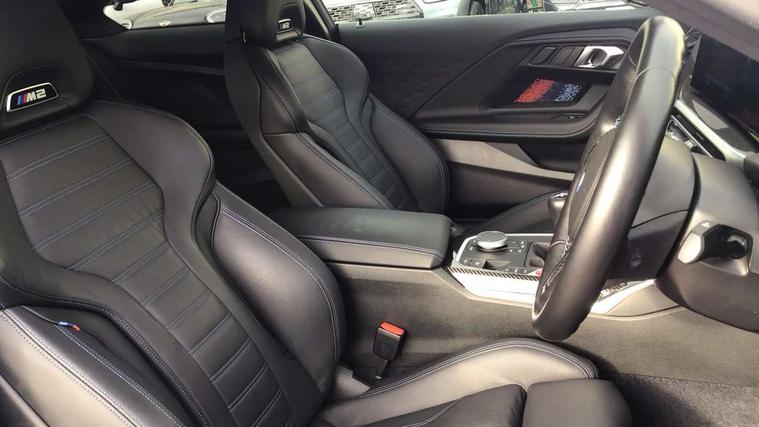 BMW ConnectedDrive online services, BMW legal emergency call, BMW Teleservices, Check control system, Configurable dashboard display, Cruise control with braking function, Digital owner's manual, Drive off assistant, Driver attention warning, Engine start button, Exterior temperature display, Live Cockpit Pro with head up display including 12.3" instrument cluster and 14.9" central display, M drive: DSC mode, engine characteristics, M Servotronic, M Drivelogic, adaptive M suspension, brake characteristics, M Sound Control, Oil sensor for level and grade, On board diagnostics, Parking assistant with reversing assistant, active PDC, lateral parking aid and rear view camera, PAS, Service interval indicator, Speed limiter, Start/stop system, Travel data recorder, Trip computer, Voice control for audio, climate, telephone, navigation, Widescreen display, M Adaptive suspension, M Drive Professional including track mode, laptimer, traction control & Drift analyser, M Sport differential, DAB tuner, Harman/Kardon surround sound system, USB port, Adaptive LED Headlights, Automatic headlamp activation, Automatic headlamp levelling, BMW Individual shadowline lights, Door mirror integrated indicators, Dynamic brake lights, Electric adjustable heated door mirrors, Extended High-gloss shadowline exterior trim: high-gloss black mirror caps and rear spoiler, tailpipe finishers in black chrome, Fading support, Follow me home headlights, Front and rear bumper system, Front electric windows, Headlight beam throw control, Heat protection, sun protection glazing, High beam assistant, Illuminated M highlighters, Interior rear view electrochromatic mirror with automatic anti dazzle function, LED 3rd brake light, LED daytime running lights, LED indicator lights, LED number plate light, LED rear lights, M carbon fibre roof, M high gloss shadowline exterior trim in mirror triangle cover, mirror cover panel, mirror bezel and window border, Mirror glass aspheric on driver's side, convex on passenger side, Rain sensor, Rear boot, Sun protection glass: darkened glass for rear screen and rear side windows, Variable front intermittent wipers, Welcome lighting, 12V power socket in front centre console with blanking plug, 2 cupholders, 2 rear head restraints, 2 rear seats, 3 spoke leather M multi-function steering wheel, Ambient lighting, Black velour front and rear floor mats, Carbon fibre interior trim including carbon applications on the steering wheel, Compartment in front of cupholder, Driver/passenger electric lumbar adjustment, Electrically adjustable front seats - driver seat with memory, Folding rear seat head rests, Front and rear door exit lights, Front and rear footwell lights, Front centre armrest, Front door pockets with bottle holders, Front door sill strips with aluminium inlays and M2 labelling, Front interior light, Front M Sport seats, Front reading lights, Glove compartment, Glovebox light, Heated front seats, Height adjustable front headrests, Illuminated armrest storage compartment, Illuminated M accents in front door, Isofix child seat for two outer rear seats, Luggage compartment lighting, M Anthracite headlining, Manually adjustable steering column, Rear armrest, Single front passenger seat, Steering column rake adjustment, Storage compartment in rear doors, Storage tray and compartment with cover in centre console, Through loading system with 40/20/40 split folding rear seat, Two zone automatic air conditioning, Vanity mirror lights, Connected package professional - M2, Extended storage pack - M2, Interior and exterior mirror pack - M2, 4 x 3 point seatbelts, ABS/EBD, Automatic Stability Control (ASC), Cornering brake control (CBC), Crash sensor, Curtain airbags, Driver/Front Passenger airbags, Dry braking, DSC - Dynamic Stability Control, Dynamic brake control, Electromechanical parking brake, Emergency door unlock, Front passenger airbag deactivation, Height adjustable front seatbelts, M seat belts, Seatbelt load limiter, Seatbelt pretensioners with load limiters, Seatbelt reminder, Tyre pressure sensor, Alarm system, Central locking, Drive away door locking, Immobiliser, Remote central locking, Tyre repair kit,