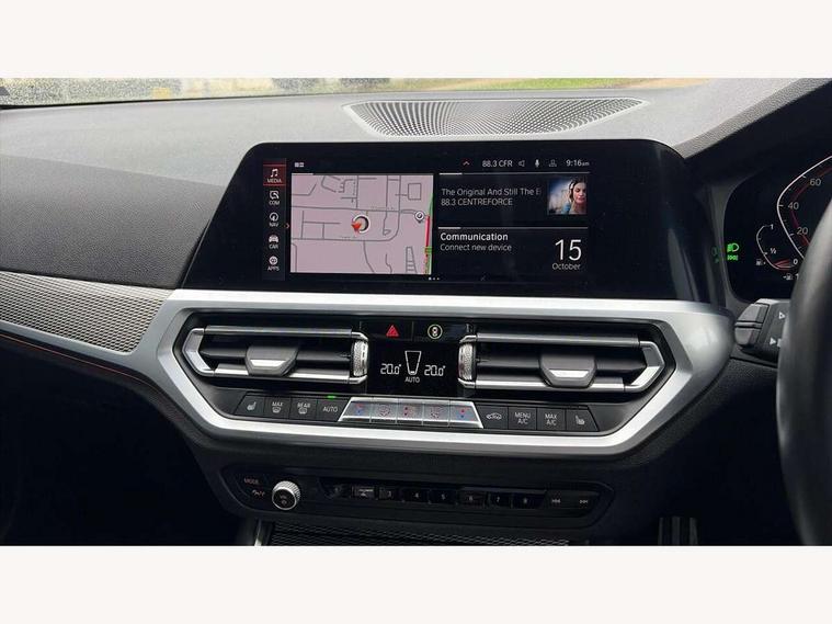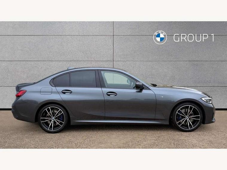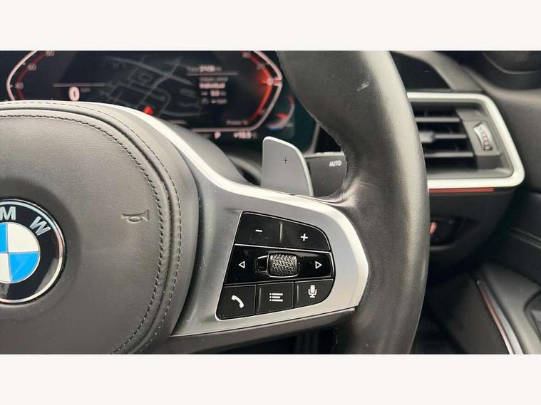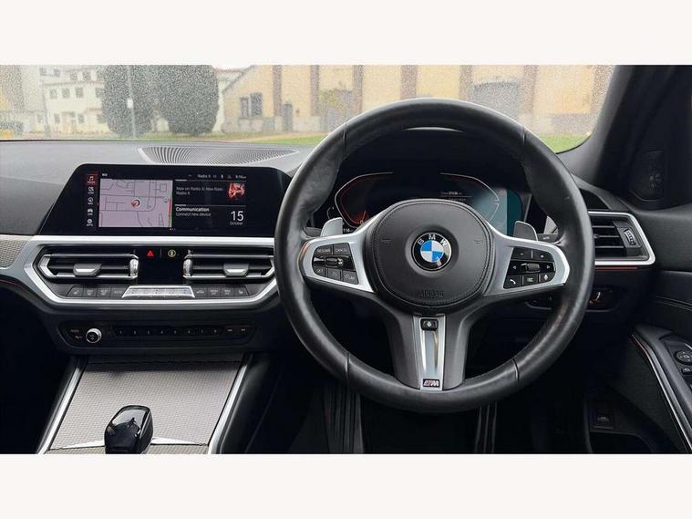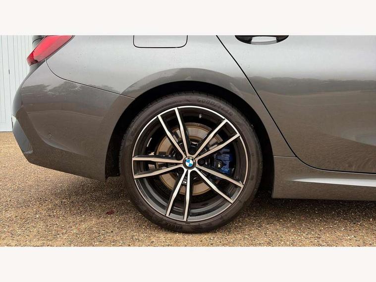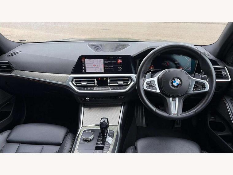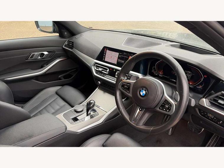 Active guard plus, Attentiveness assist, Auto start-stop, BMW iDrive controller on centre console, BMW Live Cockpit Professional Nav with 12.3" instrument display + 10.25" display, Intelligent Voice Assist, BMW OS 7, HDD, 2USB, 4G LTE connect, BMW service history, BMW Teleservices, Brake pad wear indicator in front and rear, Check Control warning system for monitoring of lights and door/luggage compartment open warning, Condition based service, Electric power steering with Servotronic steering optimised at all speed ranges, Instrument cluster with speedometer with mph readout, tachometer, fuel gauge and oil temperature gauge, Integrated owners handbook, Oil sensor for level and grade, warning by check control system, On board computer - average speed+fuel consumption, service interval, clock/date, odometer/trip meter, outside temperature display and ice warning, Optimum shift indicator, Personal Profile - automatic lock when driving away selectable, Variable sport steering, Balanced 50/50 weight distribution, Battery cut-out switch, Drive performance control - ECO PRO, comfort and sport modes, Larger capacity fuel tank, M sport suspension, Petrol Particulate Filter, Sport automatic transmission with steering-wheel mounted gearshift paddles and launch control, Stroke dependent dampers, DAB tuner, Electronic service booklet, Acoustic glazing, Automatic headlight beam throw control with load dependent regulating reaction, dynamic compensation of braking dive and acceleration squat, Black roof mouldings, Body colour door handles, Body colour fuel filler flap, Body colour mirror caps, Dynamic brake lights, Electric windows - front and rear, with open/close fingertip control, anti-trap facility and comfort closing, Exhaust tailpipe - split left and right, Exterior mirrors - electrically folding with anti-dazzle, Fading support, Front and rear bumper system with replaceable deformation elements, Front black door sill finishers with BMW designation, Green tinted heat protection glazing, High gloss shadow line exterior trim, Interior rear view electrochromatic mirror with automatic anti dazzle function, LED daytime running lights, LED front fog lights, Lightweight engineering, M designation on front side panels, left and right, Matt black exterior B pillar, Model designation on right side of tailgate, Rain sensor with automatic headlight activation, Shark fin antenna, Two part LED tailights in L-shape with components in smoked glass, brake light, LED turn indicator and rear fog light, Visible VIN plate, Welcome lights in interior and door handle area, Windscreen wipers with integrated washing jets, 12V power socket in front storage compartment, 2 front cupholder in centre console with clamping elements and matt black inlay, 3 rear seats with non folding headrests with 3 point seat belts, 3 zone automatic air conditioning, 4 pieces lashing eyelets in luggage compartment, 40:20:40 split folding rear seat with loading system, Ambient lighting with welcome carpet light, Anthracite headlining, Armrest integrated in front and rear door trim + front centre console armrest, Centred top Luggage compartment lights, Four grab handles integrated in roof lining, Front and rear door exit lighting (left / right), Front and rear door pockets, Front and rear reading lights, Front and rear velour floor mats, Front head restraints, Front sport seats, Heated driver and front passenger seats, Height adjustable mechanically and infinitely variable steering column, Illuminated armrest storage compartment, Illuminated glove compartment with separate small compartment, Interior lighting - front centre over interior mirror with soft light, rear centre and front and rear footwell lighting, M Sport multifunction leather steering wheel, Make-up mirror lights, Rear centre armrest with 2 cupholders, Rear centre console with storage compartment and ventilation grille, Sunvisors with vanity mirrors and ticket pocket, Toolkit located in luggage compartment, Connected pack professional - 3 Series Saloon/Touring, M Aerodynamics pack - 3 Series Saloon/Touring, 2 tone horn, BMW emergency call, Brake energy regeneration, Braking pre-tensioning, Child proof locking system in rear door, Child seat ISOFIX attachment rear outer seats, Coasting in idle in ECO PRO mode, Crash sensor activating of airbags, Unlocking doors, hazard warning lights, interior light, safety battery terminal, Driver and front passenger side airbags, integrated in the door side seat backrest bolsters for all seat variants, Driver/Front Passenger airbags, Dry braking, Dynamic brake control, Dynamic stability control + (DSC+) - Anti-lock Braking System (ABS) with brake assist and cornering brake control + Automatic Stability Control (ASC), Dynamic Traction Control - DTC, Electric parking brake including automatic hold function and automatic release of the parking brake when driving off, Electronic differential lock control (EDLC), Front passenger manual airbag deactivation, Head airbags for all 4 outer seats, Hill start assist, Seat belt security check for driver and front passenger, Side impact protection, Three 3 point seat belts on all seats including front belt stopper, pyrotechnic belt tensioners and belt force limiters, Tyre pressure monitoring with three level warning strategy, Ventilated front and rear disc brakes, Warning triangle and first aid kit, Alarm system (Thatcham 1) with remote control and electronic engine immobiliser, Central locking switch for all doors, fuel filler cap and luggage compartment, Remote control with integrated key one button open/close vehicle and windows, sole opening of the luggage compartment lid and panic mode, Start/stop button with Comfort Go keyless engine start and auto Start/stop deactivation button, Vehicle key with M specific designation, Reduced rolling resistance tyres,