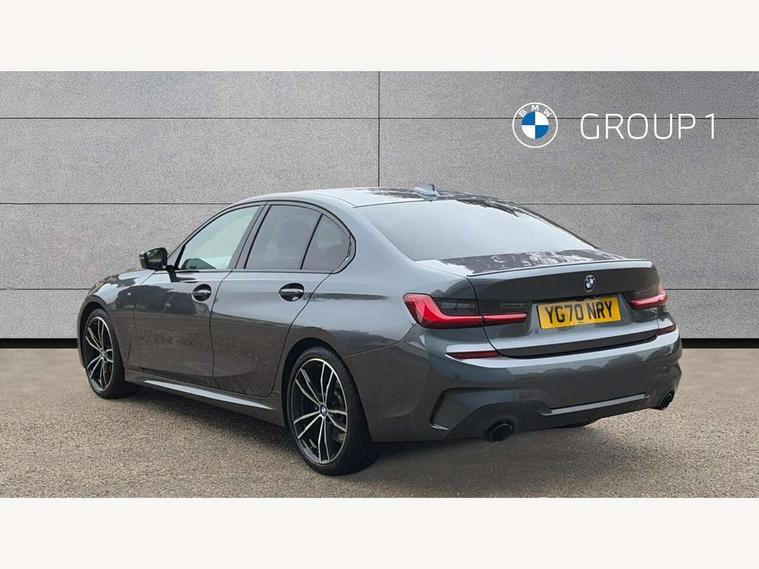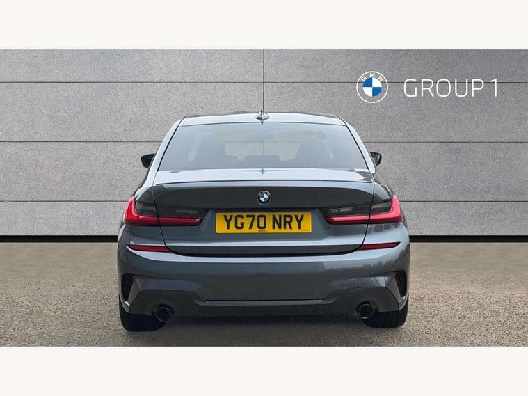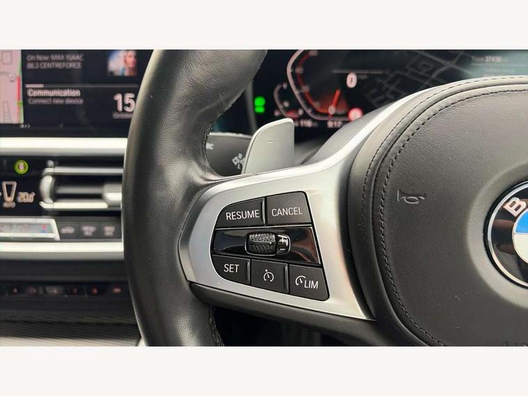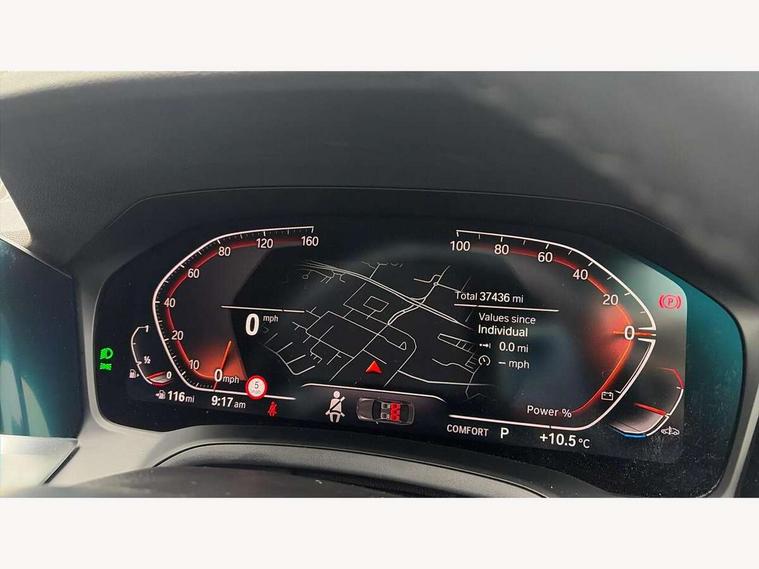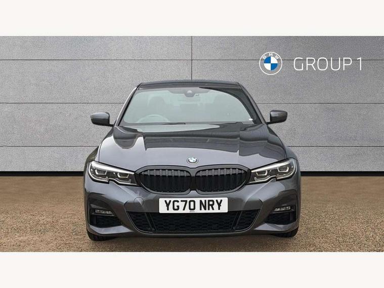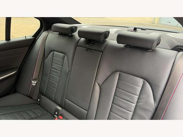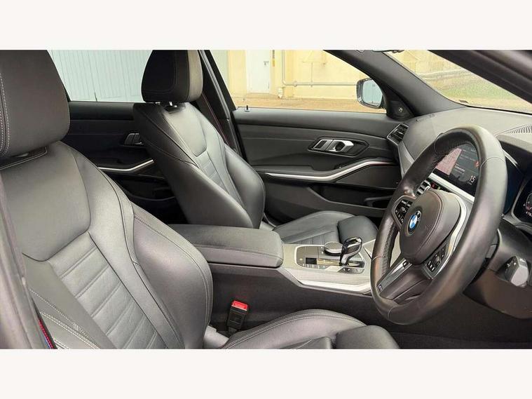 Active guard plus, Attentiveness assist, Auto start-stop, BMW iDrive controller on centre console, BMW Live Cockpit Professional Nav with 12.3" instrument display + 10.25" display, Intelligent Voice Assist, BMW OS 7, HDD, 2USB, 4G LTE connect, BMW service history, BMW Teleservices, Brake pad wear indicator in front and rear, Check Control warning system for monitoring of lights and door/luggage compartment open warning, Condition based service, Electric power steering with Servotronic steering optimised at all speed ranges, Instrument cluster with speedometer with mph readout, tachometer, fuel gauge and oil temperature gauge, Integrated owners handbook, Oil sensor for level and grade, warning by check control system, On board computer - average speed+fuel consumption, service interval, clock/date, odometer/trip meter, outside temperature display and ice warning, Optimum shift indicator, Personal Profile - automatic lock when driving away selectable, Variable sport steering, Balanced 50/50 weight distribution, Battery cut-out switch, Drive performance control - ECO PRO, comfort and sport modes, Larger capacity fuel tank, M sport suspension, Petrol Particulate Filter, Sport automatic transmission with steering-wheel mounted gearshift paddles and launch control, Stroke dependent dampers, DAB tuner, Electronic service booklet, Acoustic glazing, Automatic headlight beam throw control with load dependent regulating reaction, dynamic compensation of braking dive and acceleration squat, Black roof mouldings, Body colour door handles, Body colour fuel filler flap, Body colour mirror caps, Dynamic brake lights, Electric windows - front and rear, with open/close fingertip control, anti-trap facility and comfort closing, Exhaust tailpipe - split left and right, Exterior mirrors - electrically folding with anti-dazzle, Fading support, Front and rear bumper system with replaceable deformation elements, Front black door sill finishers with BMW designation, Green tinted heat protection glazing, High gloss shadow line exterior trim, Interior rear view electrochromatic mirror with automatic anti dazzle function, LED daytime running lights, LED front fog lights, Lightweight engineering, M designation on front side panels, left and right, Matt black exterior B pillar, Model designation on right side of tailgate, Rain sensor with automatic headlight activation, Shark fin antenna, Two part LED tailights in L-shape with components in smoked glass, brake light, LED turn indicator and rear fog light, Visible VIN plate, Welcome lights in interior and door handle area, Windscreen wipers with integrated washing jets, 12V power socket in front storage compartment, 2 front cupholder in centre console with clamping elements and matt black inlay, 3 rear seats with non folding headrests with 3 point seat belts, 3 zone automatic air conditioning, 4 pieces lashing eyelets in luggage compartment, 40:20:40 split folding rear seat with loading system, Ambient lighting with welcome carpet light, Anthracite headlining, Armrest integrated in front and rear door trim + front centre console armrest, Centred top Luggage compartment lights, Four grab handles integrated in roof lining, Front and rear door exit lighting (left / right), Front and rear door pockets, Front and rear reading lights, Front and rear velour floor mats, Front head restraints, Front sport seats, Heated driver and front passenger seats, Height adjustable mechanically and infinitely variable steering column, Illuminated armrest storage compartment, Illuminated glove compartment with separate small compartment, Interior lighting - front centre over interior mirror with soft light, rear centre and front and rear footwell lighting, M Sport multifunction leather steering wheel, Make-up mirror lights, Rear centre armrest with 2 cupholders, Rear centre console with storage compartment and ventilation grille, Sunvisors with vanity mirrors and ticket pocket, Toolkit located in luggage compartment, Connected pack professional - 3 Series Saloon/Touring, M Aerodynamics pack - 3 Series Saloon/Touring, 2 tone horn, BMW emergency call, Brake energy regeneration, Braking pre-tensioning, Child proof locking system in rear door, Child seat ISOFIX attachment rear outer seats, Coasting in idle in ECO PRO mode, Crash sensor activating of airbags, Unlocking doors, hazard warning lights, interior light, safety battery terminal, Driver and front passenger side airbags, integrated in the door side seat backrest bolsters for all seat variants, Driver/Front Passenger airbags, Dry braking, Dynamic brake control, Dynamic stability control + (DSC+) - Anti-lock Braking System (ABS) with brake assist and cornering brake control + Automatic Stability Control (ASC), Dynamic Traction Control - DTC, Electric parking brake including automatic hold function and automatic release of the parking brake when driving off, Electronic differential lock control (EDLC), Front passenger manual airbag deactivation, Head airbags for all 4 outer seats, Hill start assist, Seat belt security check for driver and front passenger, Side impact protection, Three 3 point seat belts on all seats including front belt stopper, pyrotechnic belt tensioners and belt force limiters, Tyre pressure monitoring with three level warning strategy, Ventilated front and rear disc brakes, Warning triangle and first aid kit, Alarm system (Thatcham 1) with remote control and electronic engine immobiliser, Central locking switch for all doors, fuel filler cap and luggage compartment, Remote control with integrated key one button open/close vehicle and windows, sole opening of the luggage compartment lid and panic mode, Start/stop button with Comfort Go keyless engine start and auto Start/stop deactivation button, Vehicle key with M specific designation, Reduced rolling resistance tyres,